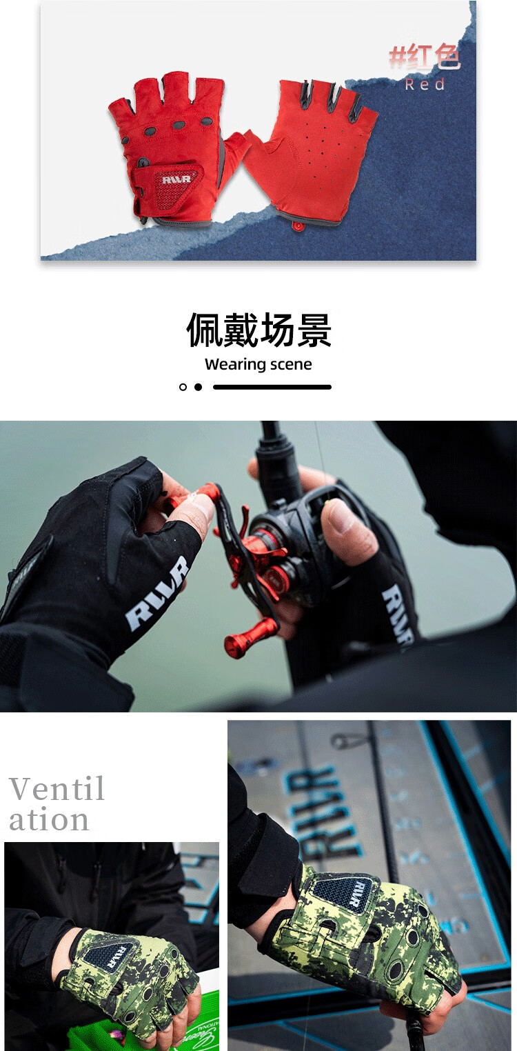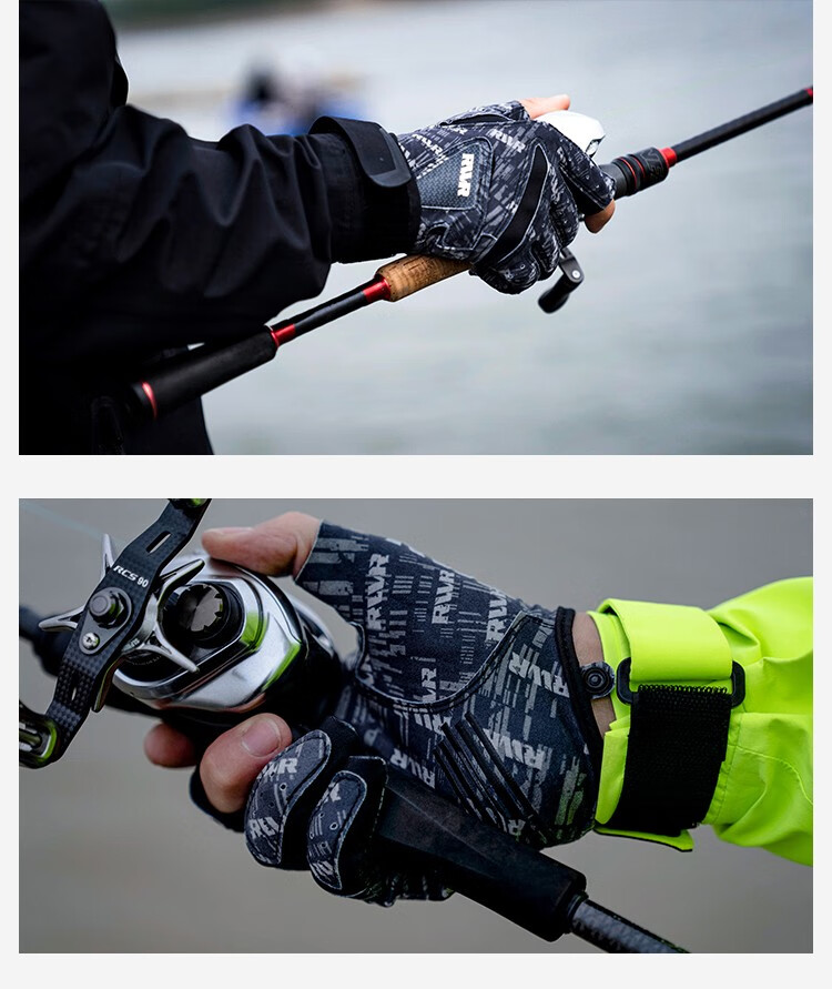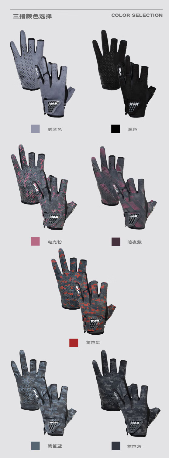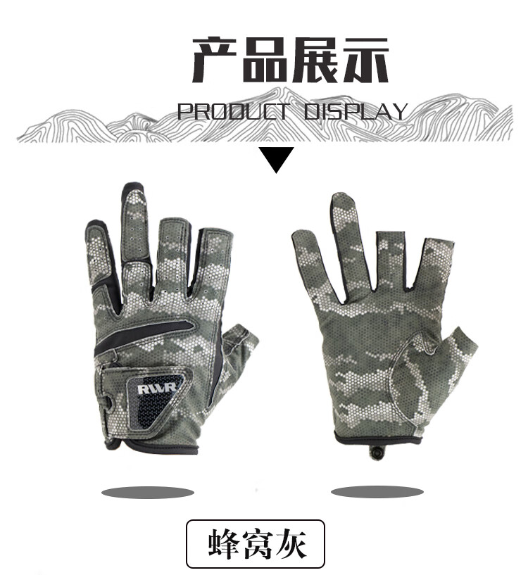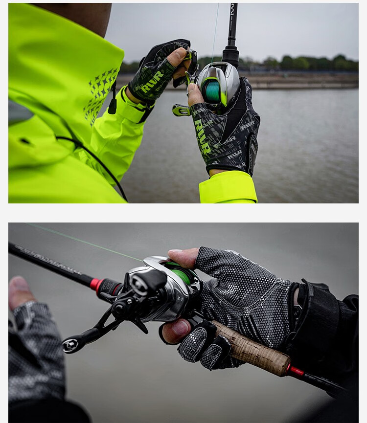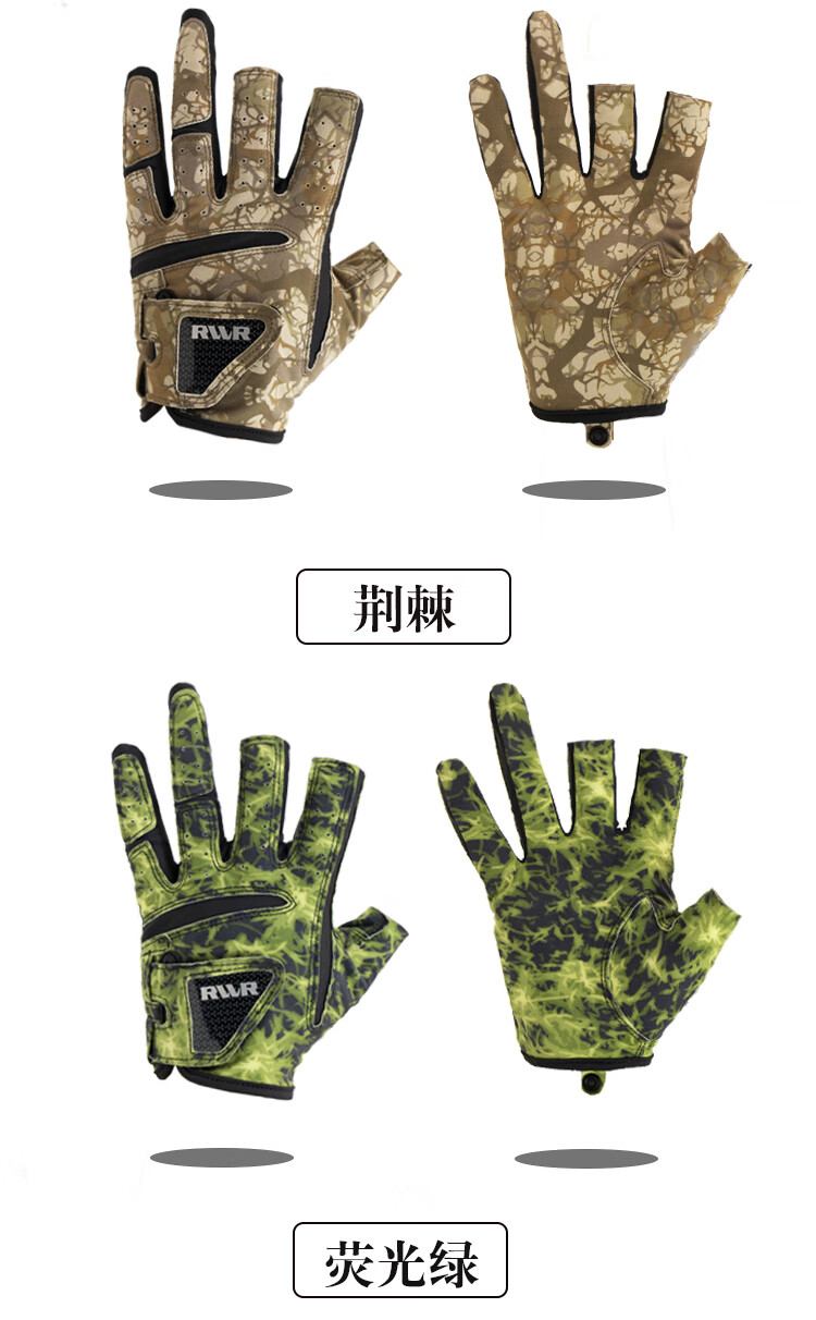 RVVR24/25 La Sherry Three Finger Five Finger Gloves Luya Fishing Special Gloves Protective Anti-Slip All Seasons Ice Silk Five Finger-02#Green Honeycomb M