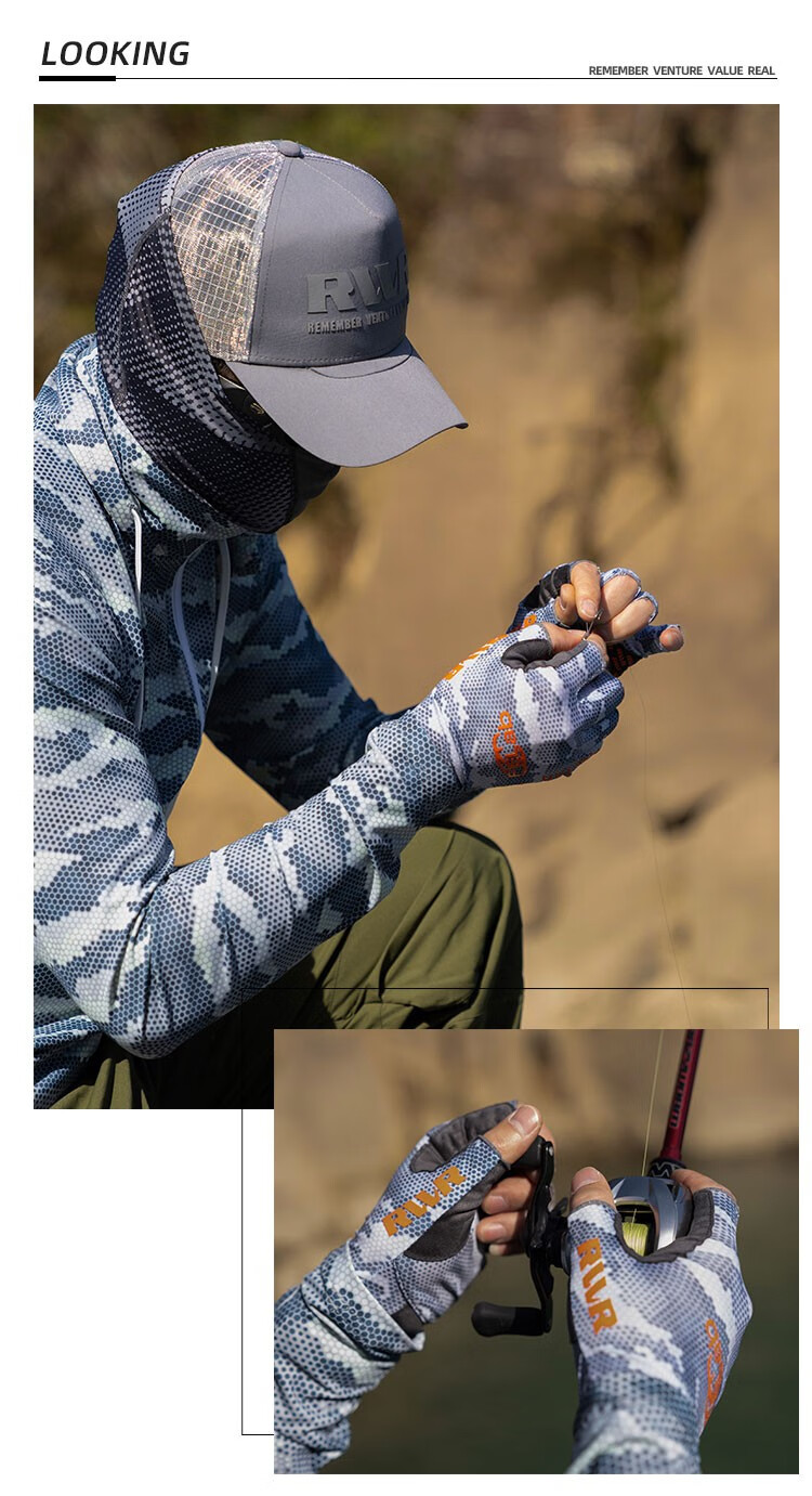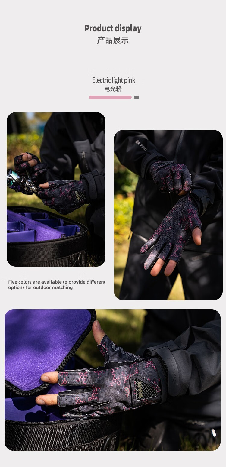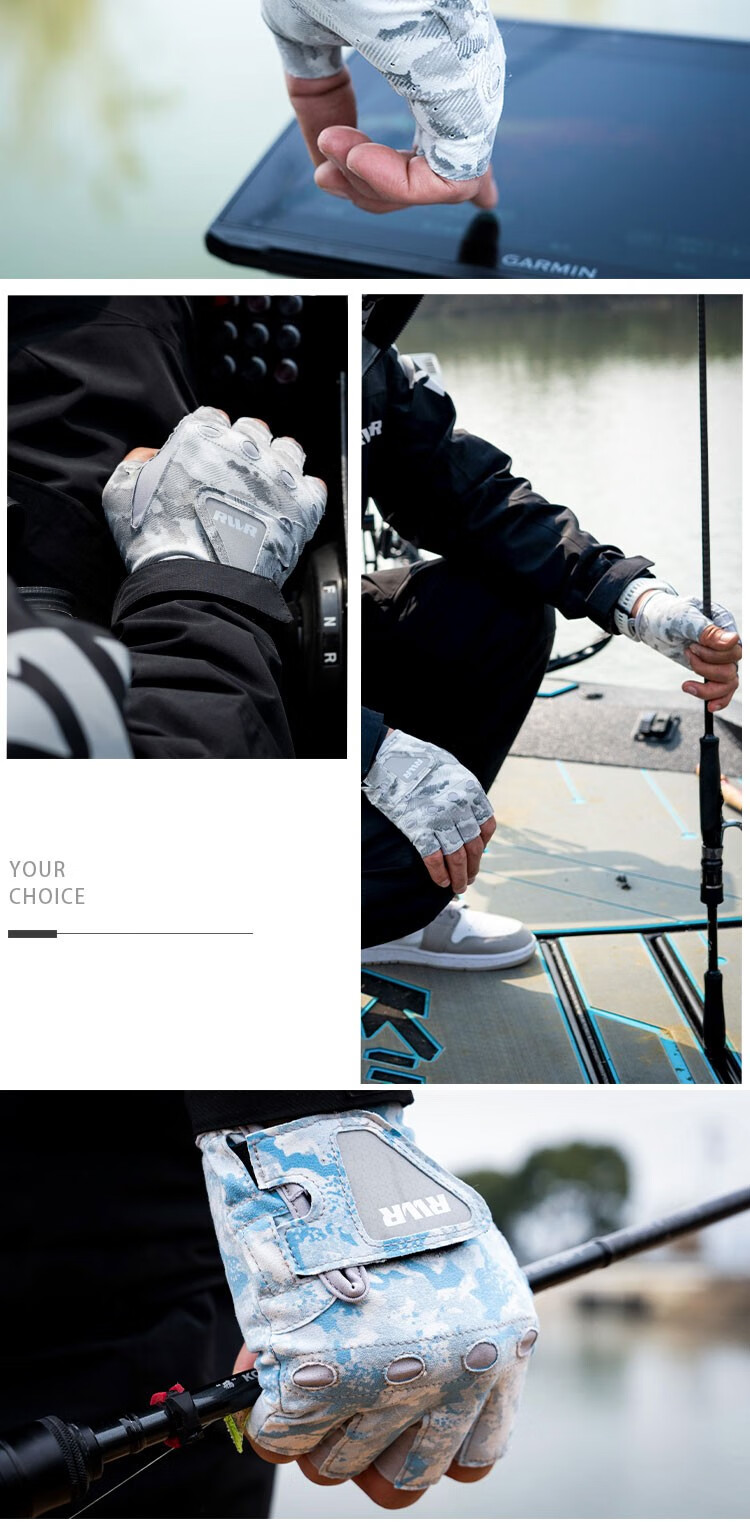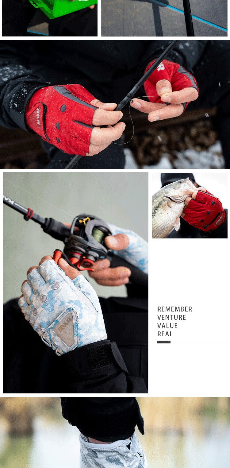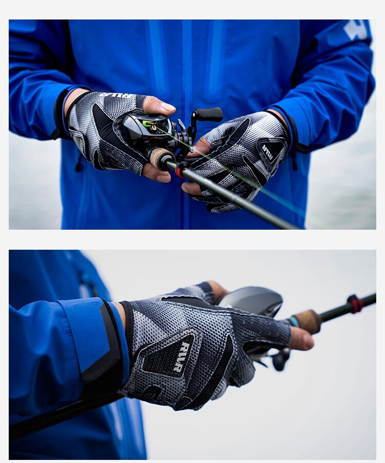 RVVR24/25 La Sherry Three Finger Five Finger Gloves Luya Fishing Special Gloves Protective Anti-Slip All Seasons Ice Silk Five Finger-02#Green Honeycomb M