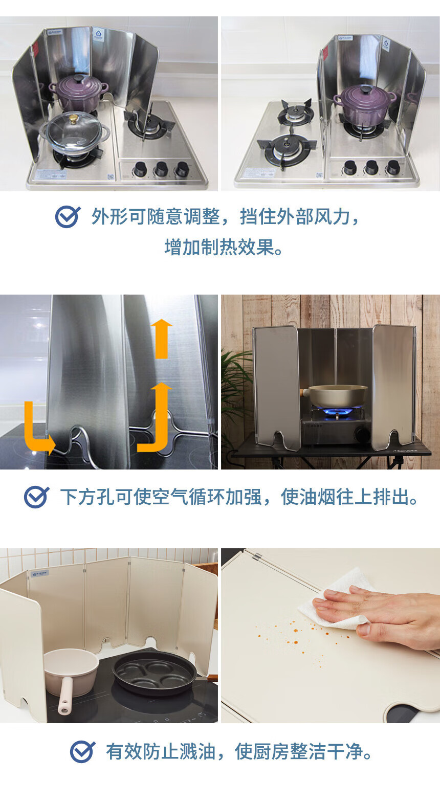 BLUE HOME HOUSEWARES Boyi outdoor & kitchen stove high temperature gas stove cooking anti-splash anti-oil baffle creative folding oil baffle off-white 6 pieces