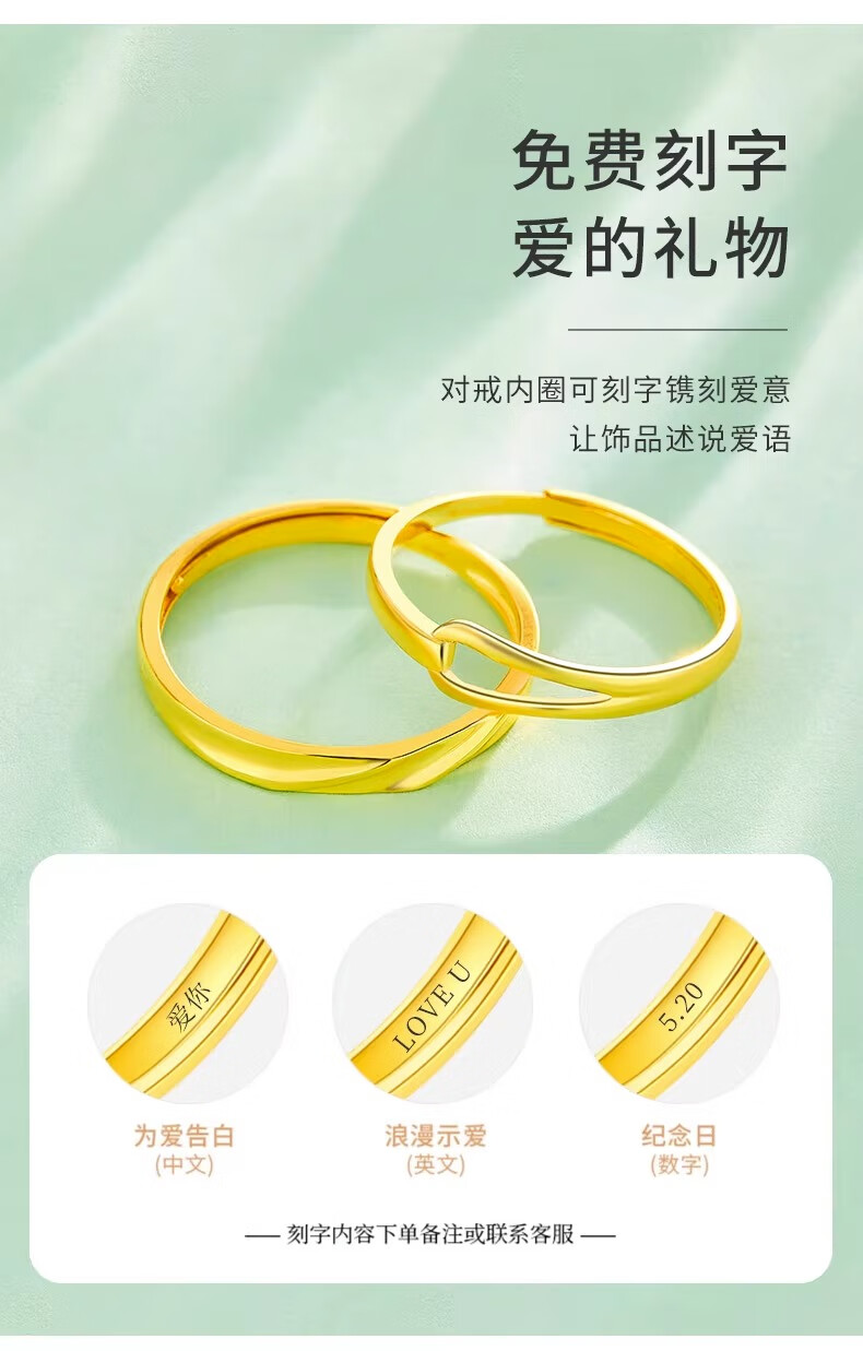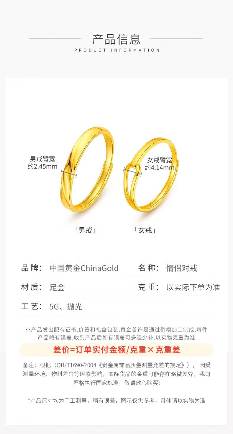 China Gold (CHINA GOLD) gold ring couple ring pair of Rupert's Tears Valentine's Day birthday gift for girlfriend and wife Rupert Ring Women's Ring About 1.7g Free Engraving