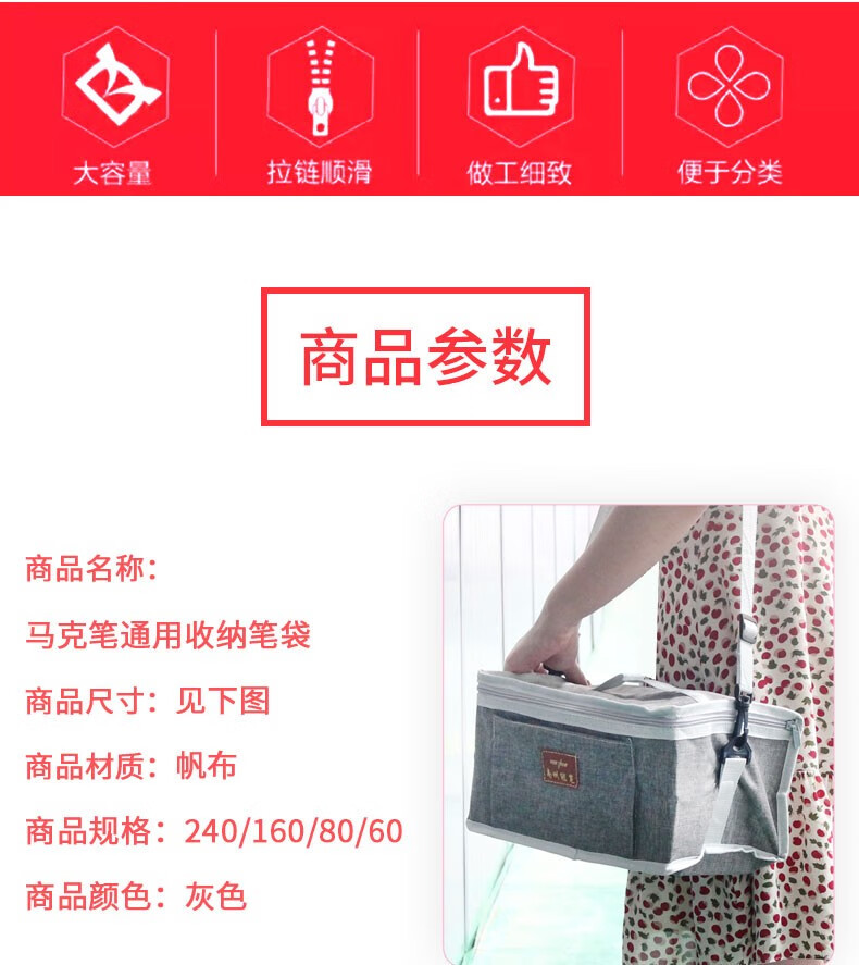 Fakal Mark Pen Storage Pen Bag Mark Pen Base Canvas Storage Bag Large Capacity Simple Portable Bag 36/48/60/72 Pen Base Pen Bag 48 Color Pen Bag Can Place Base