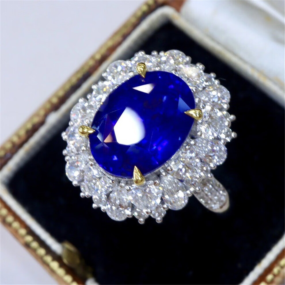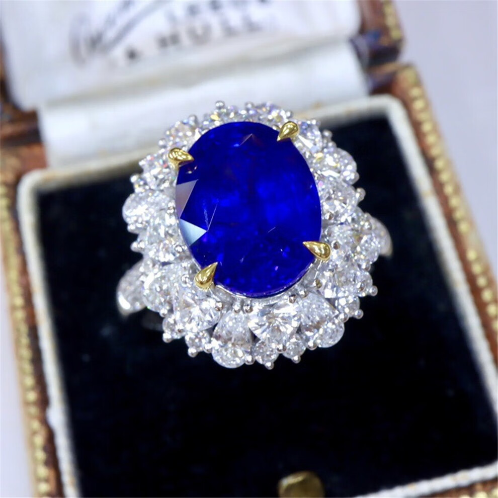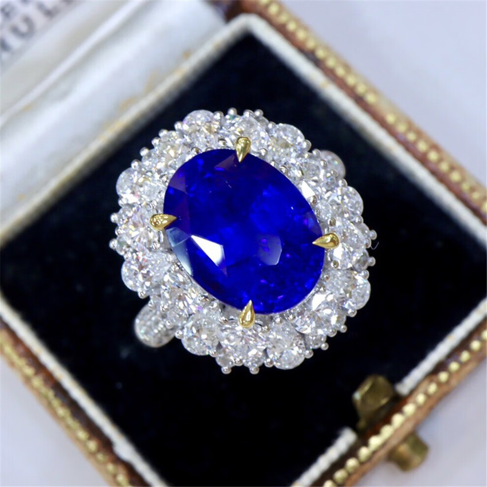 Yuxi 6.15 carat natural sapphire ring, oval ring, 18k gold set with diamonds