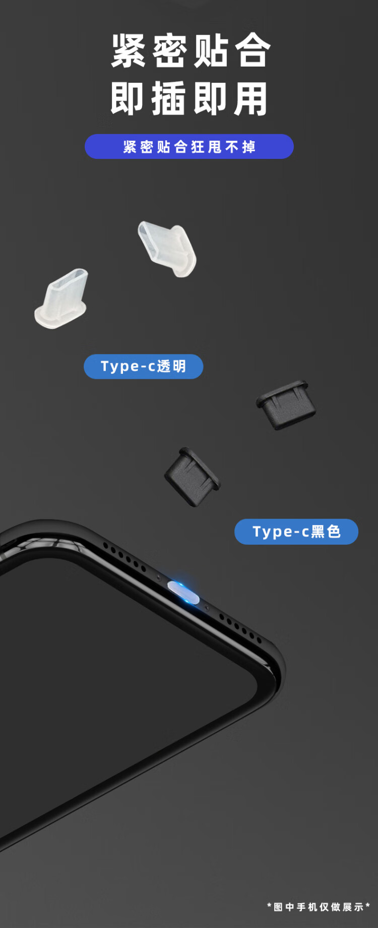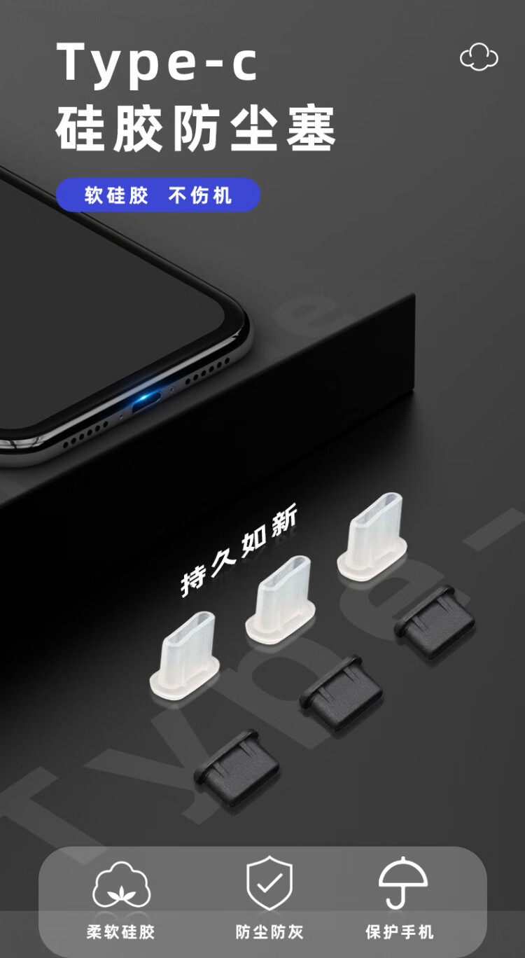 Mu Nian Suitable for Android mobile phone charging port dust-proof plug silicone universal dust-proof plug Type-c Huawei Mate50/P Type-c charging plug transparent 5 pack + storage box