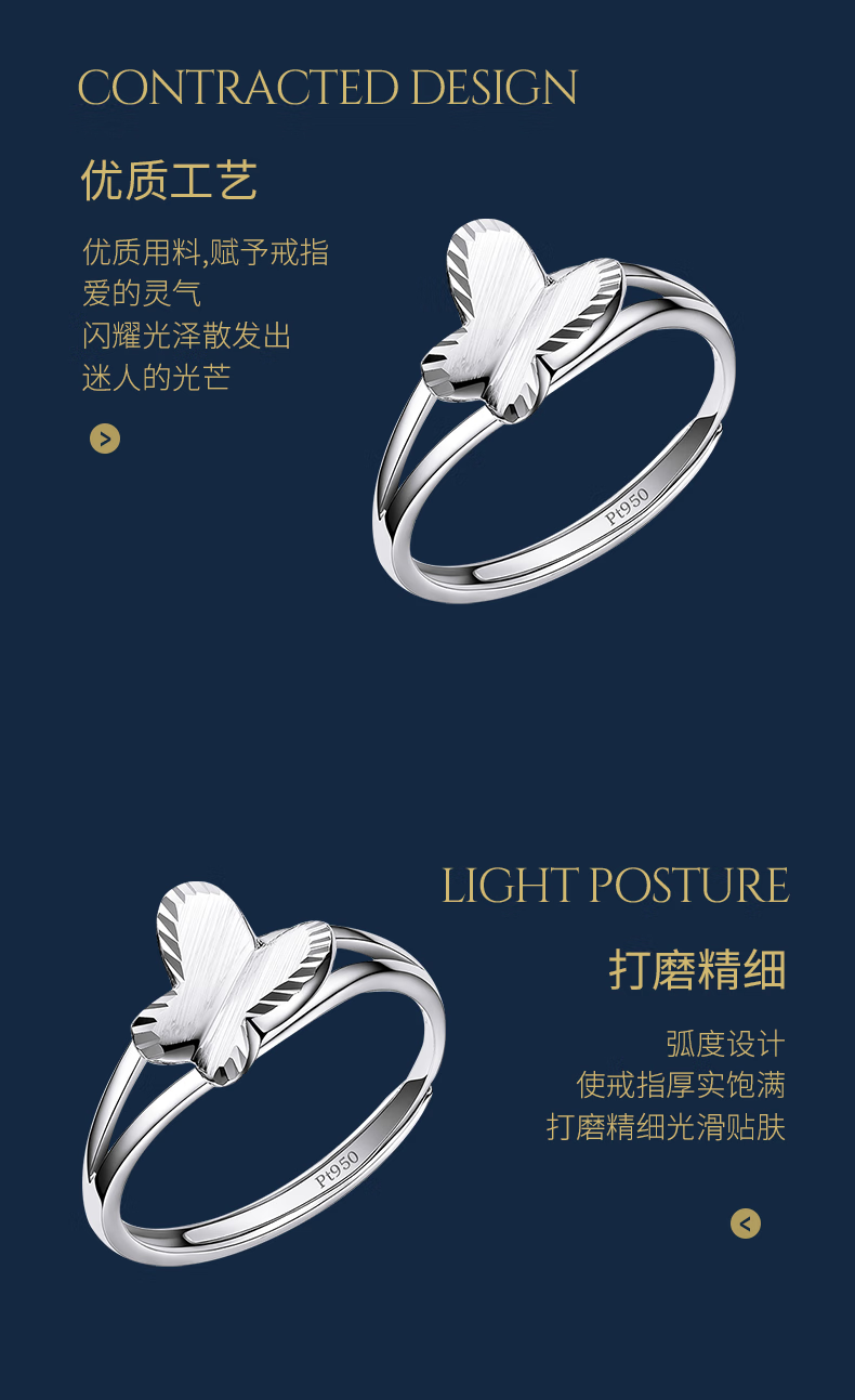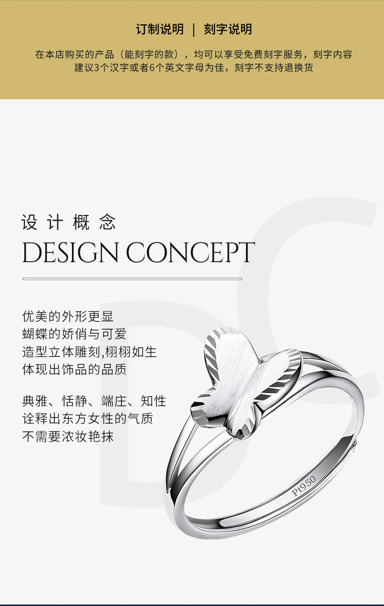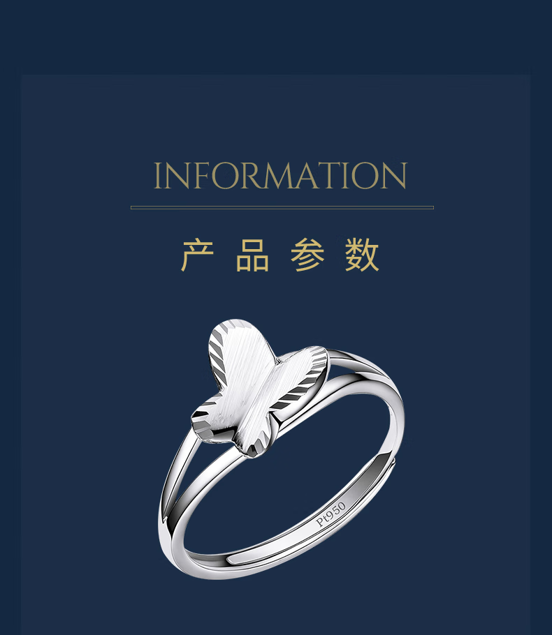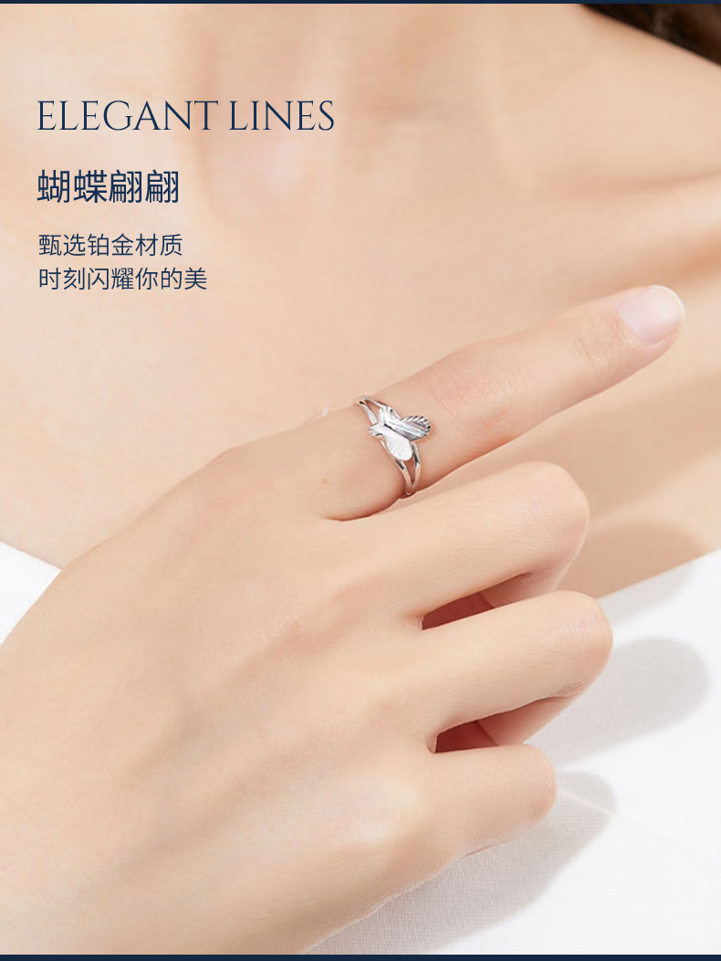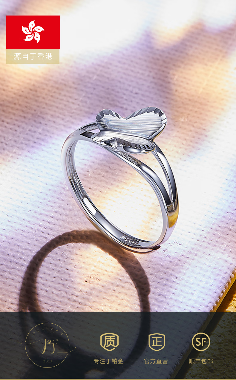 Pt.Charm Platinum Ring Butterfly Live Mouth PT950 Platinum Fashion Versatile Women's Ring Adjustable Bow Ring for Your Girlfriend If it is not in stock, it can be customized. Take 2.8g as an example