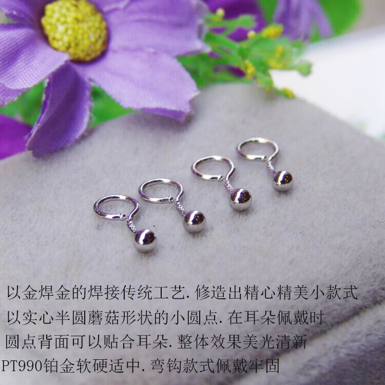PT950 Platinum Small Earrings Round Balls Versatile Platinum Ear Sticks for Students to Work Hidden PT950 Platinum Hook Dots 0.3g Single