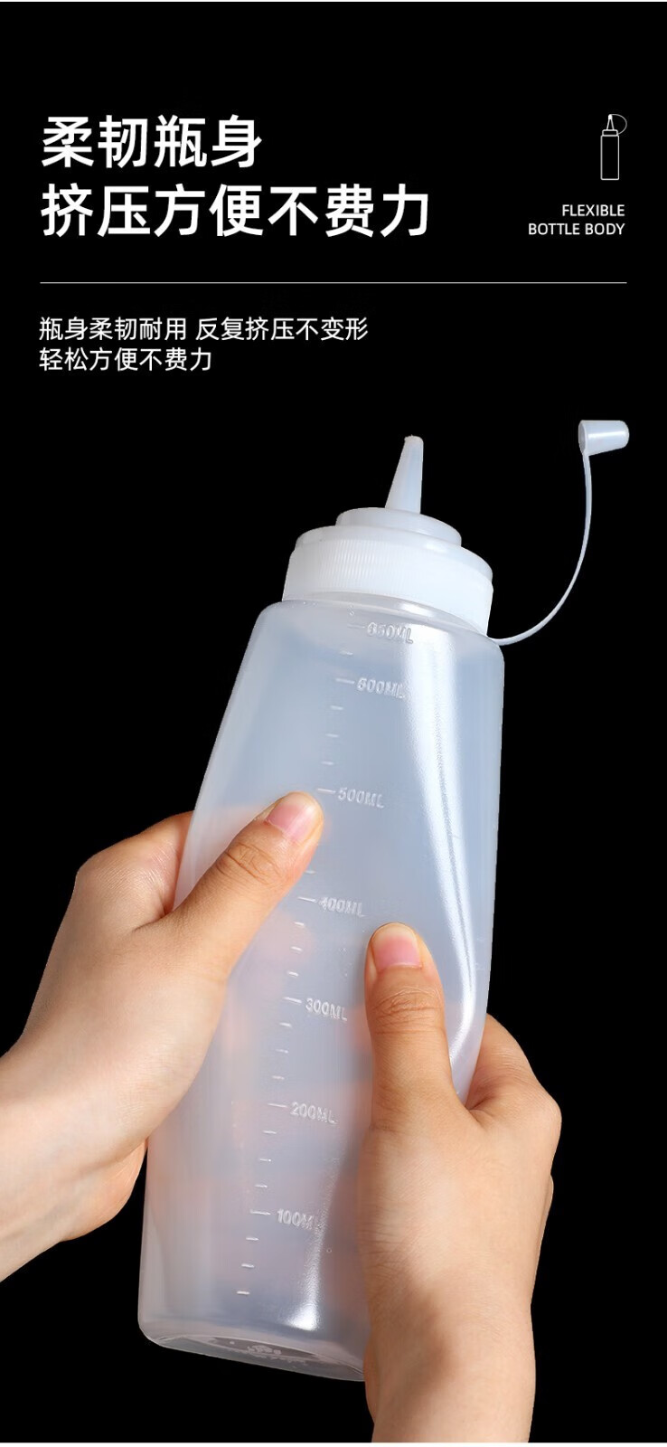 Xinshu Plastic Squeeze Sauce Bottle Household Tomato Sauce Salad Squeeze Bottle Sauce Honey Jam Bottle Pointed Mouth Bottle 650ml (3 pieces)