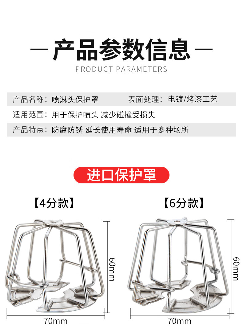 Fire sprinkler head protective cover protective bracket anti-collision cover universal type does not need to be disassembled red thickened protective cover (4 points)