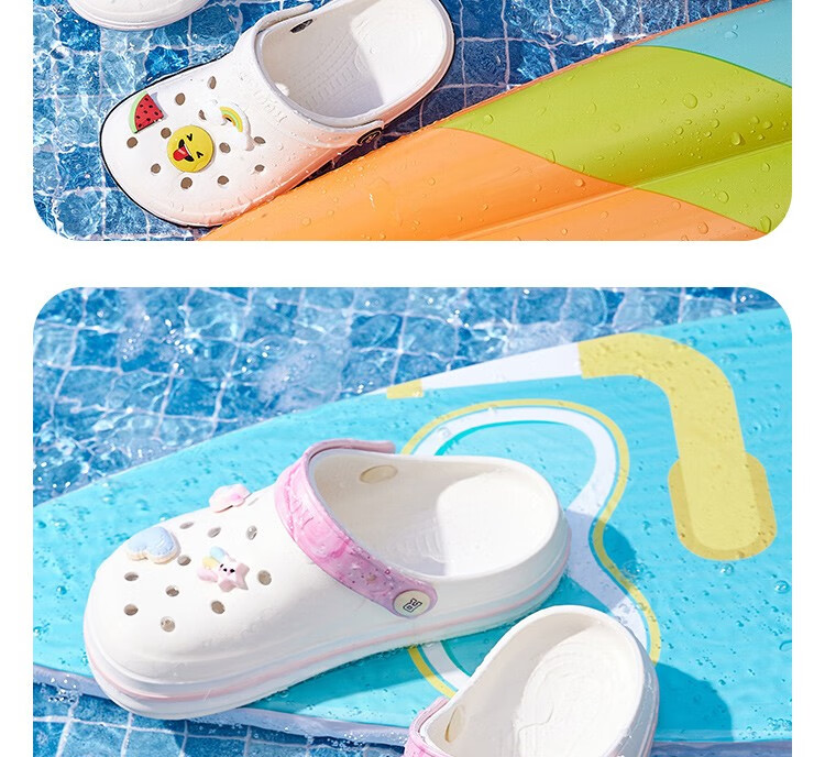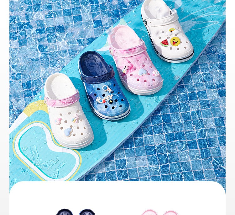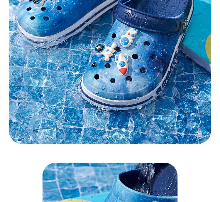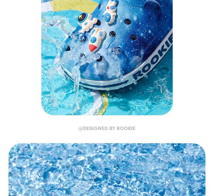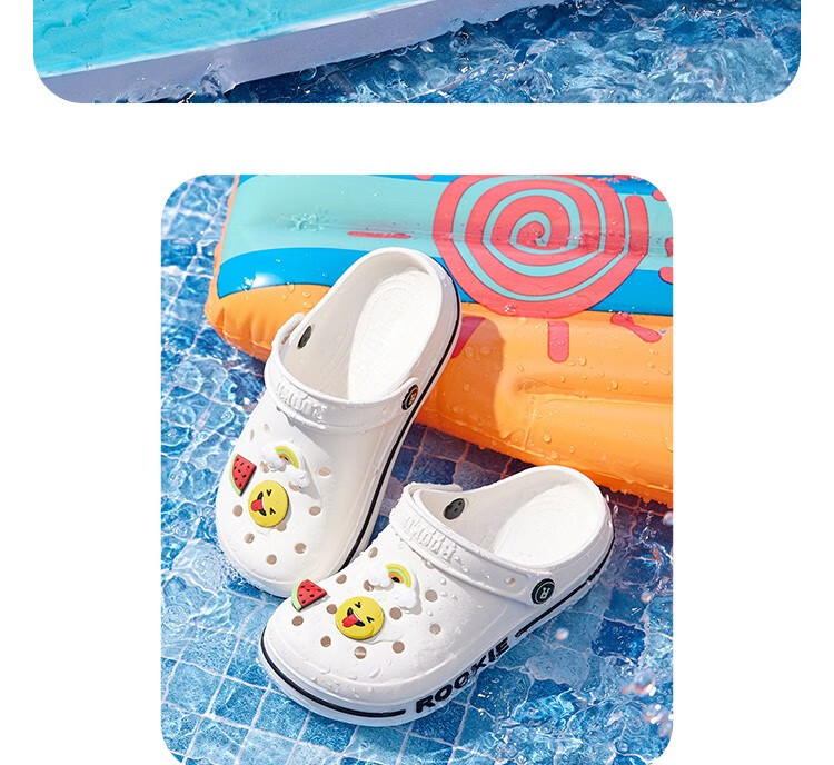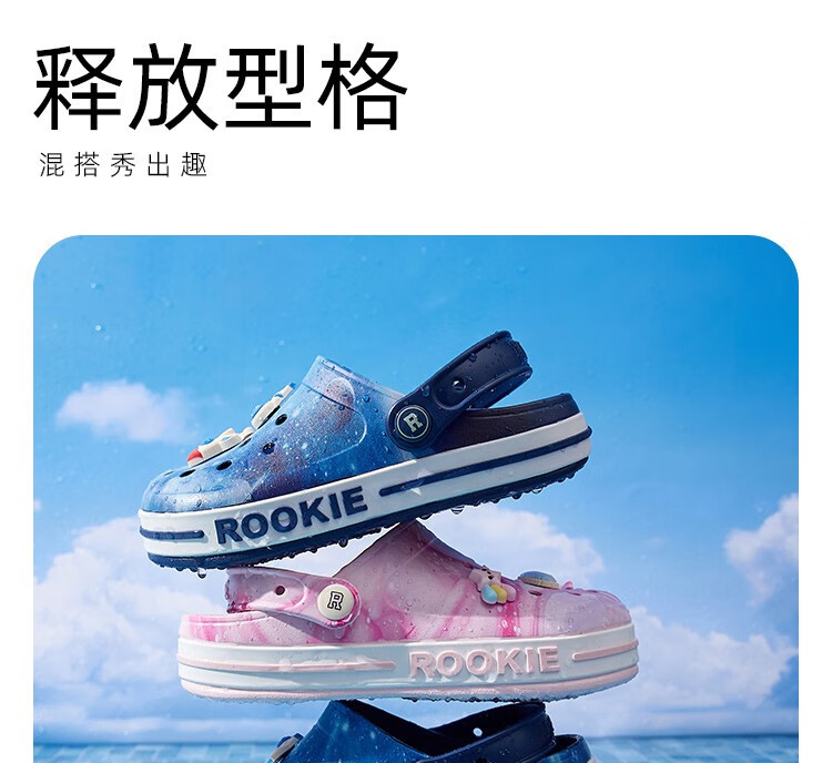 ROOKIE children's shoes for boys and girls, summer new children's beach toe-cap sandals, with 6 cartoon buckles, feather white/midnight blue 29 30, suitable for feet 18-18.5cm long