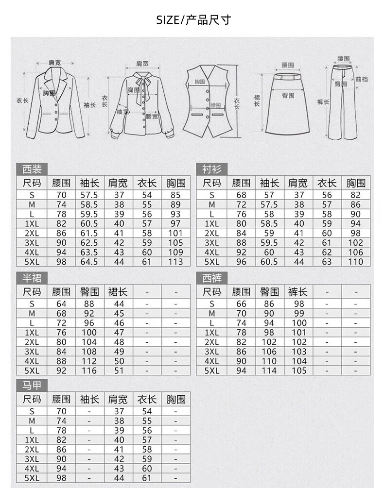 China (cm) 160-165/84-86 165-170 / 88-90 167-172 / 92-96 168-173 / 98-102 170-176 / 106-110