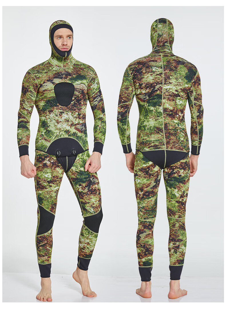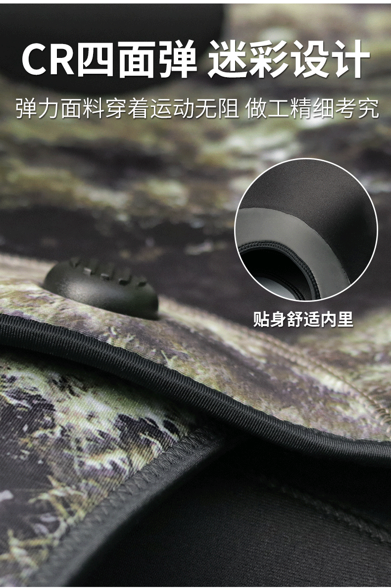 SBART 3MM rubber wetsuit split surf suit men's warm winter swimming long-sleeved one-piece swimsuit thickened jellyfish suit 1047 camouflage with hood XL