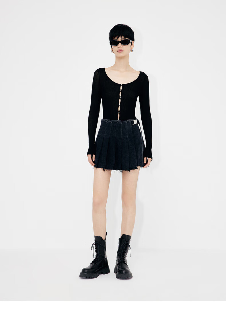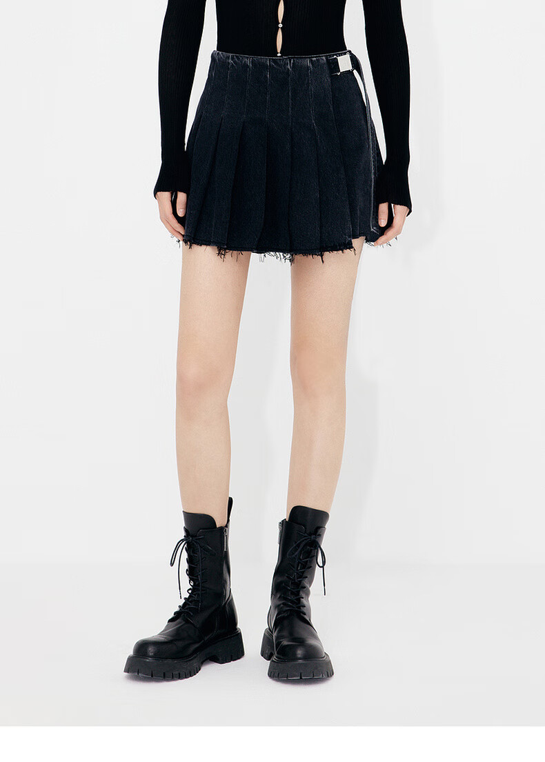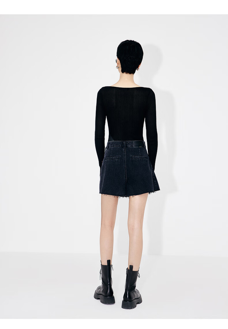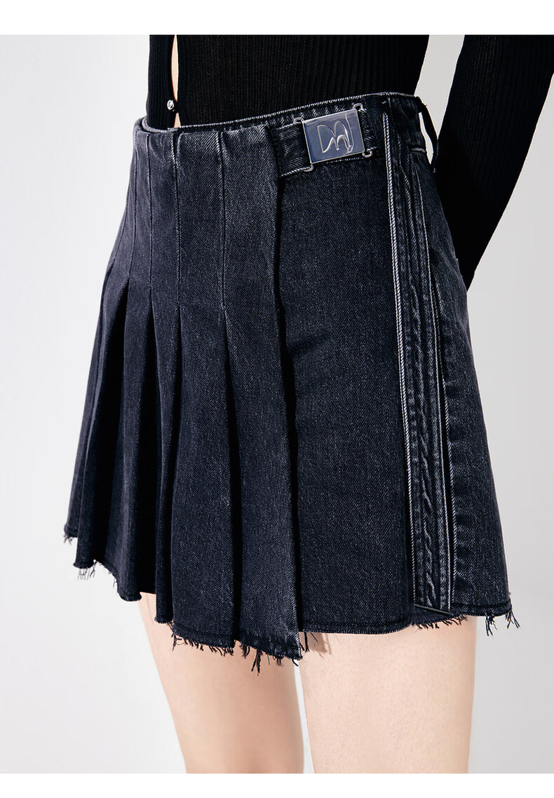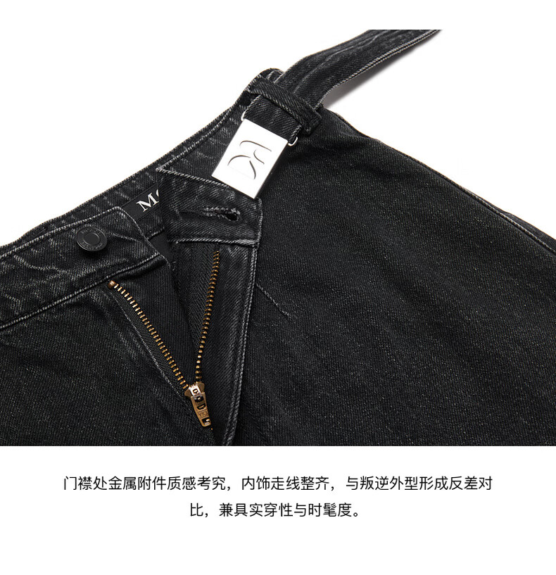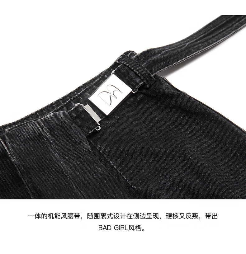 MO&Co. Functional style buckle high waist denim asymmetrical American retro culottes pants Moanke denim black S 26