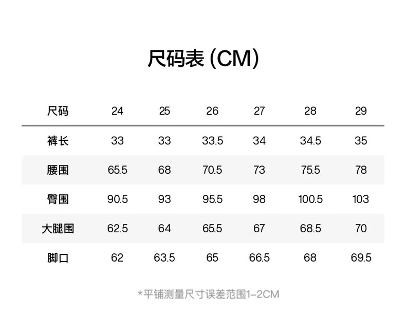 Outseam (cm) 99 cm 101.5 cm 104 cm 106.5 cm 109 cm