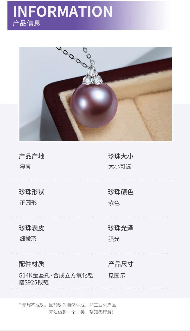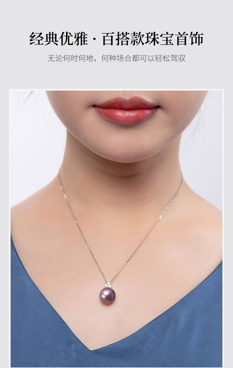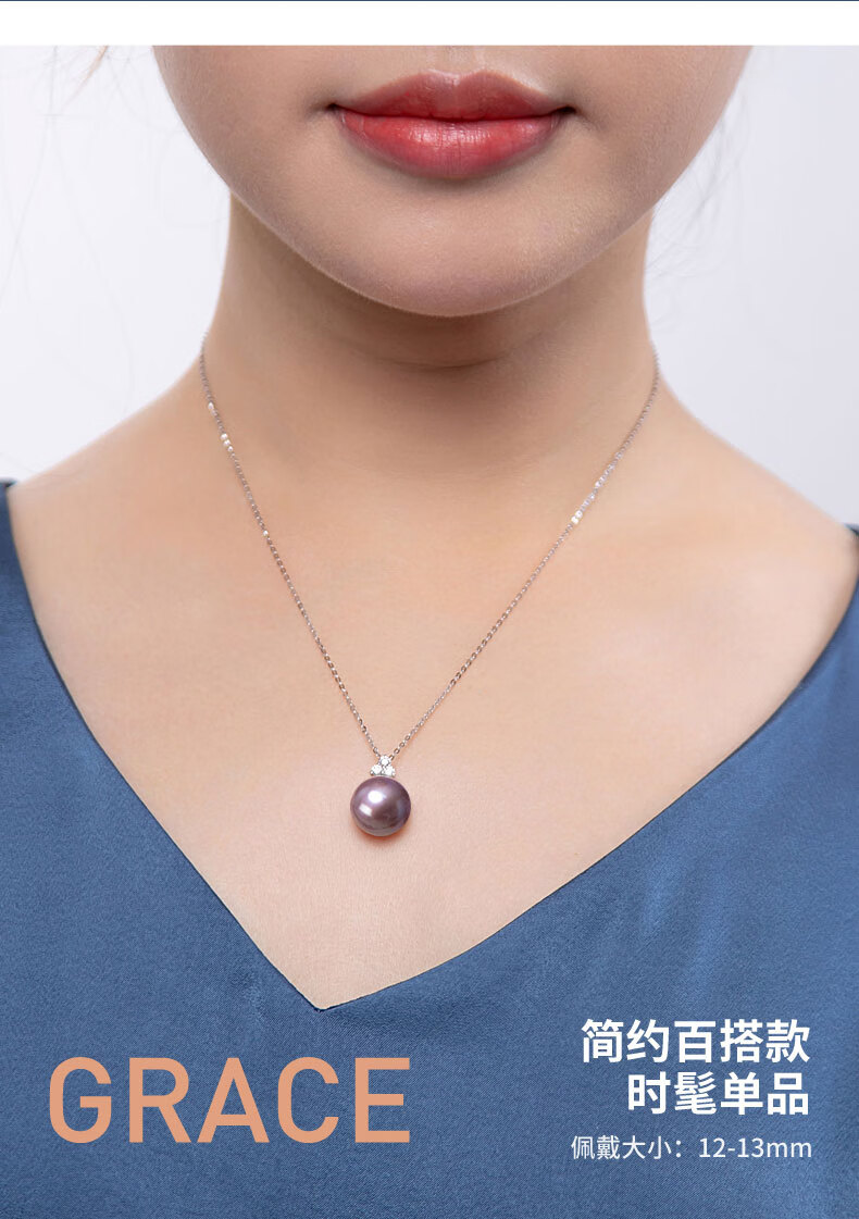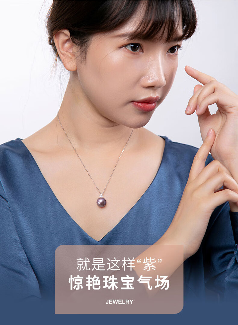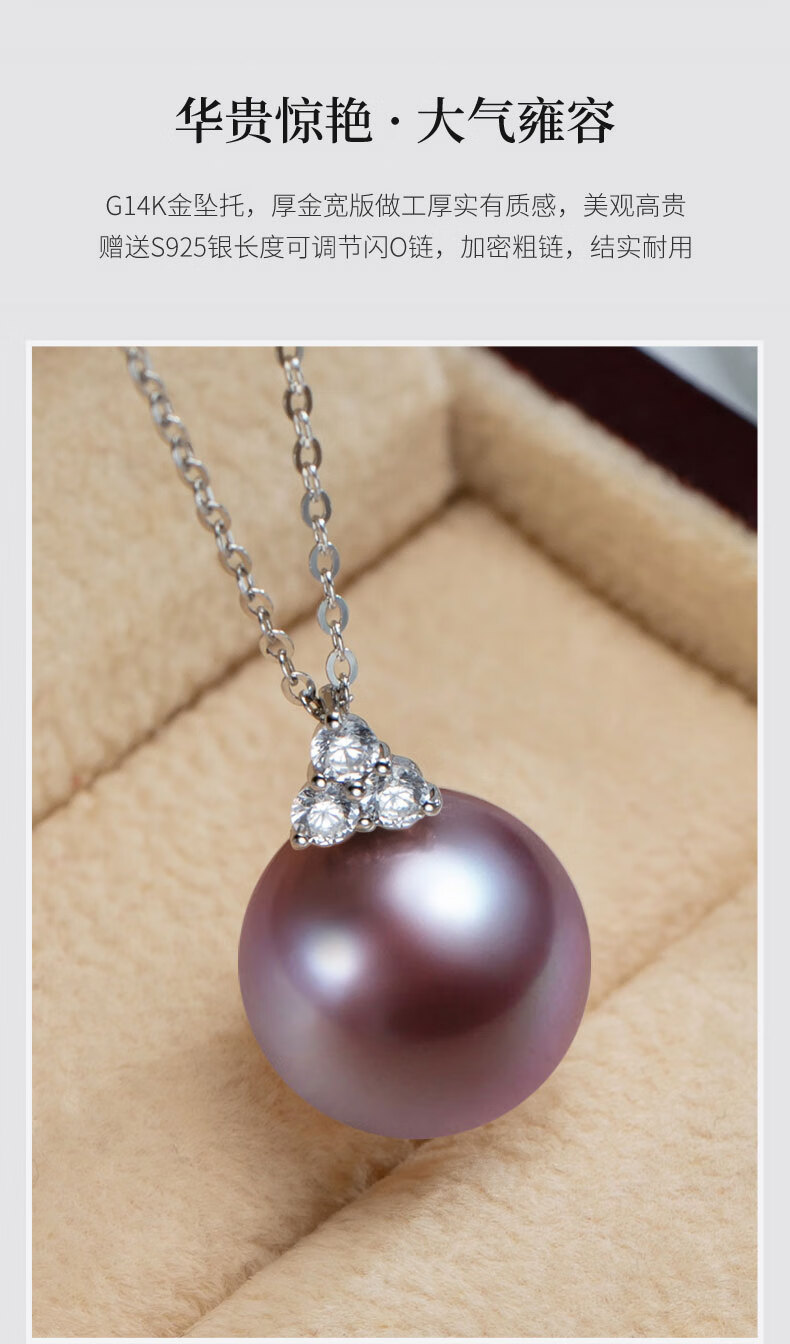 Hai Tong Jiu Zi Li Huo Purple freshwater pearl pendant for women single piece Yaco K gold simple pearl necklace clavicle chain minor flaws 10-11mm