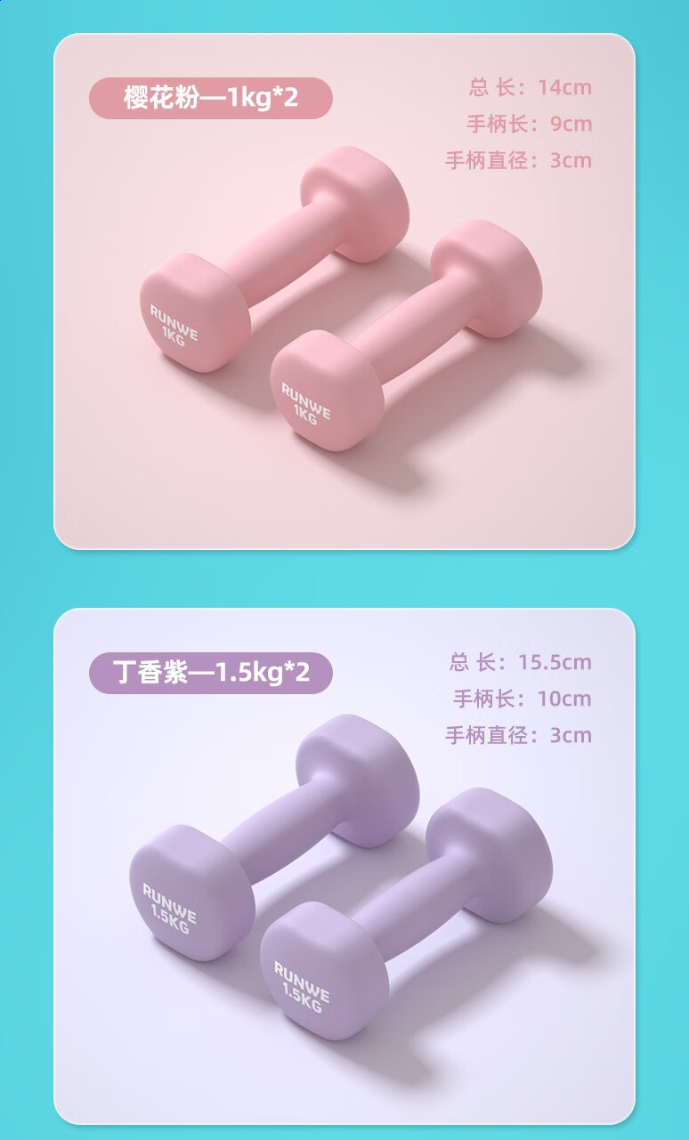 Langwei dumbbell men's arm training children's fitness household cast iron dumbbell exercise small dumbbell indoor fitness cherry blossom powder 1kg*2 only