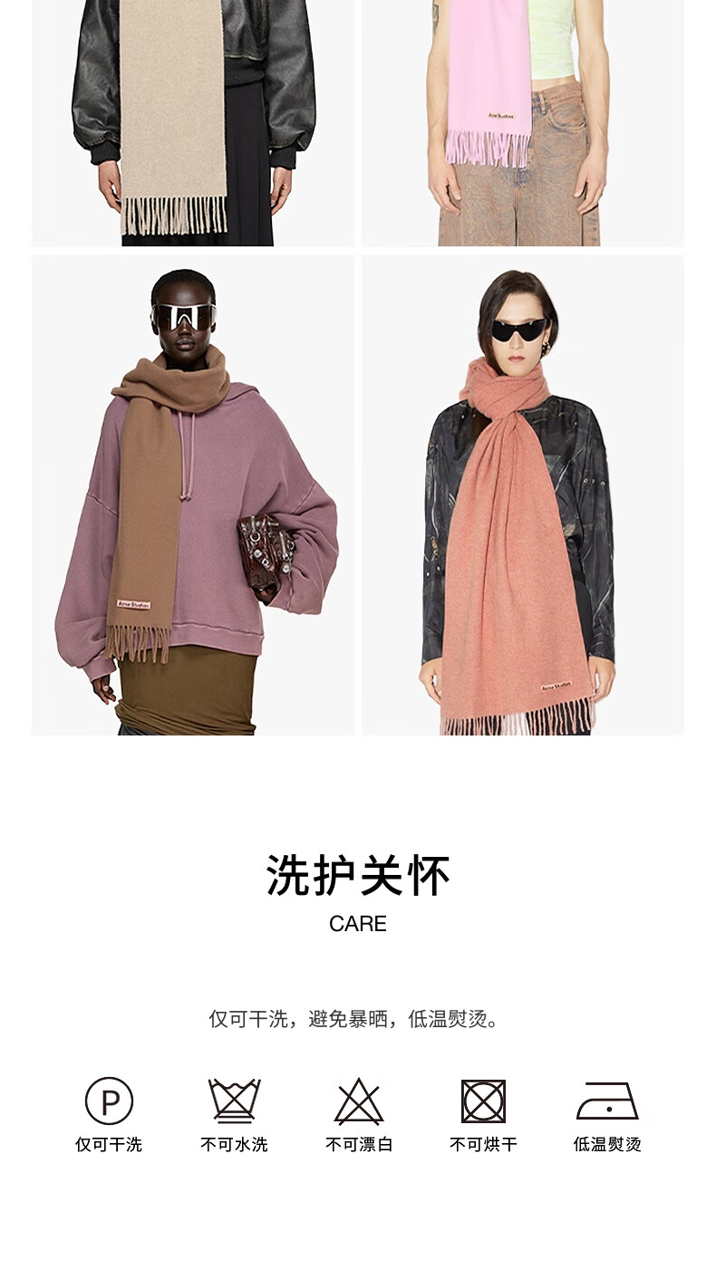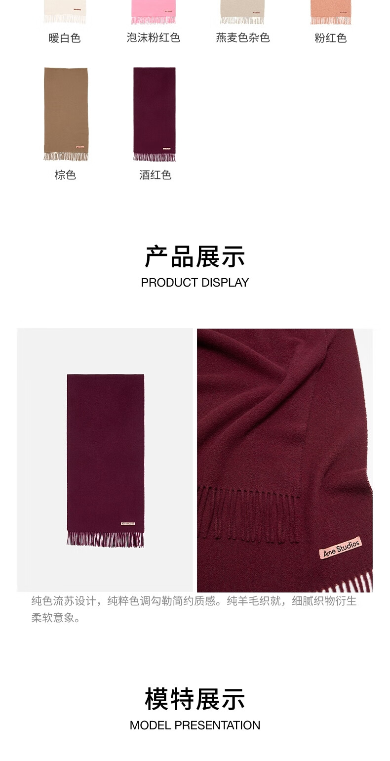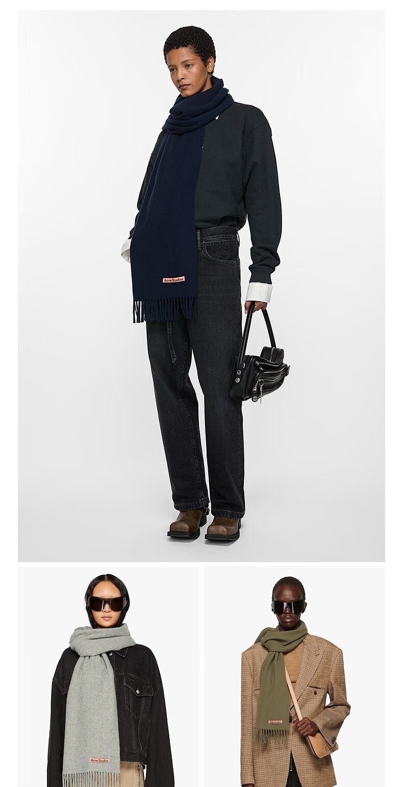 Acne Studios gift solid color tassel double-sided wool scarf shawl light heather gray