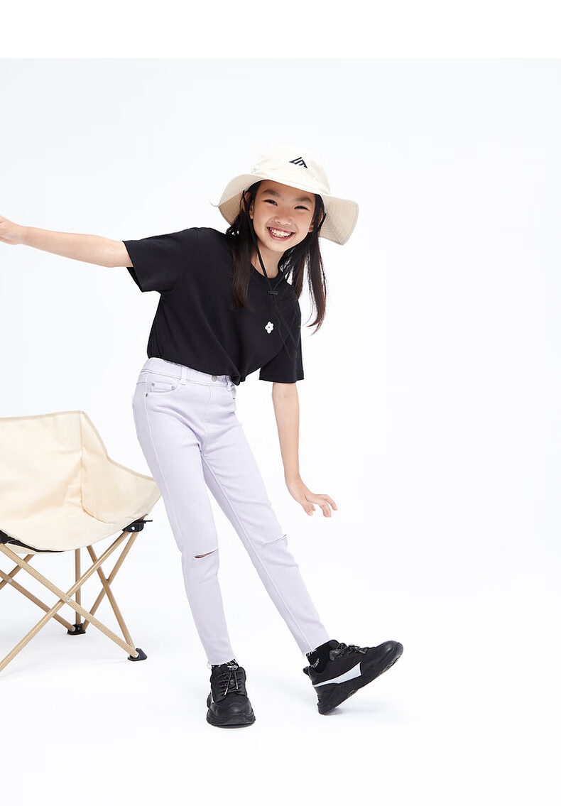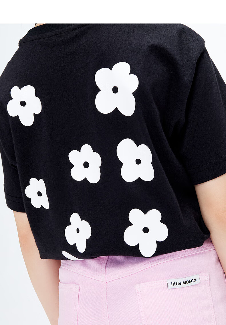 Little MO&Co. Children's clothing summer girls small flower printed cotton short-sleeved T-shirt children's tops medium and large children black 100 110/52