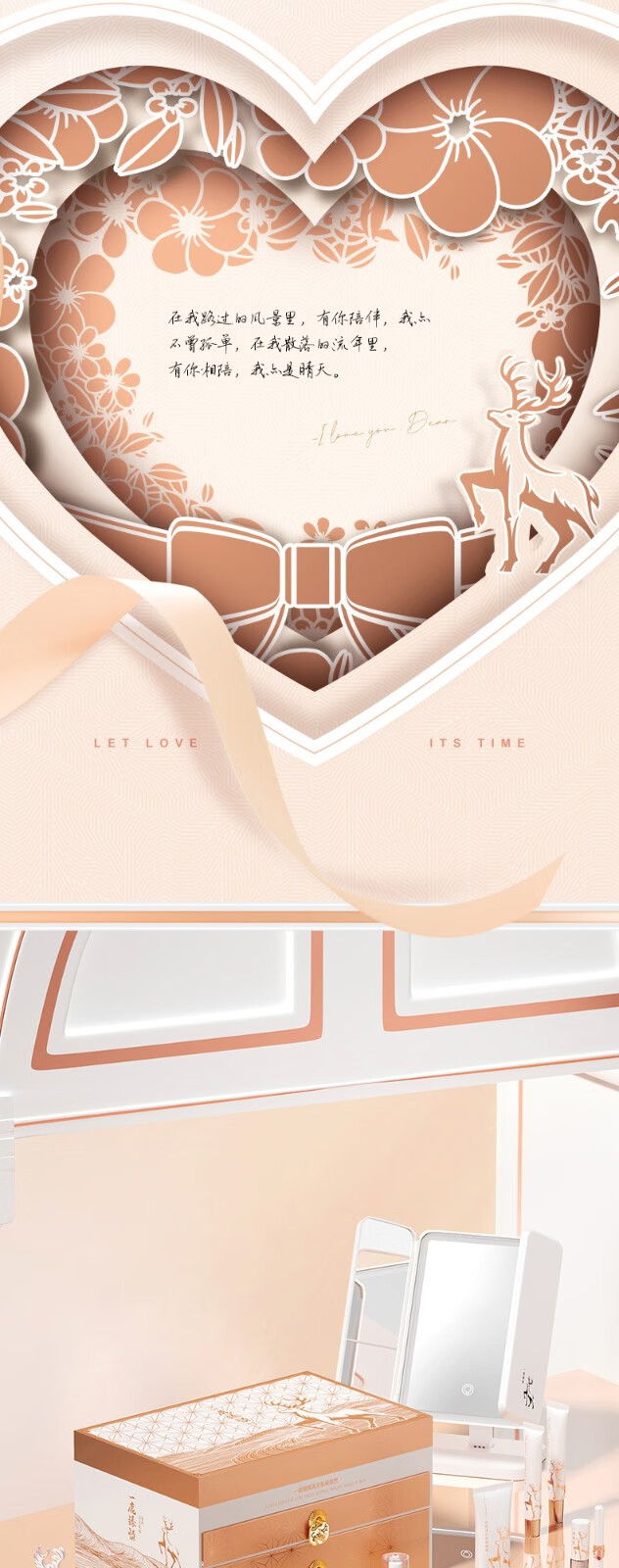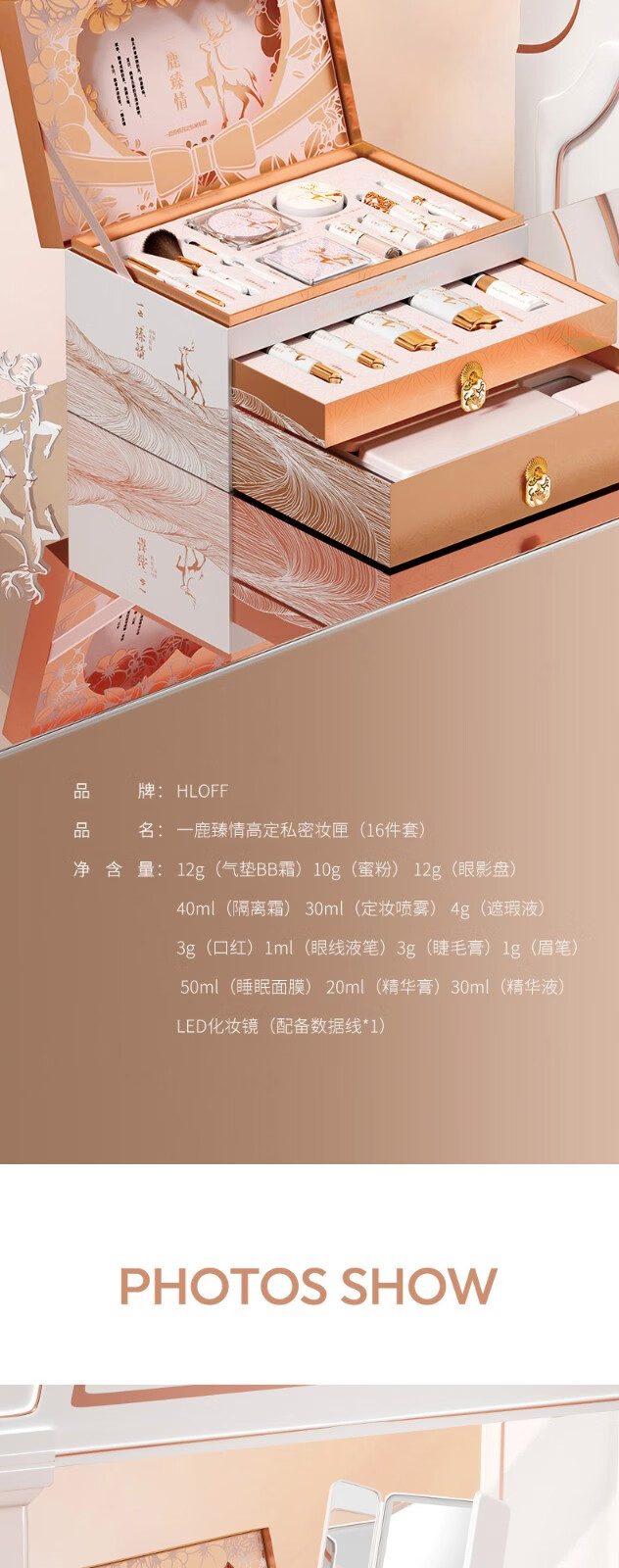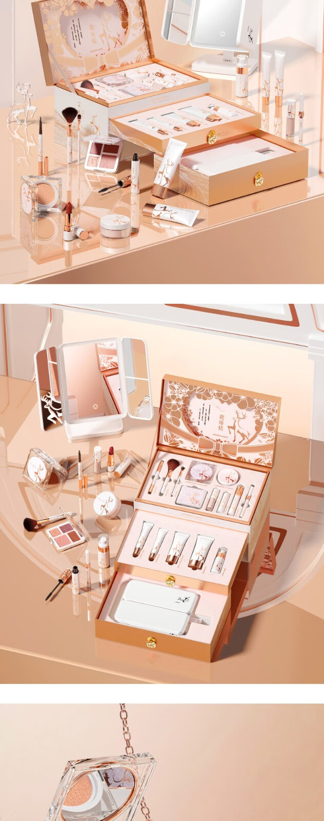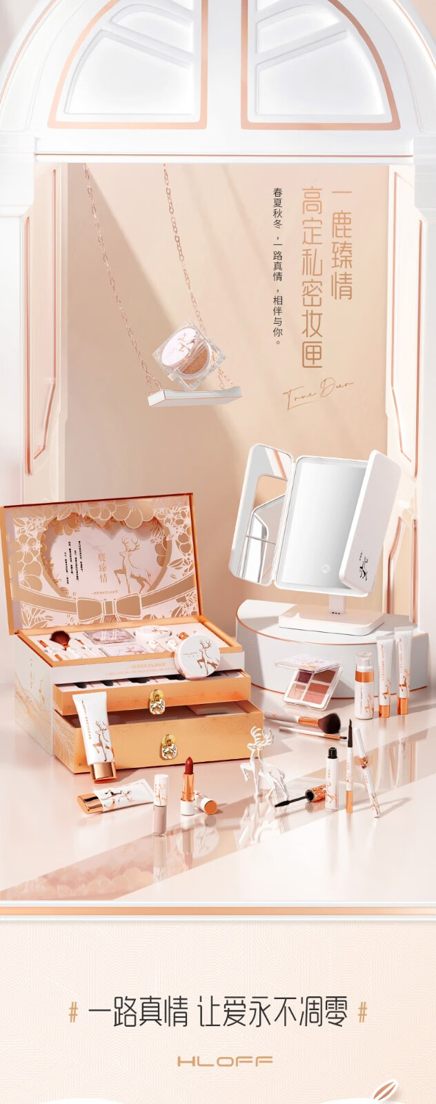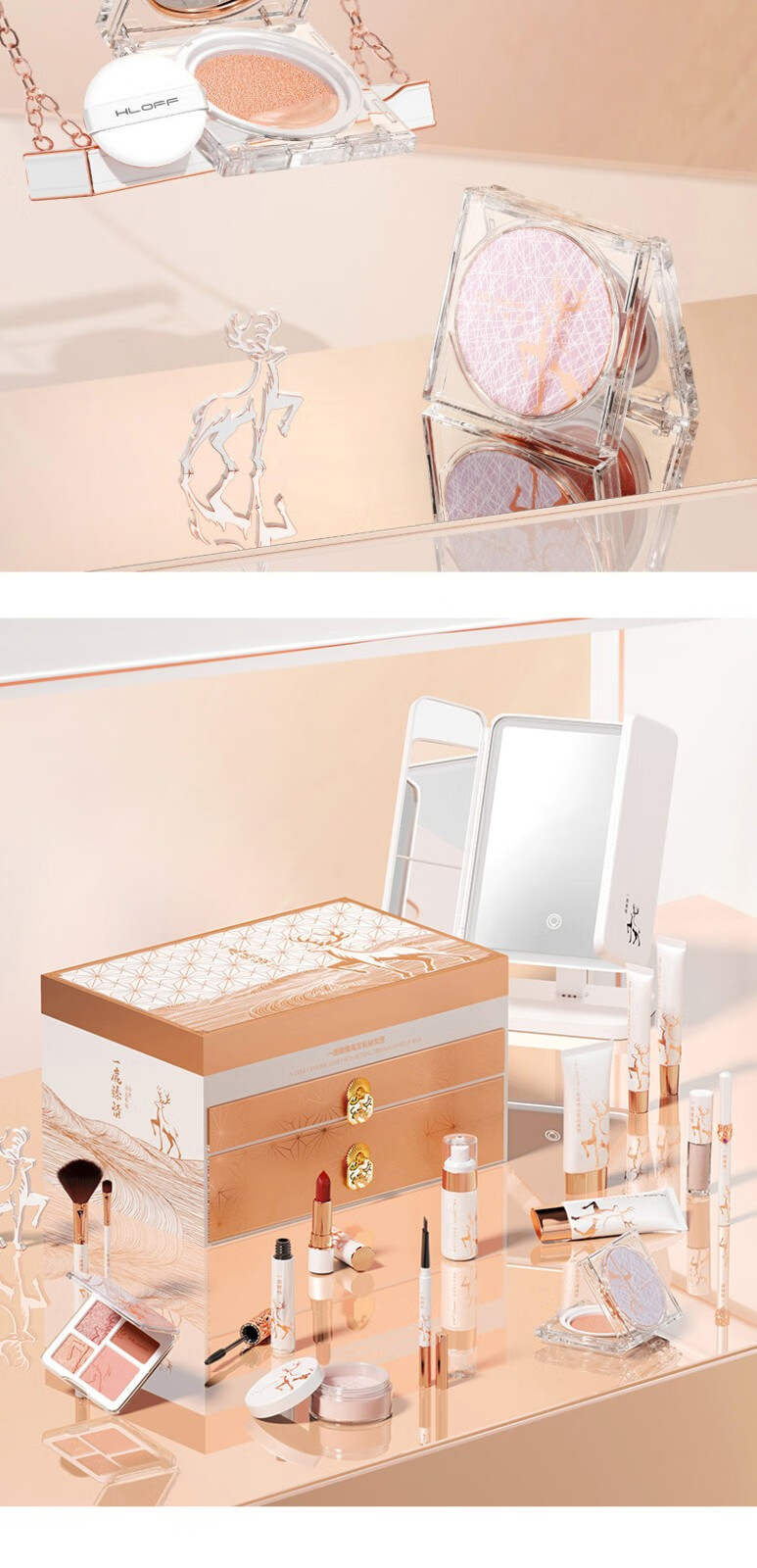 HLOFF New Year's gift Yulu You You Cosmetics complete set of makeup gift box lipstick birthday gift for girlfriend, girl and wife Yulu Zhenqing makeup lipstick set + LED mirror