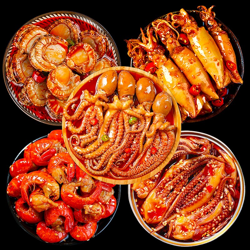Hailingguan Spicy Octopus Seafood Canned Ready-to-Eat Delicatessen Lobster Tail Oysters Squid Octopus Canned Snacks Sample Sample 1 Can of Octopus
