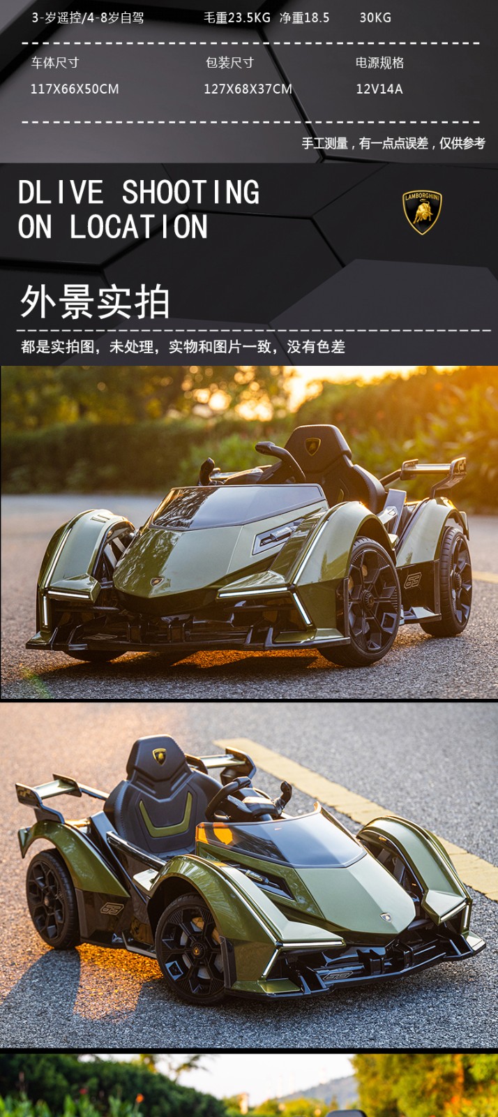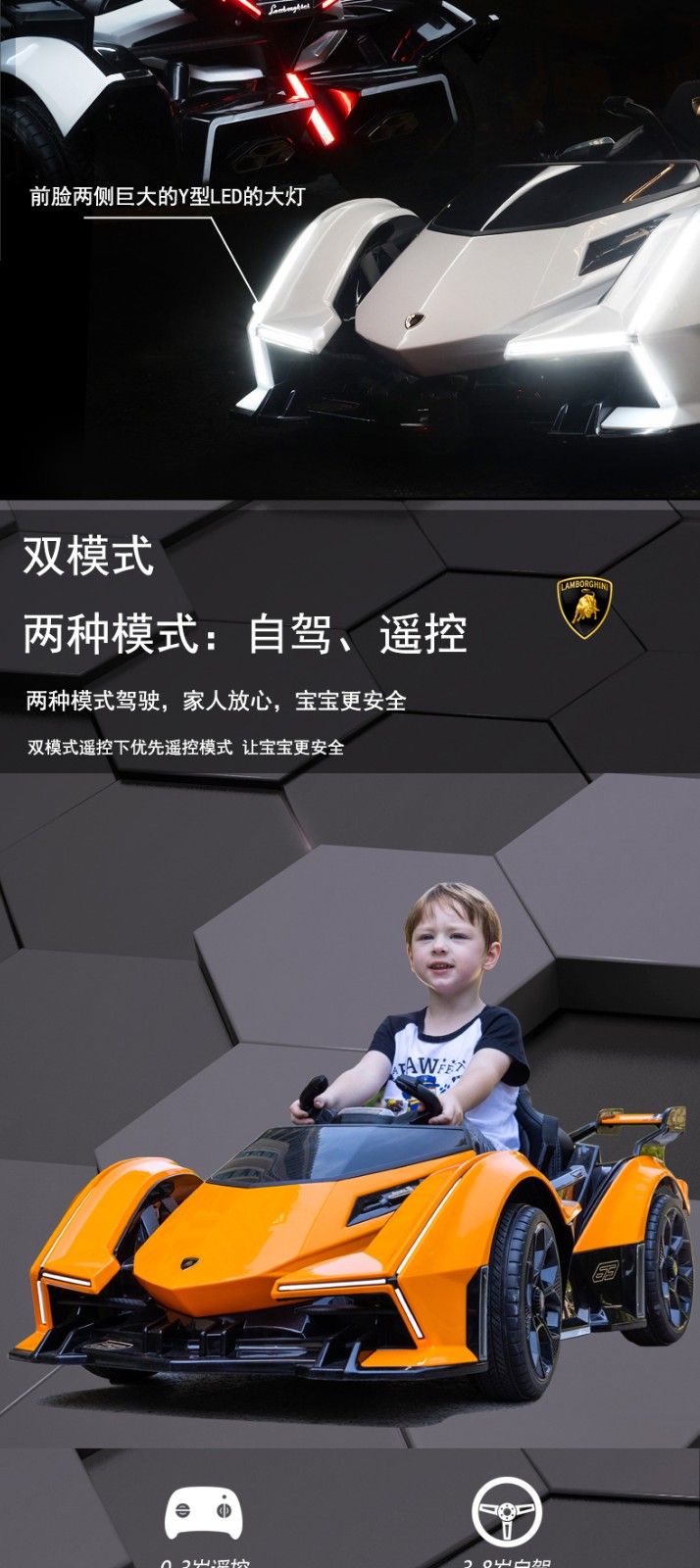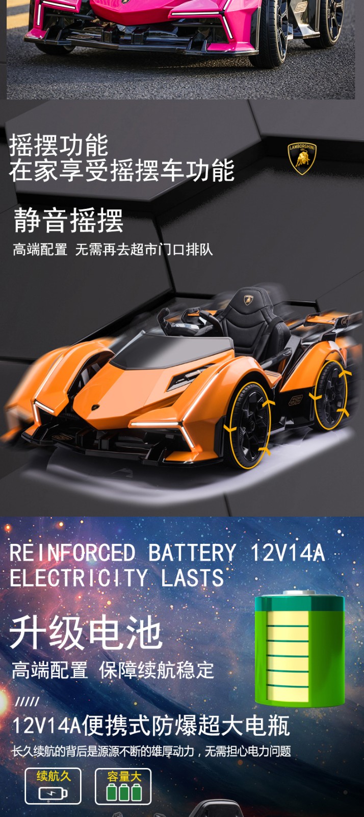 Cooperate with Lamborghini baby electric car, remote control four-wheel car that can sit and swing for men and women, children's toy stroller, orange battery life of 6 hours, large lithium battery + full function