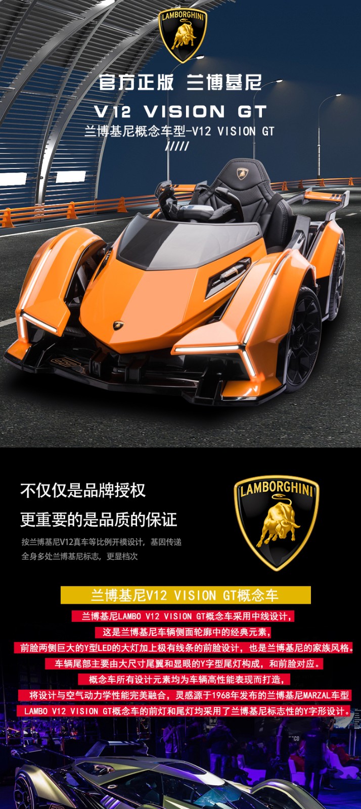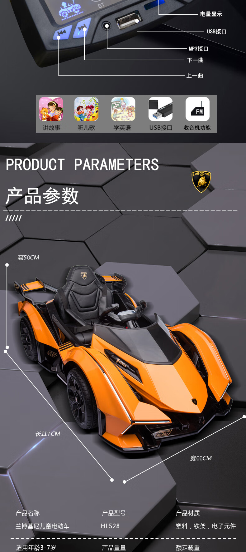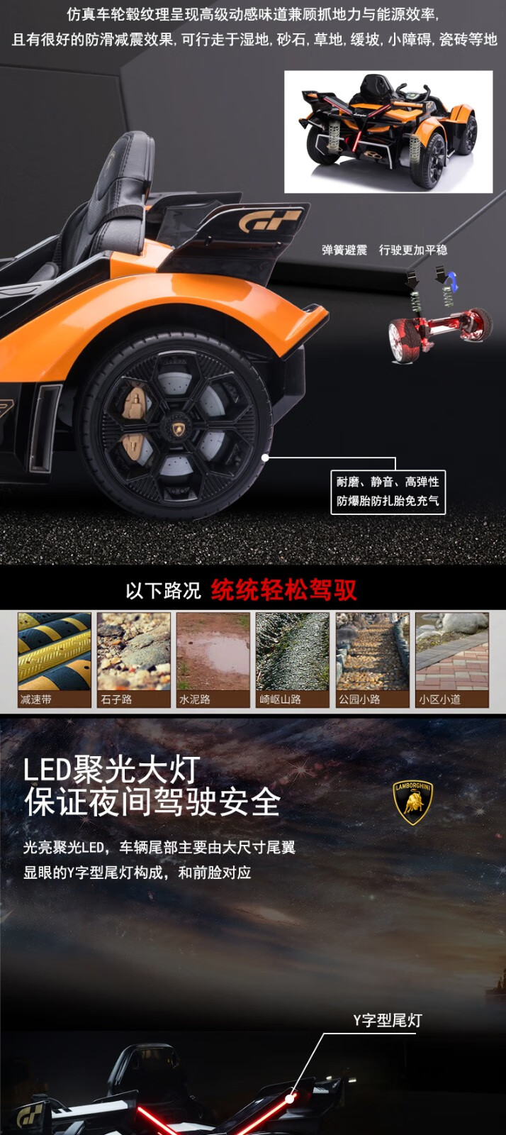 Cooperate with Lamborghini baby electric car, remote control four-wheel car that can sit and swing for men and women, children's toy stroller, orange battery life of 6 hours, large lithium battery + full function