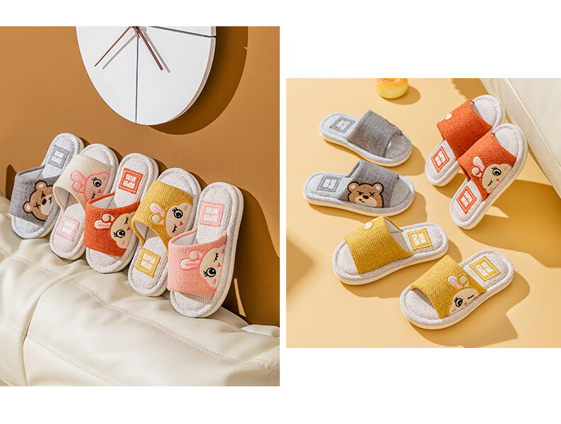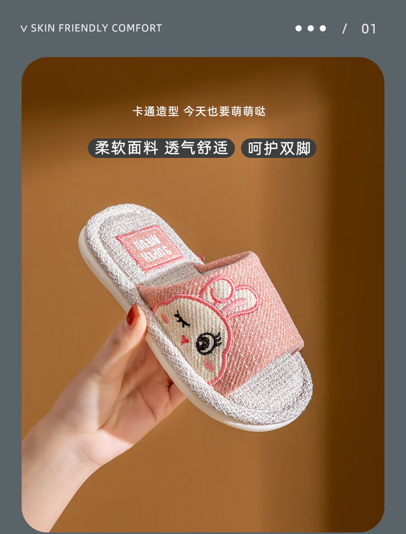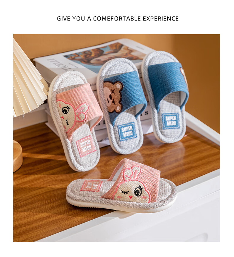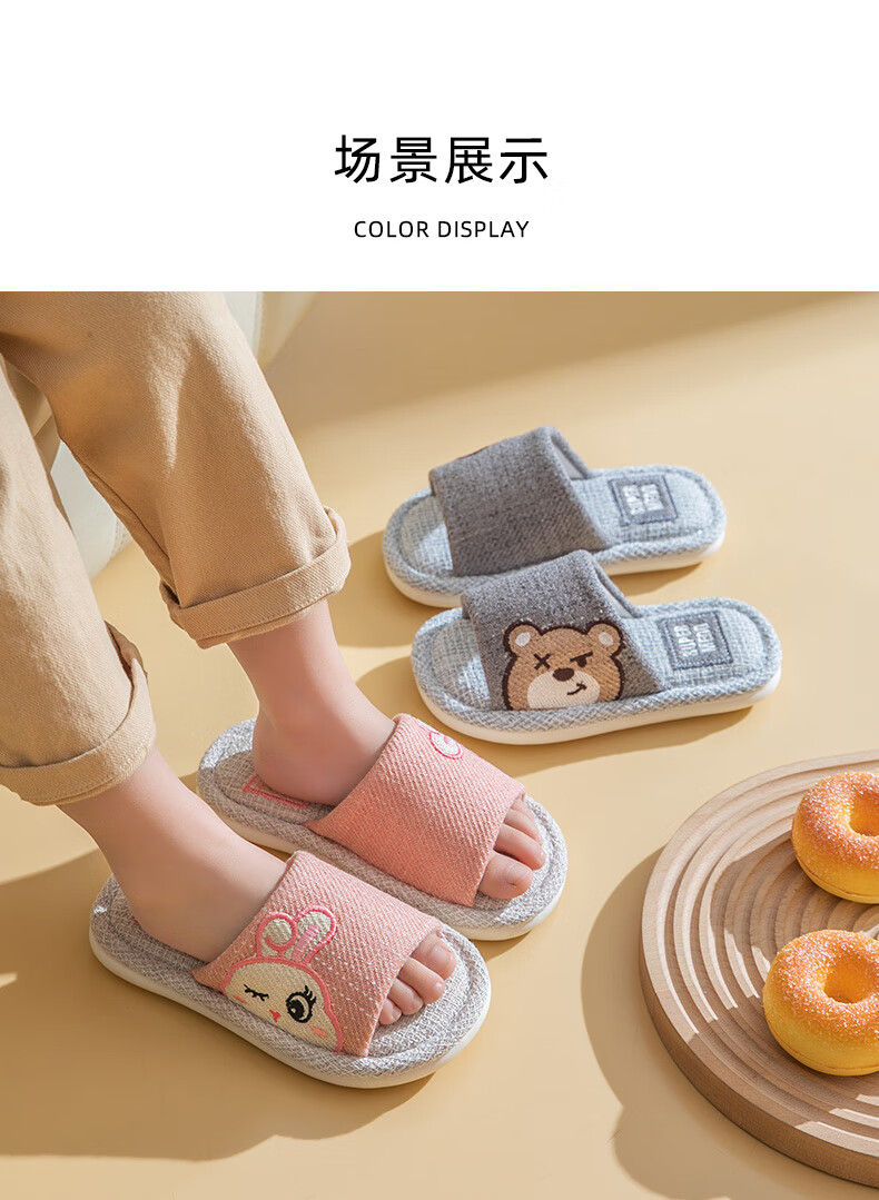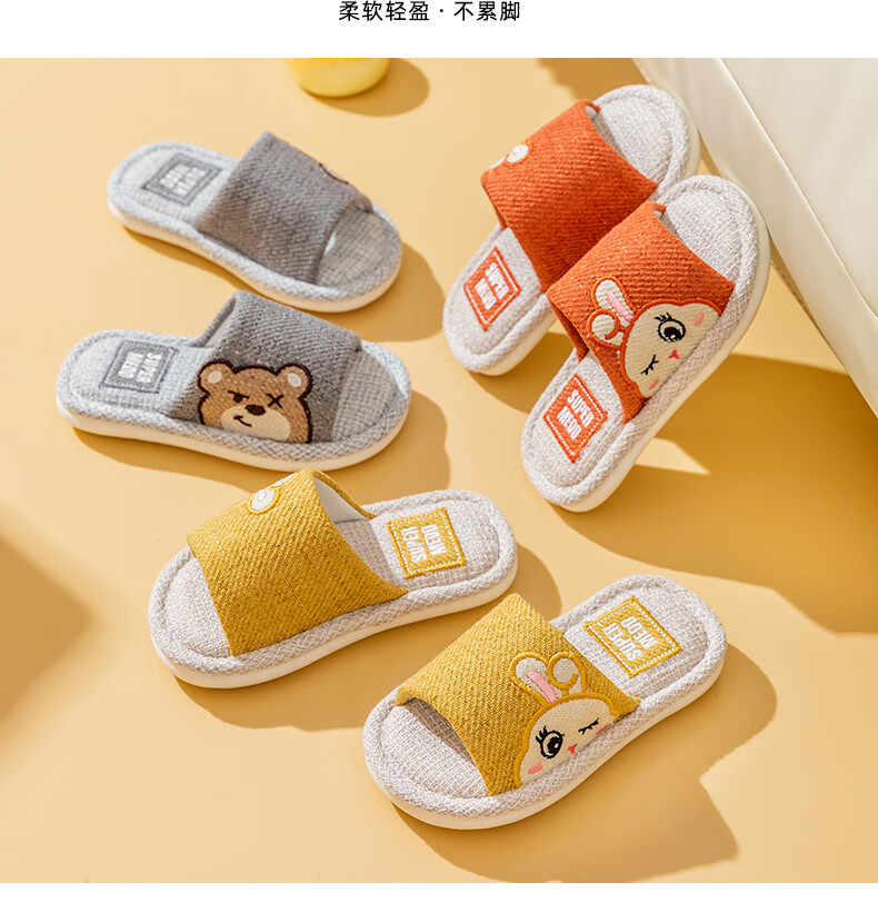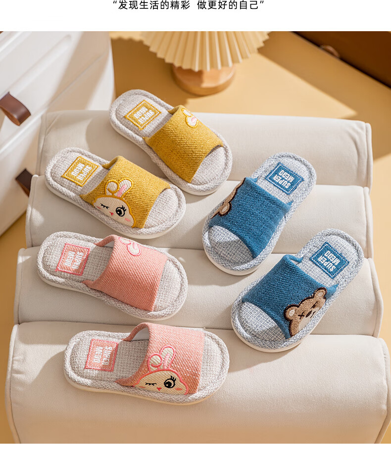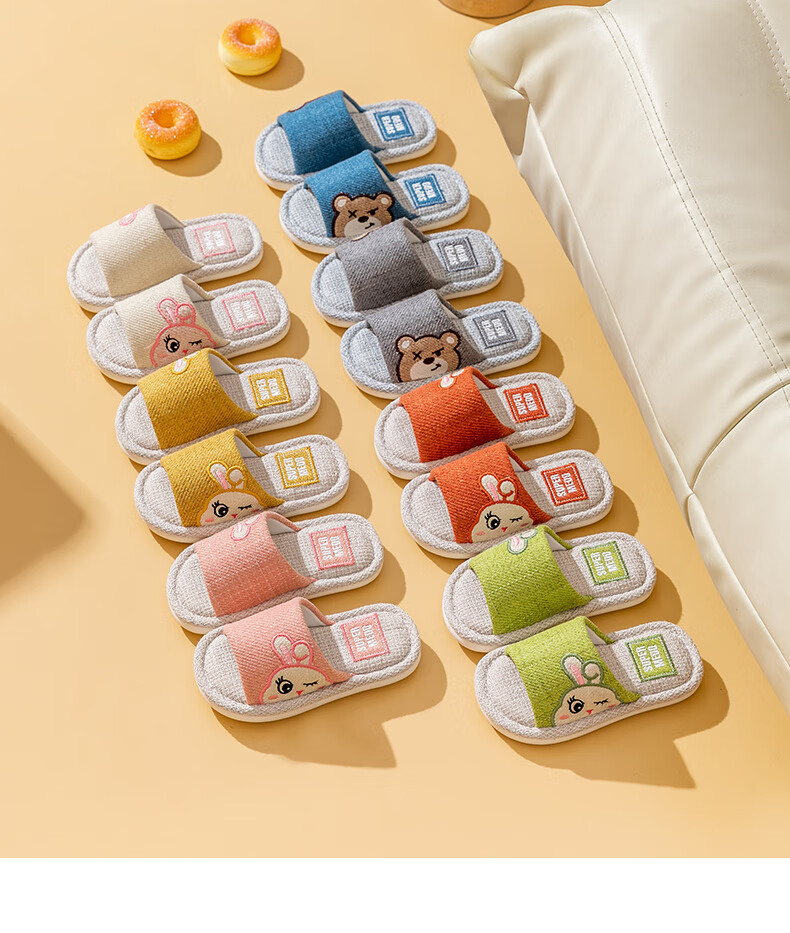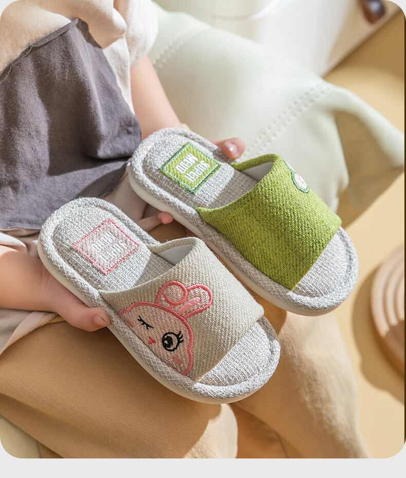 G.duck Children's Linen Slippers Children's Indoor Non-Slip Baby Soft Sole Four Seasons Cotton and Linen Slippers for Children Navy Size 34/35 Inner Length 21CM (Suitable for 7-8 Years Old)