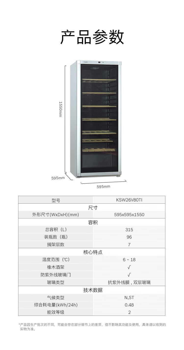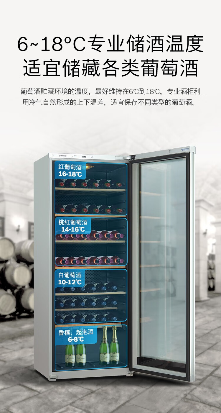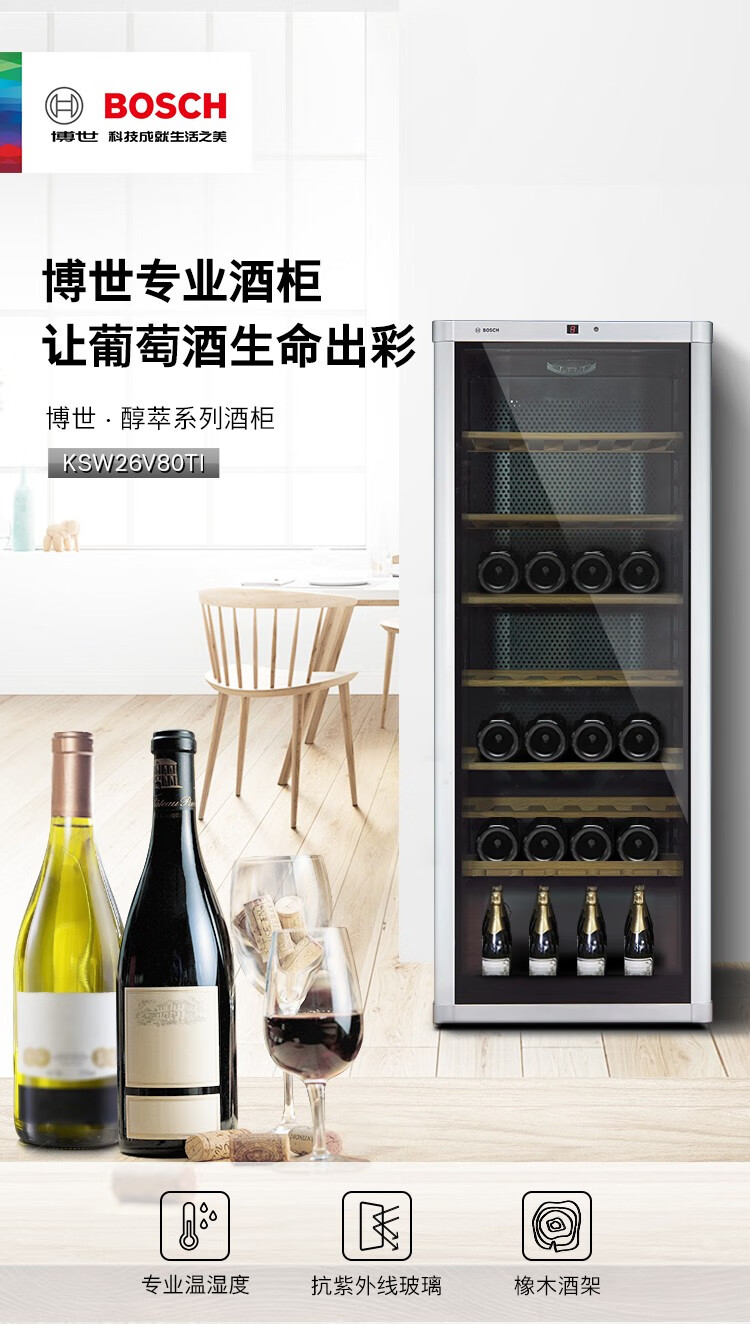 Bosch household large capacity oak wine rack refrigerator living room constant temperature red wine cabinet KSW30V80TI 120 pieces 385L
