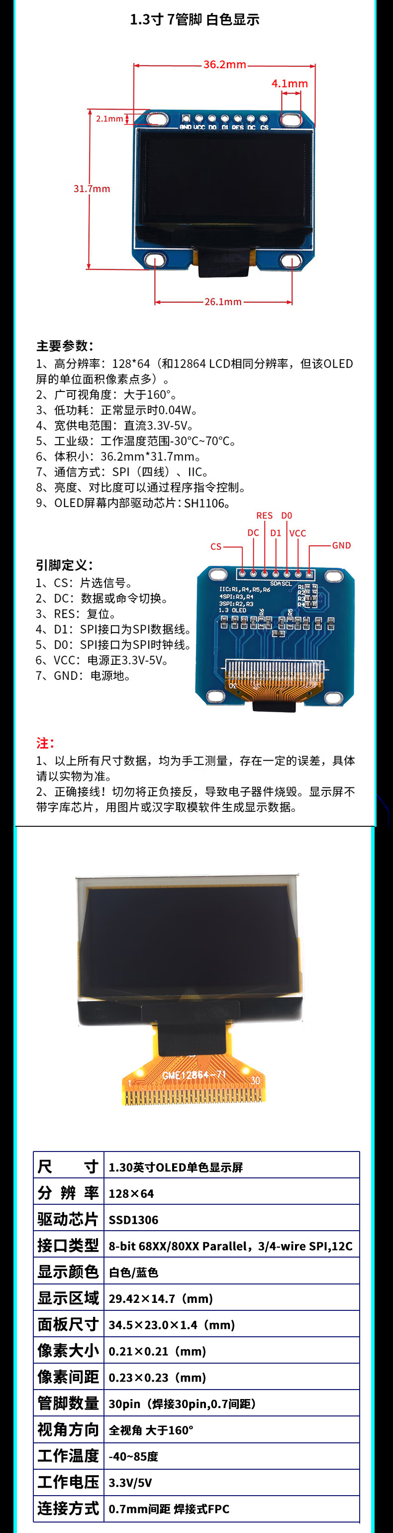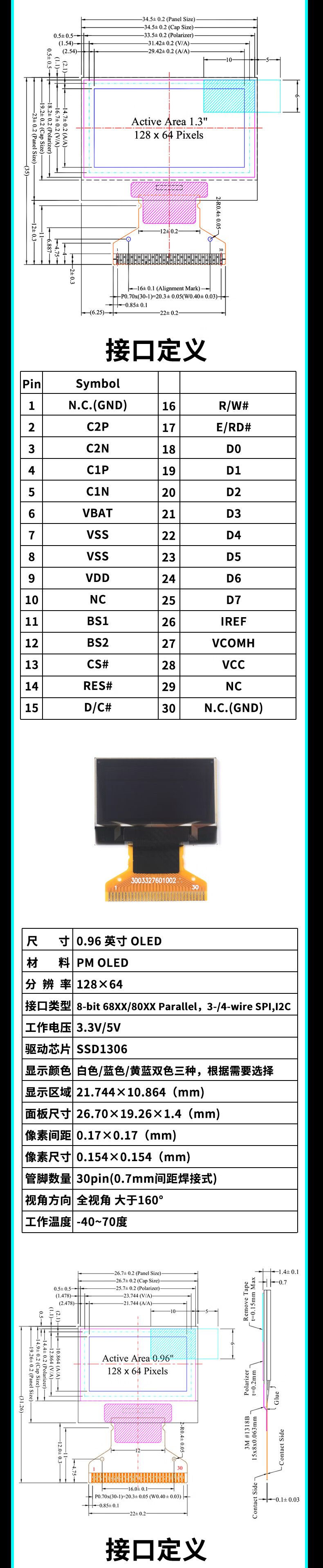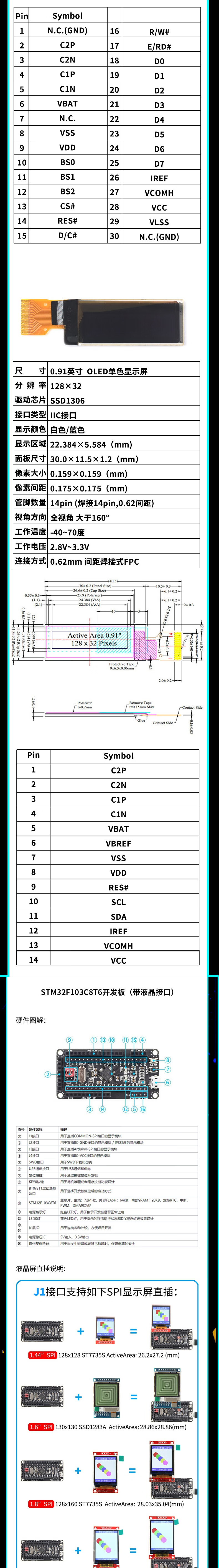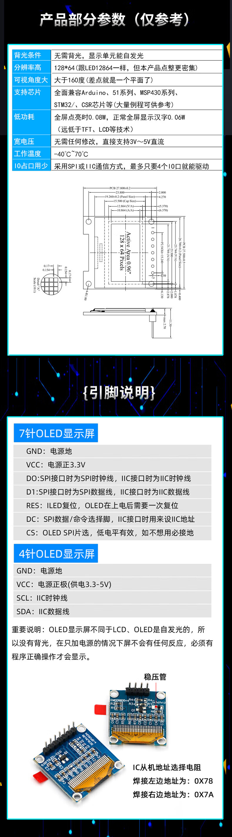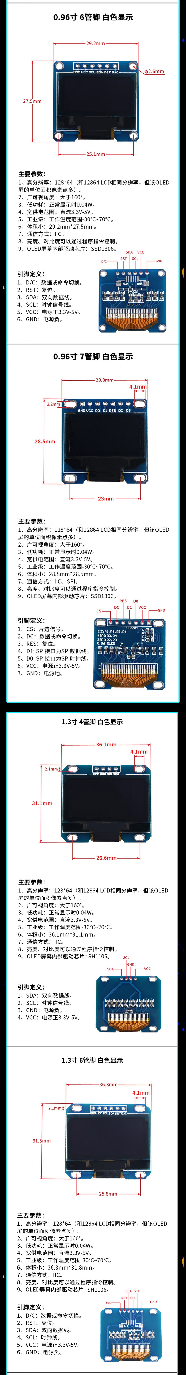 Dengshitang 0.96-inch OLED display module 0.91 1.3-inch LCD screen 12864 screen 4/6/7 pin IIC/SPI 0.96-inch 4-pin blue display new driver chip SSD