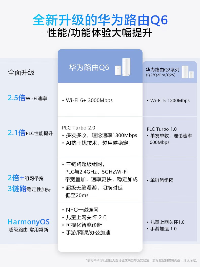 Huawei new product Huawei Lingxiao sub-mother router Q6 power line version distributed whole house wifi6 + Gigabit wireless large-scale through-wall PLC power cat Q6 network cable version sub-router needs to be used with the main router
