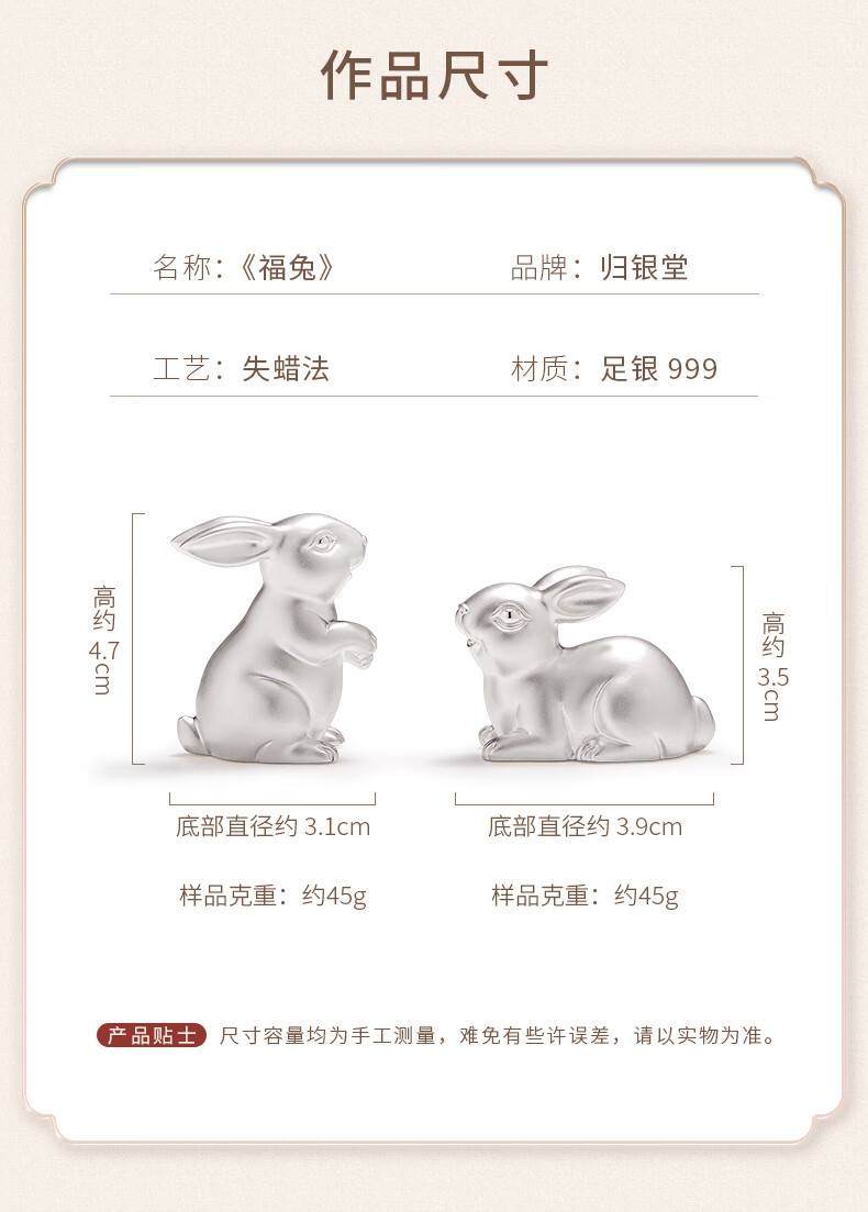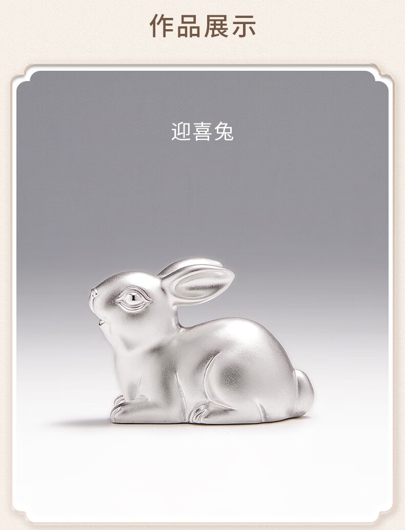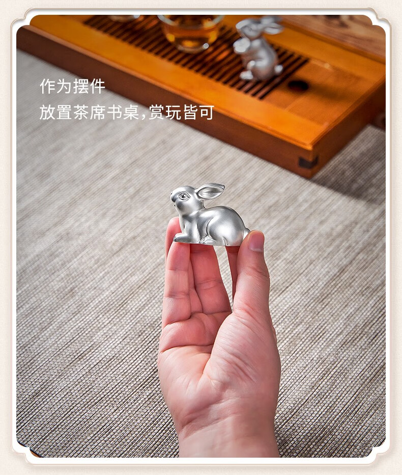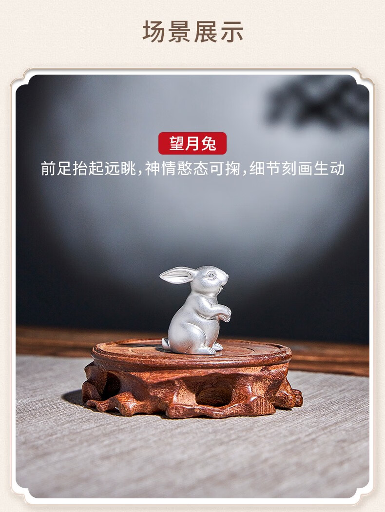 Guiyintang Pure Silver 999 Tea Pet Handmade Boutique Lucky Rabbit Tea Play Handle Pieces Can Raise Creative Ornaments Silverware Tea Set Accessories Moon-Watching Rabbit + Certificate + Gift Box