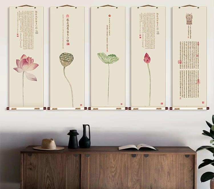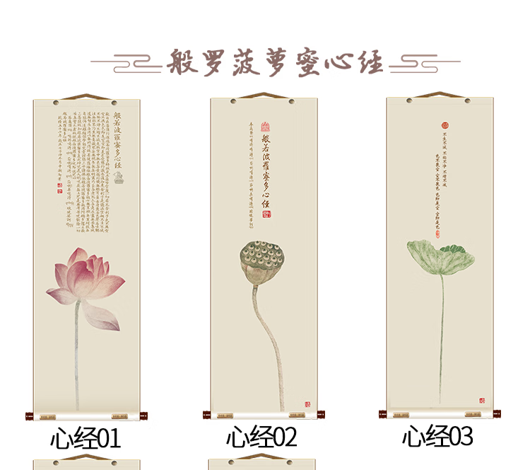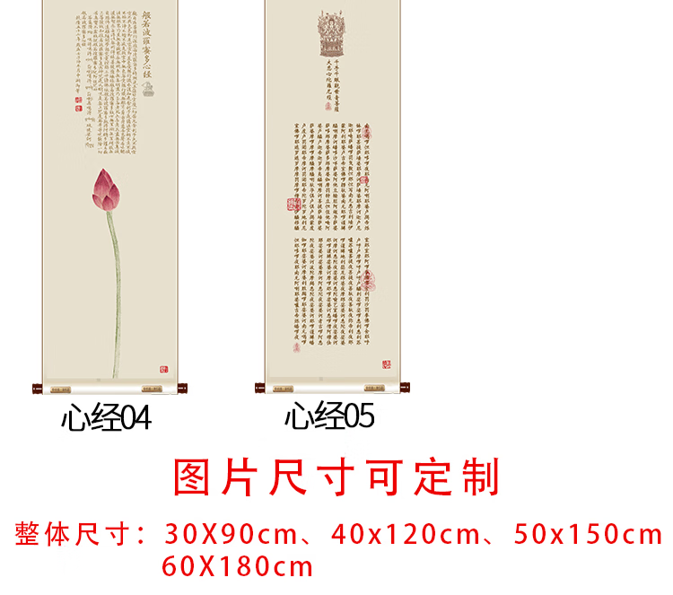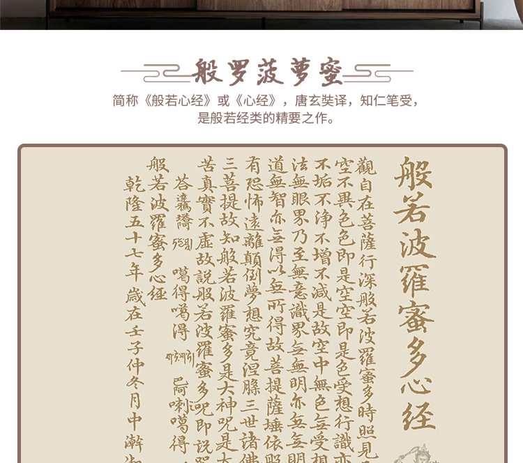 Treasure Hunt Prajnaparamita Heart Sutra Hanging Painting Calligraphy Scroll Painting New Chinese Decorative Painting Ink Painting Living Room Entrance Prajnaparamita Heart Sutra 01 Length 90* Width 30cm--Silk print and frame