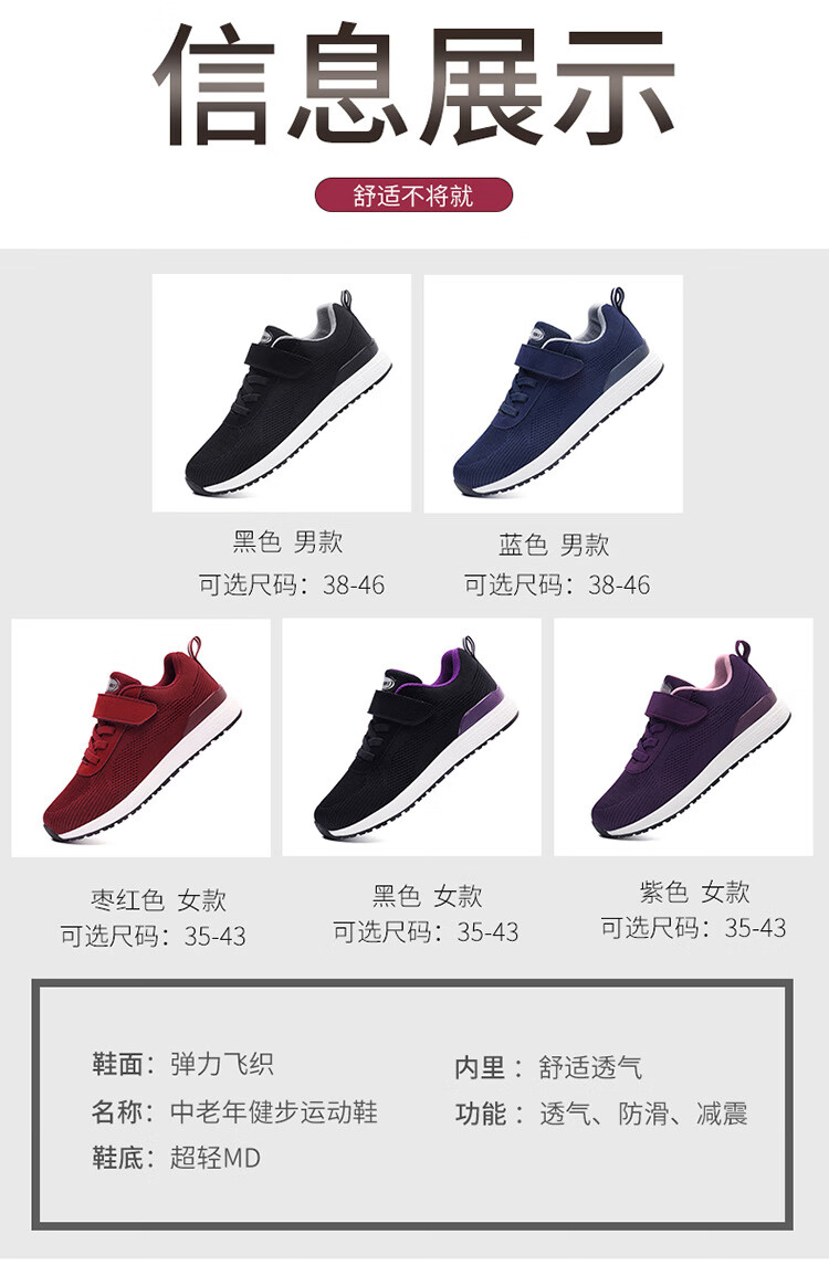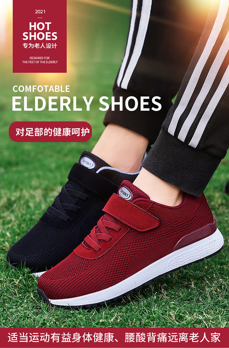 Velociraptor Guanhua Spring and Summer Elderly Shoes Women's Breathable Non-Slip Middle-aged and Elderly Walking Shoes Soft-soled Sports Shoes Large Size Shoes Casual Sports Shoes A2203 Women's Black 37