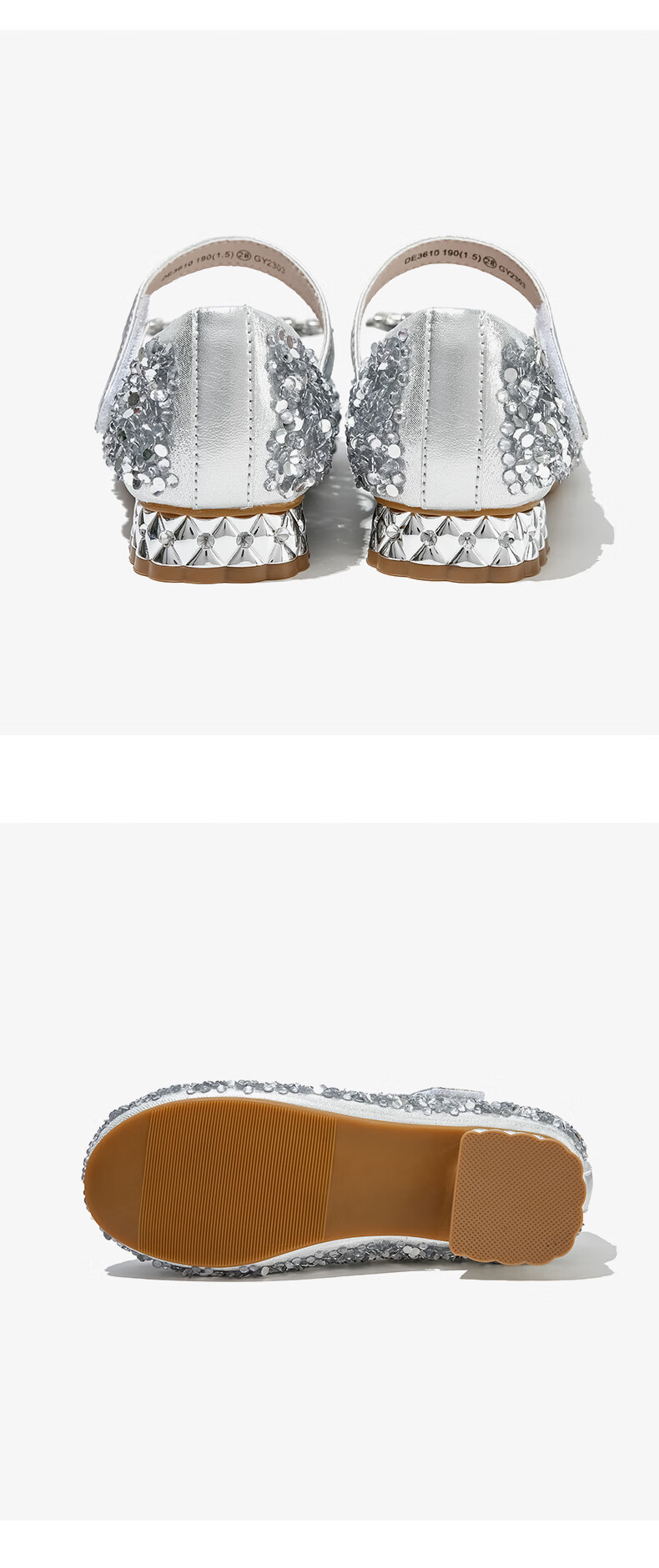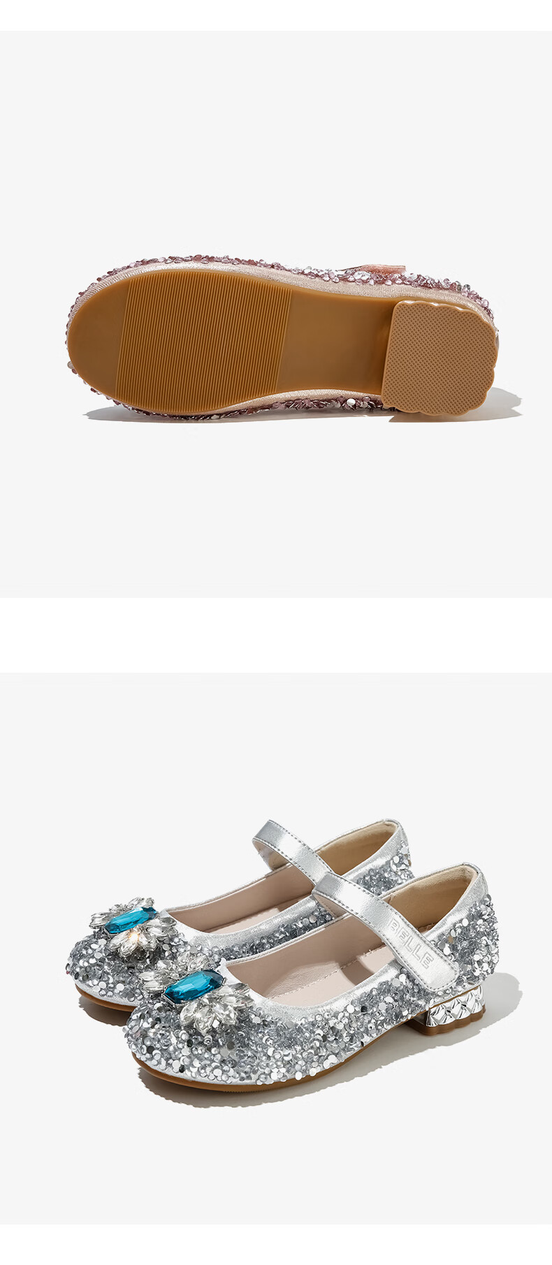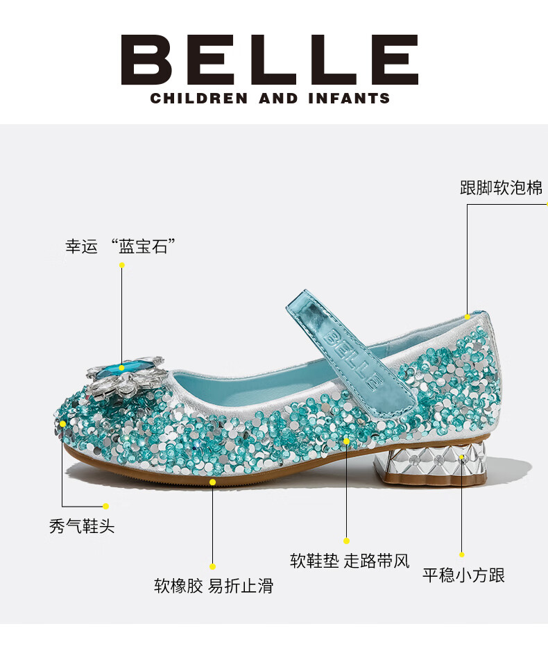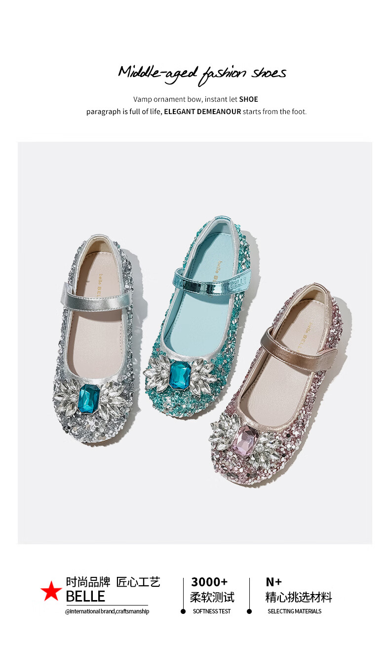 Belle Children's Shoes Little Girls Princess Shoes Summer New Fashion Shoes Girls Sequined Crystal Shoes Children's Leather Shoes Silver 29 Foot Length 18.1-18.7cm