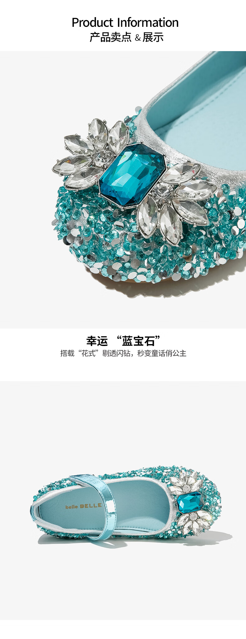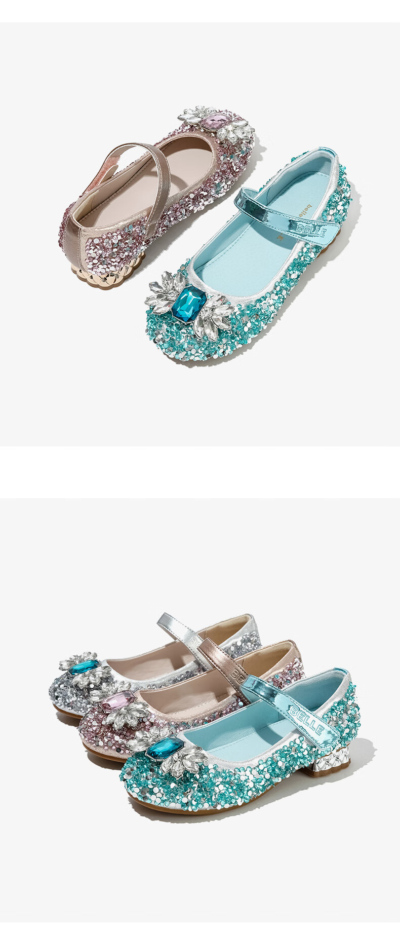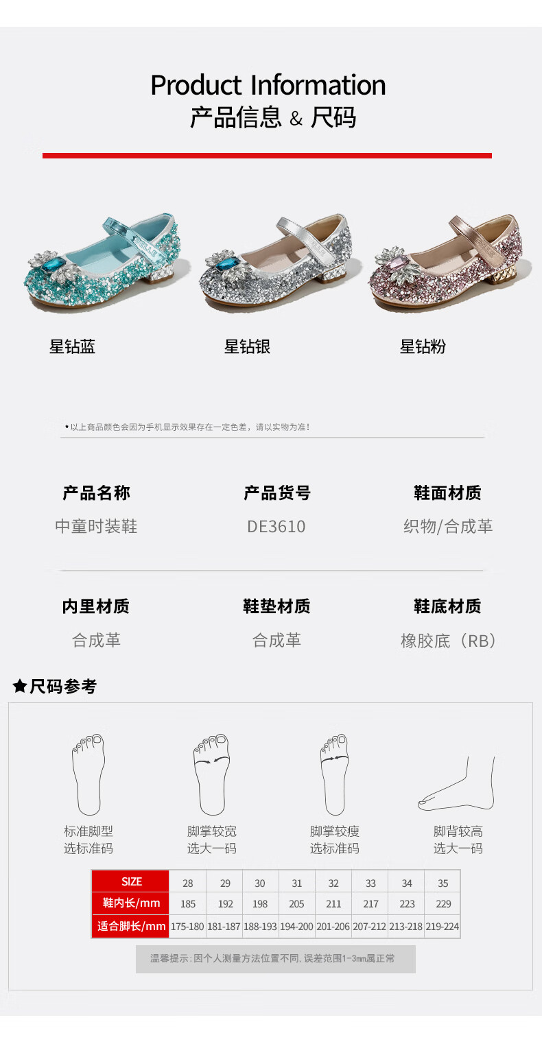 Belle Children's Shoes Little Girls Princess Shoes Summer New Fashion Shoes Girls Sequined Crystal Shoes Children's Leather Shoes Silver 29 Foot Length 18.1-18.7cm