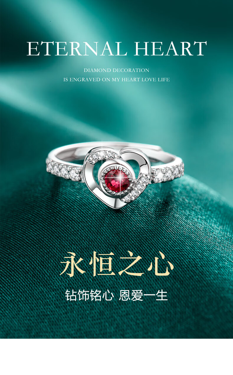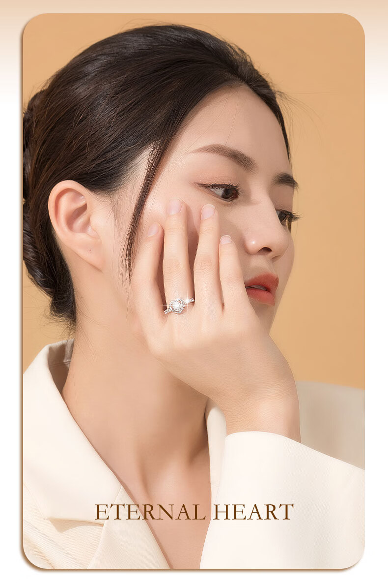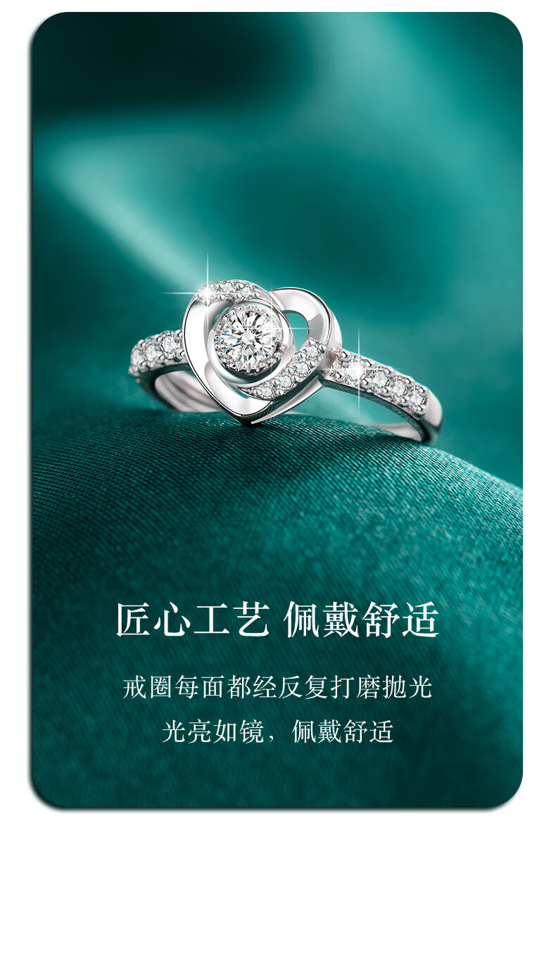 Ji Sifan Eternal Heart Diamond Ring Platinum Ring Female Wedding Proposal Real Diamond Valentine's Day Gift for Girlfriend and Wife Birthday Real Diamond (Main Diamond 20 Points) 15 Secondary Diamonds