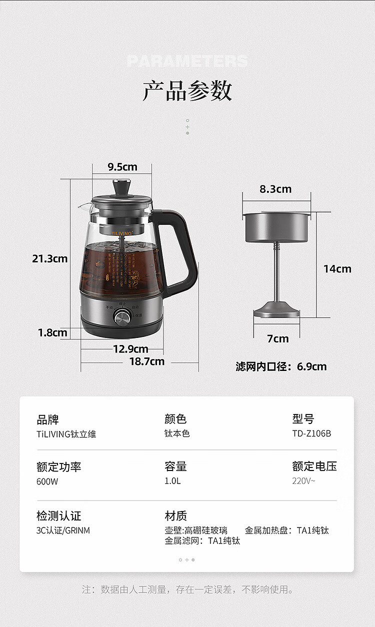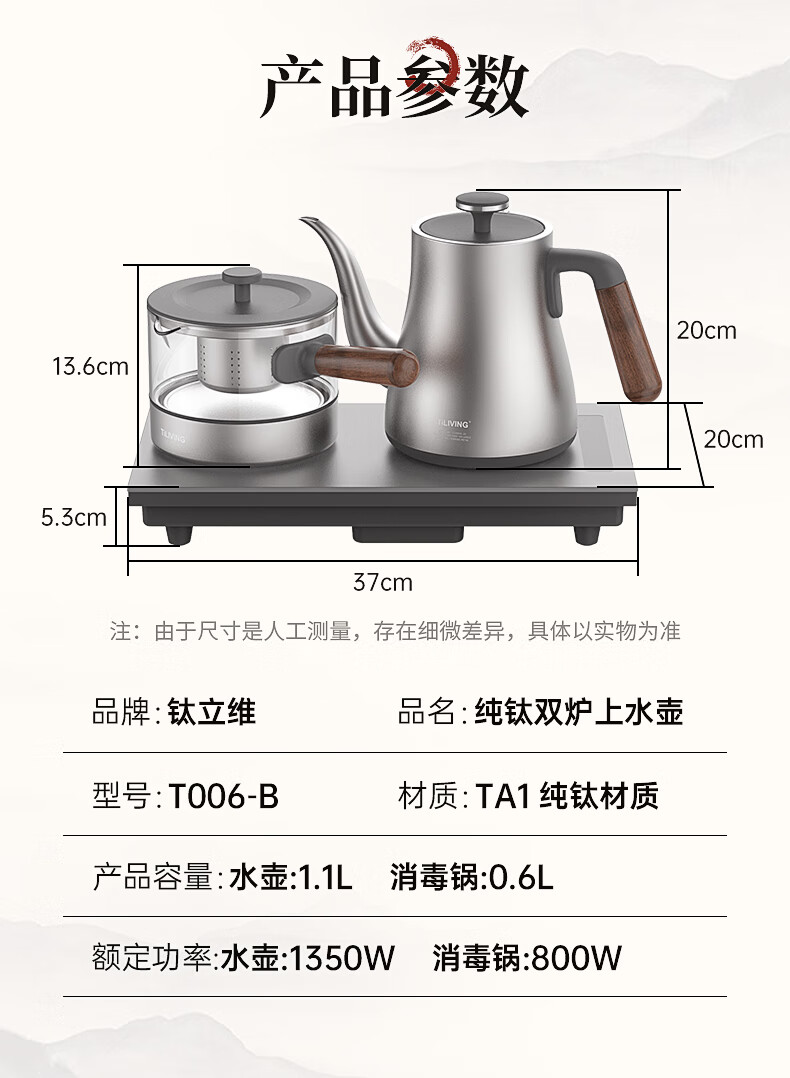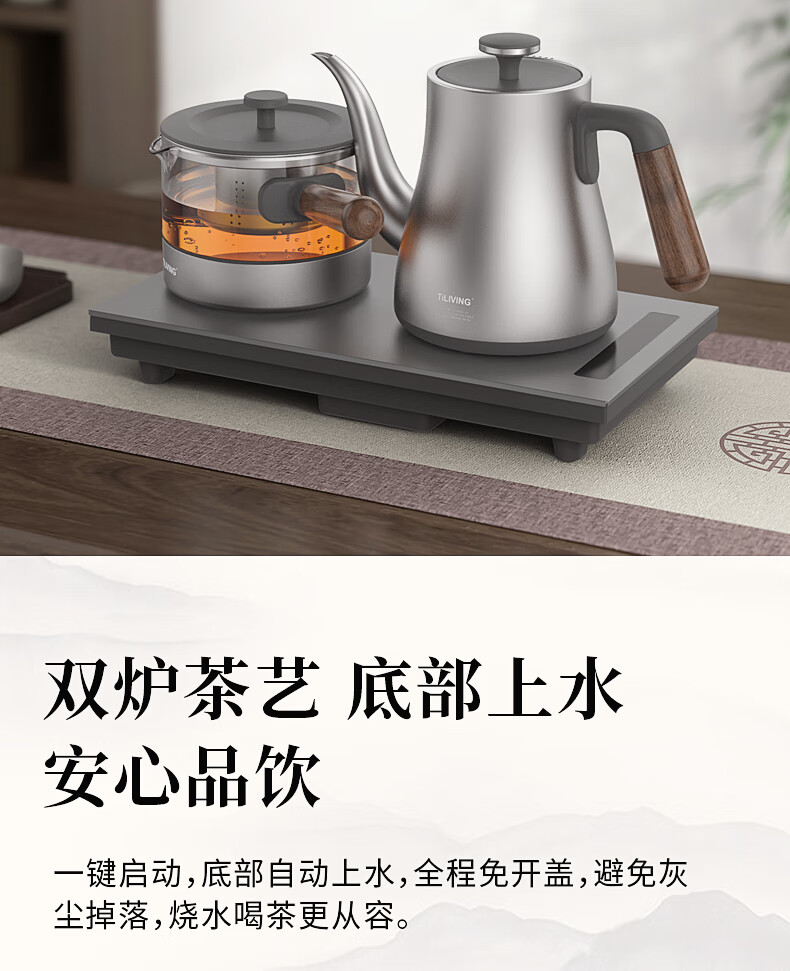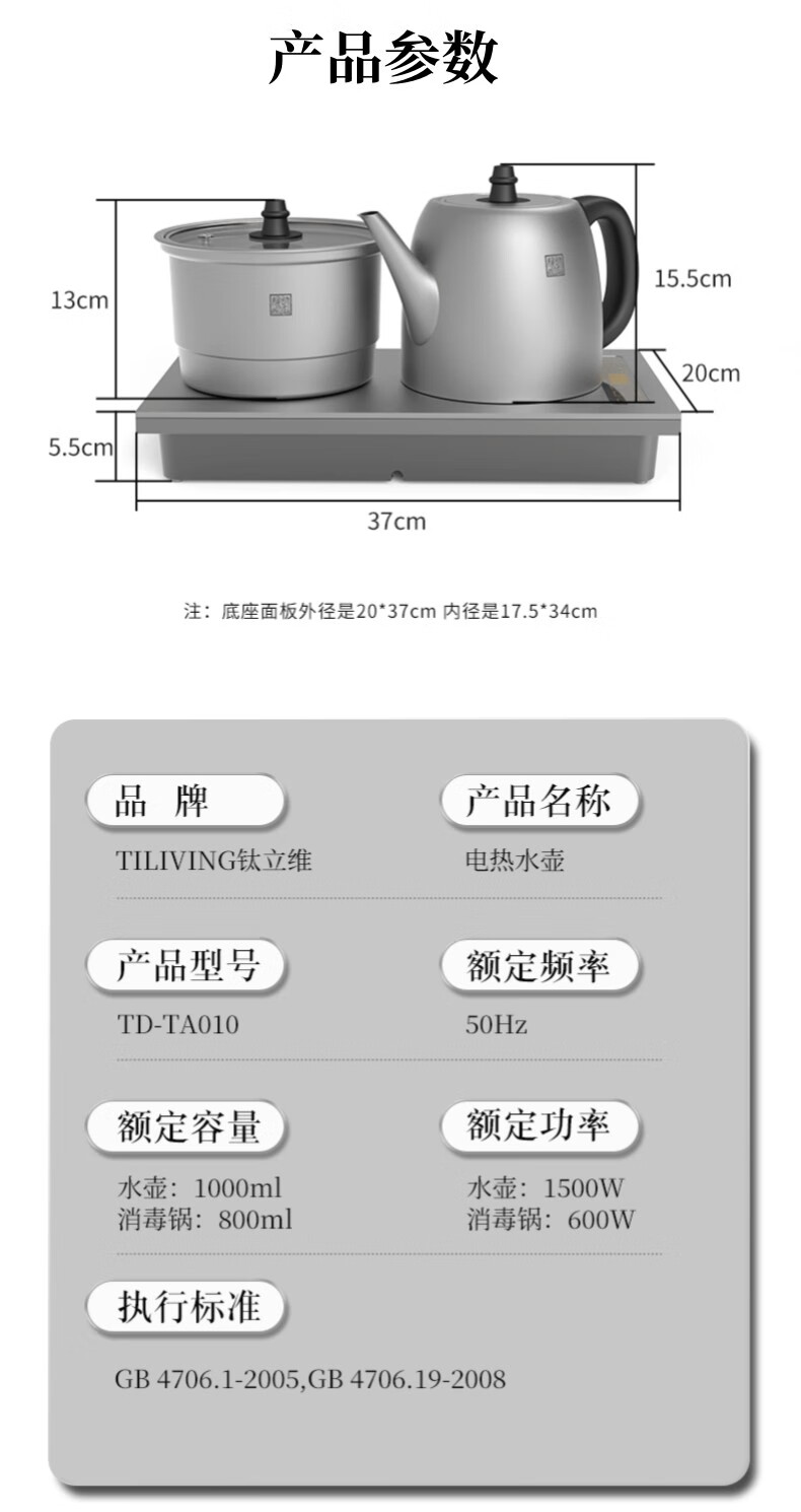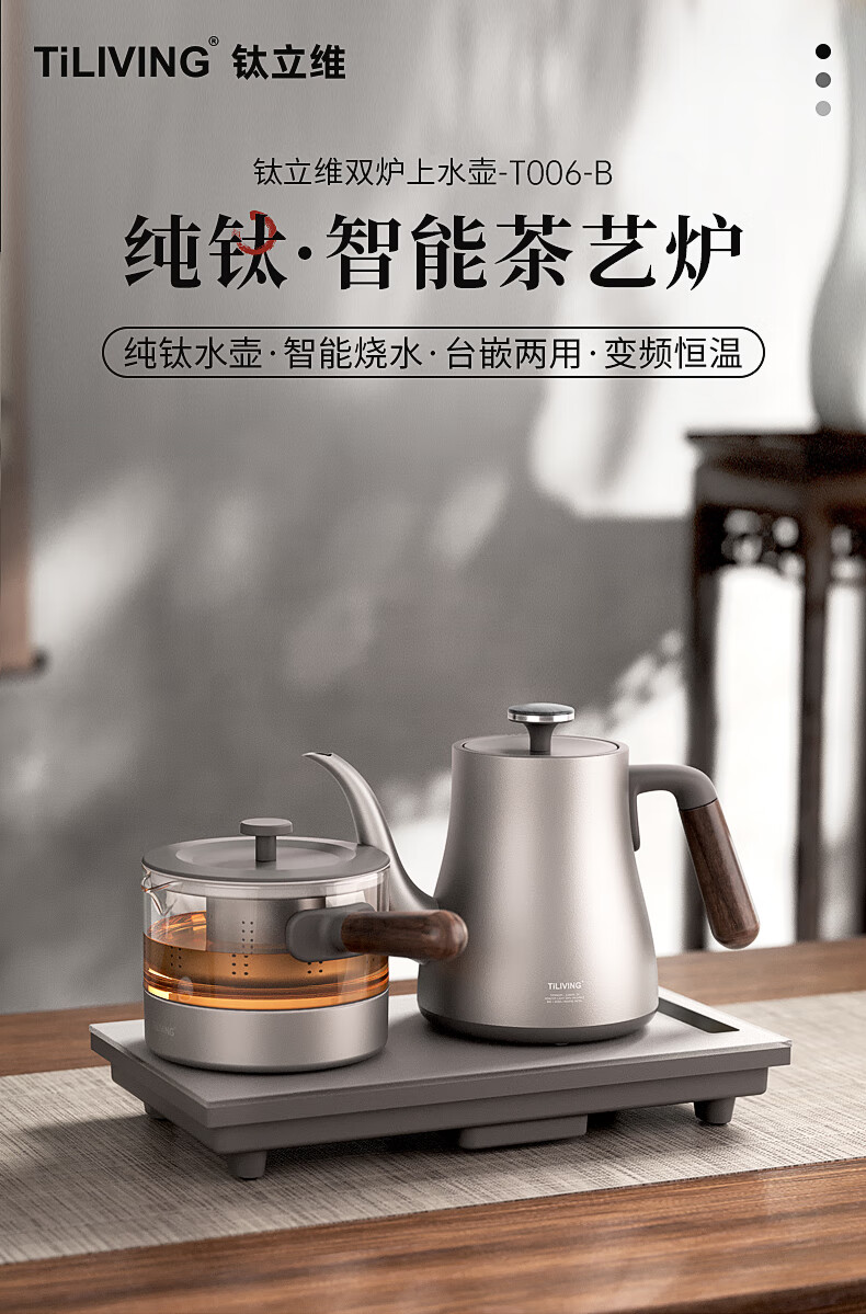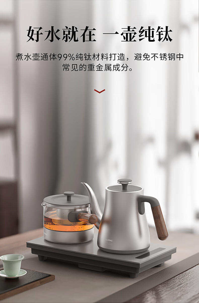 TILIVING (Titanium Liwei) Pure Titanium Fully Automatic Water Supply Electric Kettle Electric Tea Stove Tea Table Kettle Kettle Tea Maker Embedded Kettle 1.3L + Tea Kettle 1L