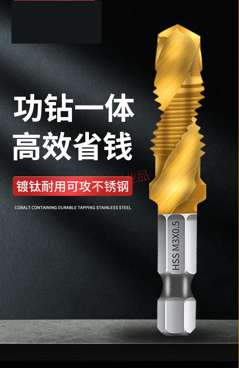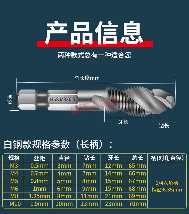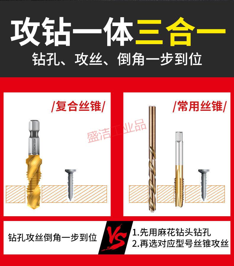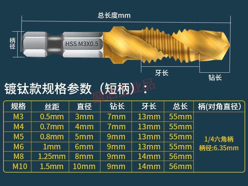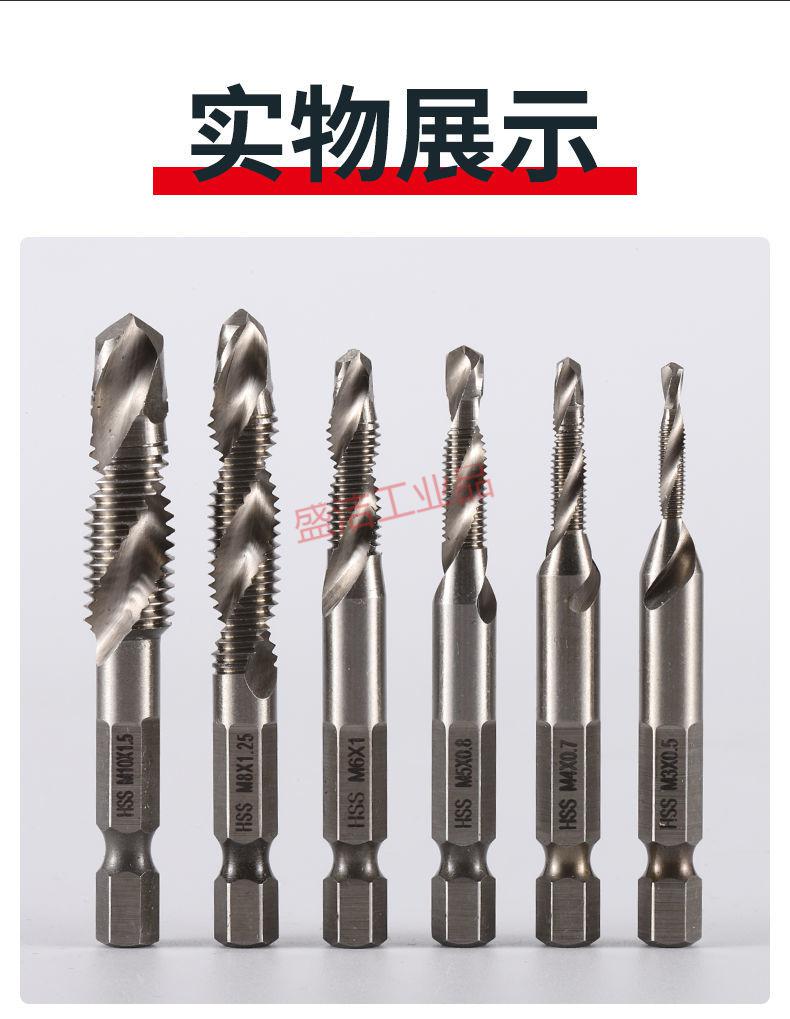 Tap self-tapping drill bit for drilling and tapping machine, thread opener for tapping hexagonal thread spiral set, titanium-plated 4341 composite tap M3+4+5+6+8+10 six pieces