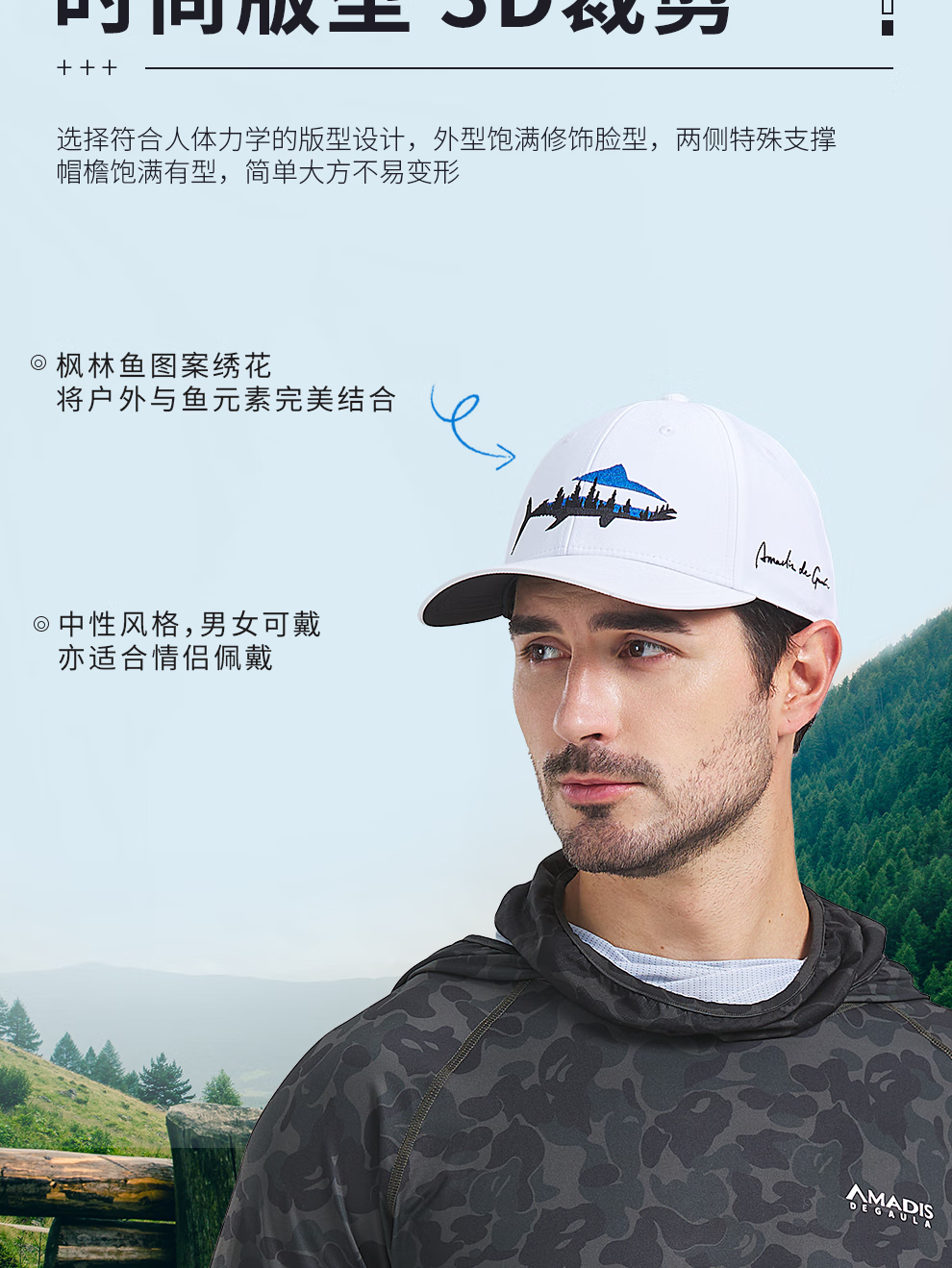 AMADIS DE GAULA sun protection hat men's fishing hat outdoor fishing visor breathable peaked hat summer ladies spring white one size