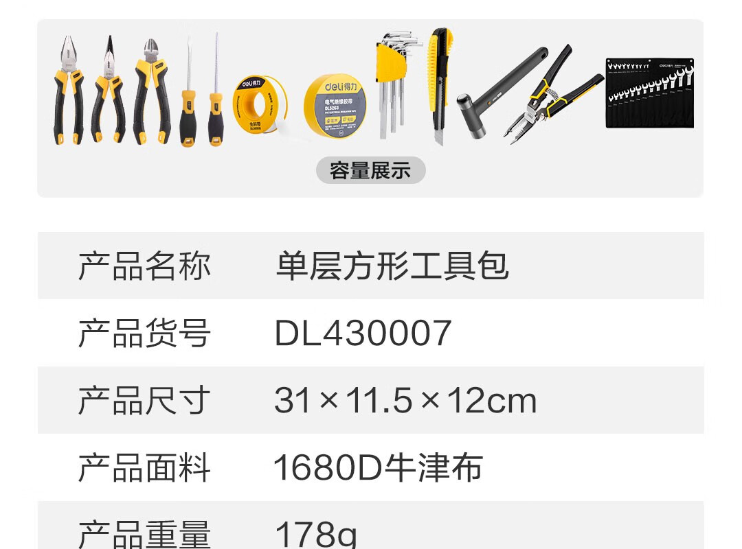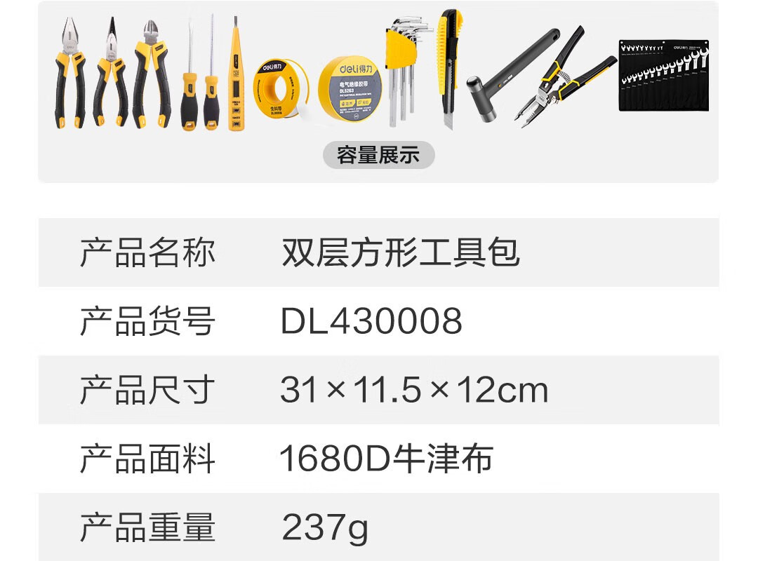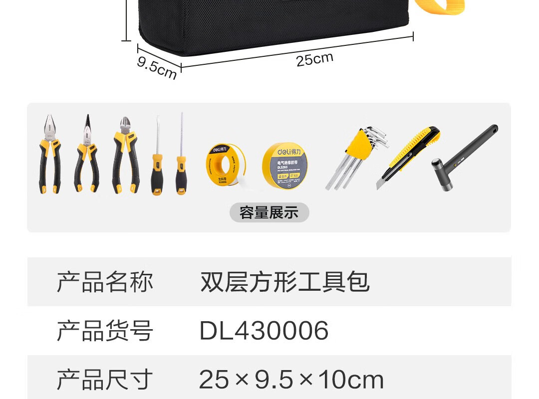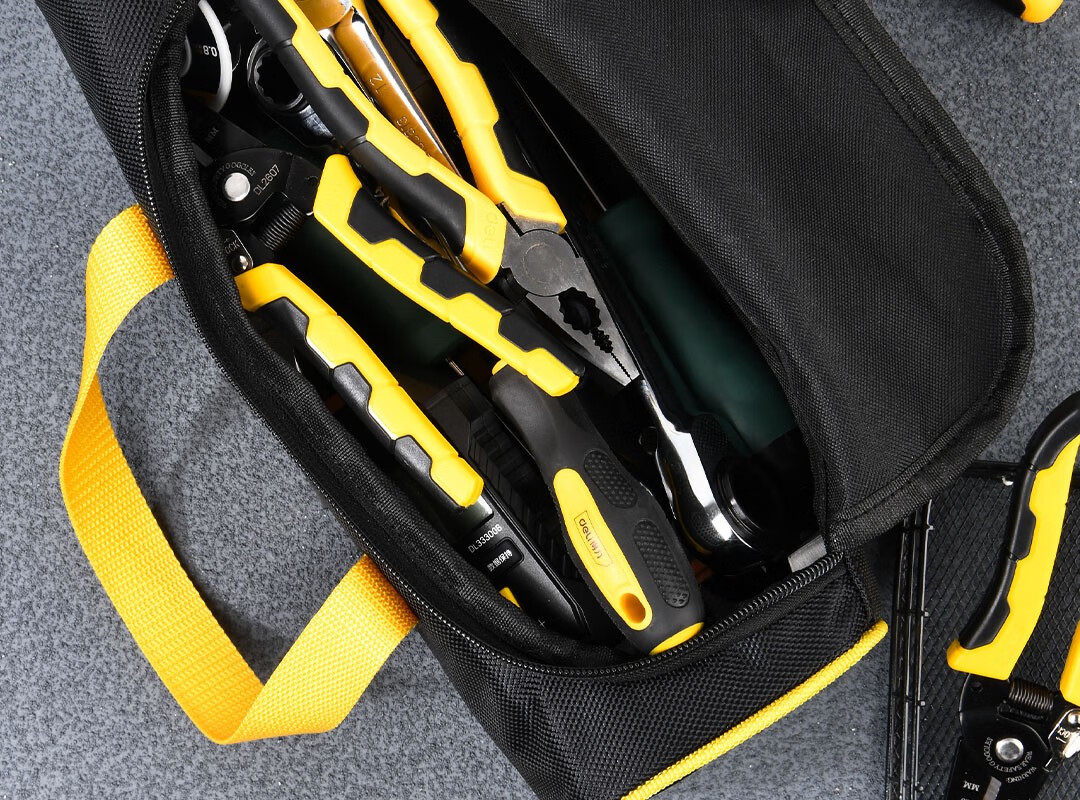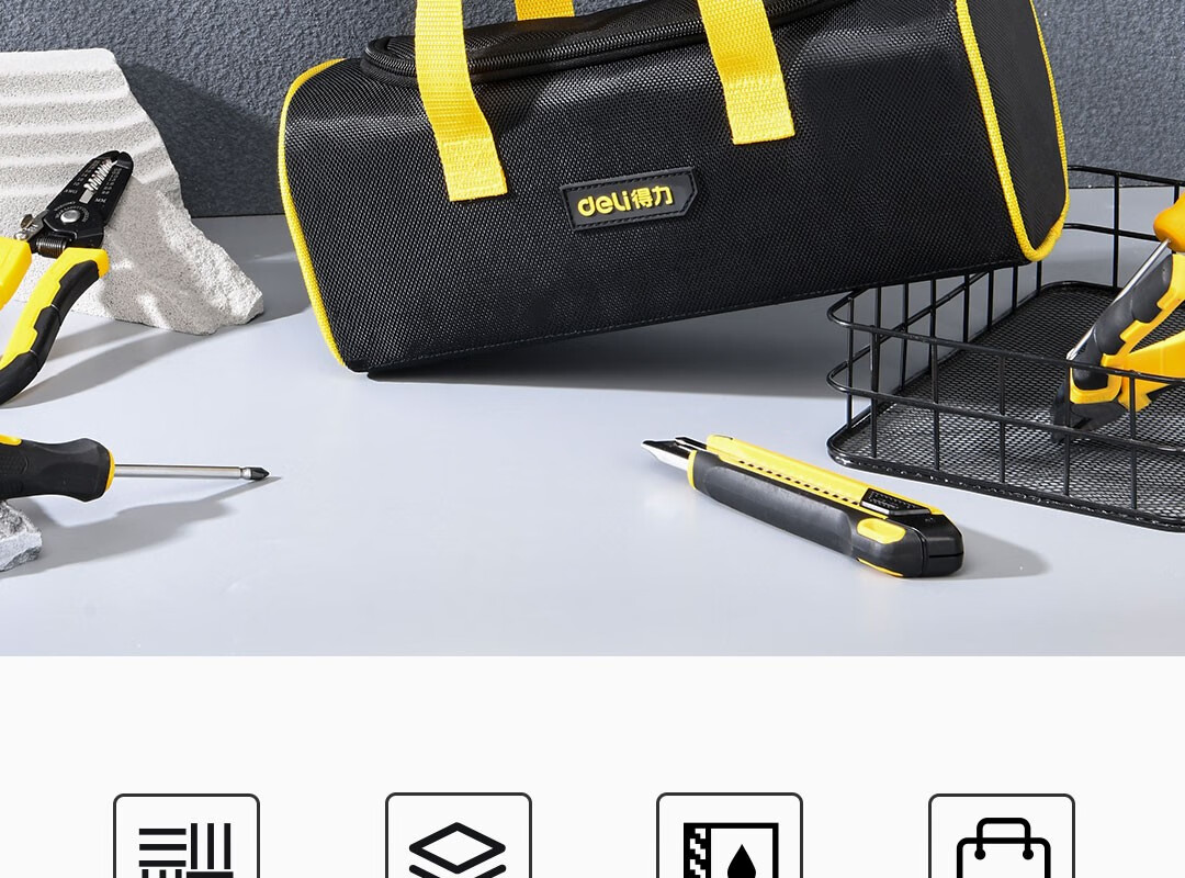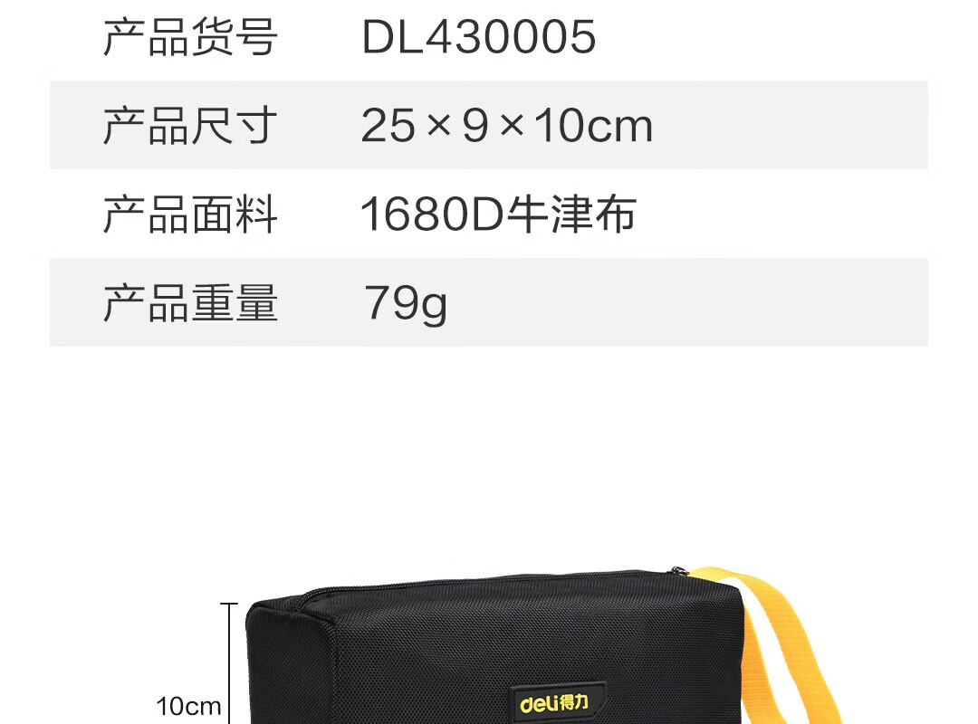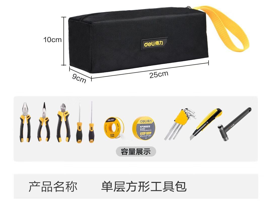 Deli thickened Oxford cloth square tool bag storage bag handbag portable repair electrician accessories bag large size 250*95*100mm double layer small square bag