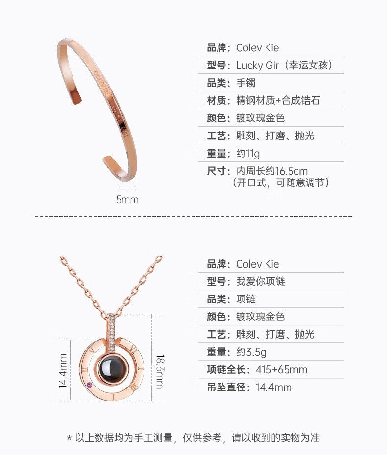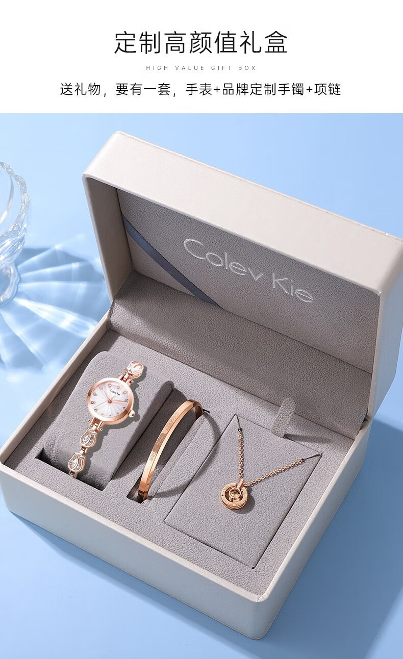 Colevkie birthday gift for girls, thoughtful, high-end and practical gift for girlfriend, wife, best friend, niche exquisite wedding anniversary, rose diamond (gift box + bracelet + necklace)