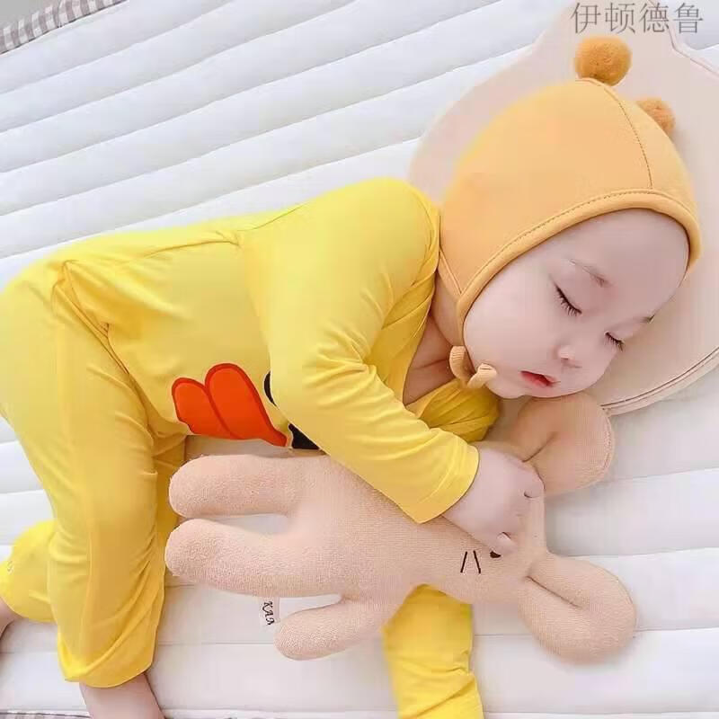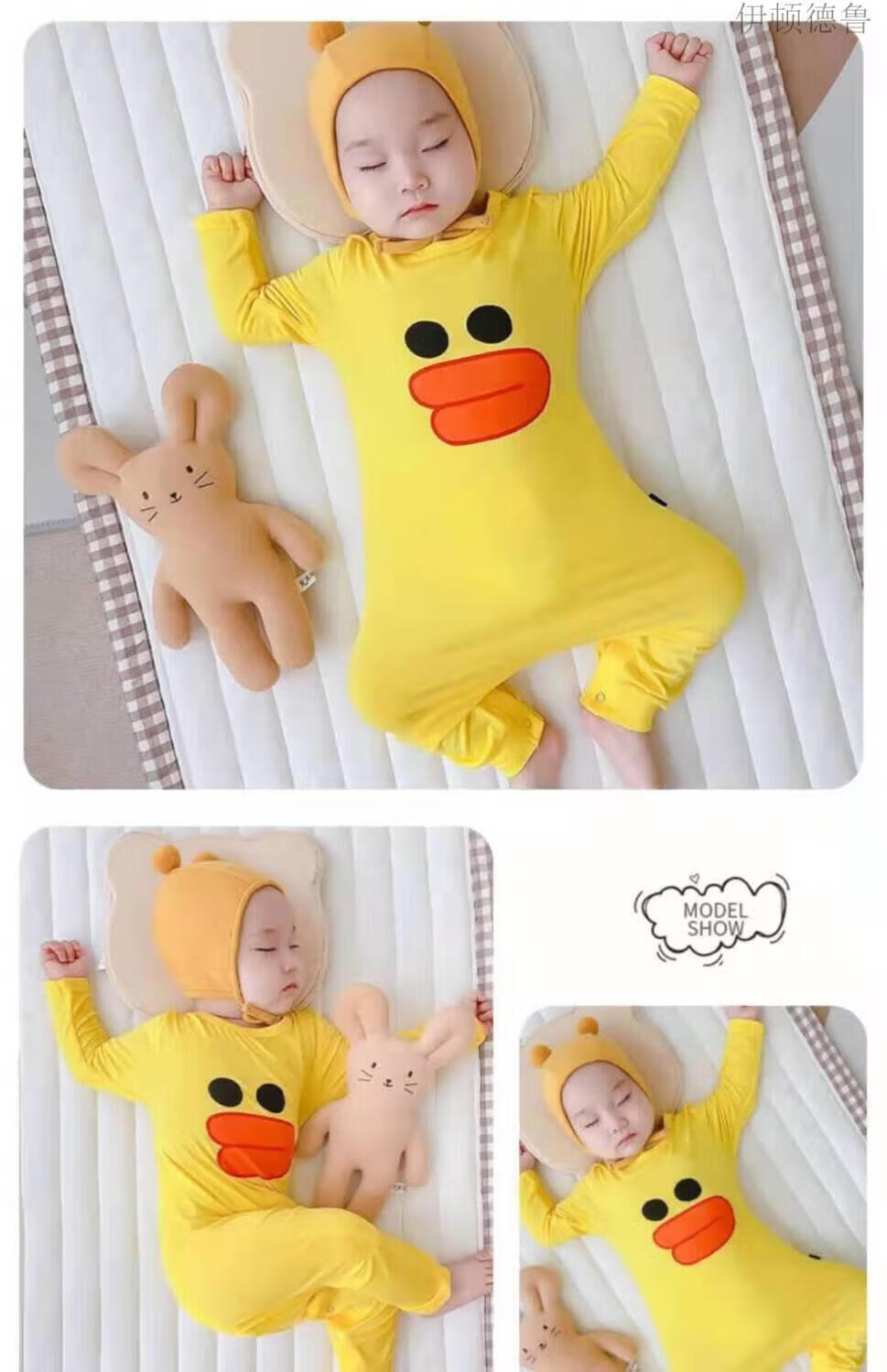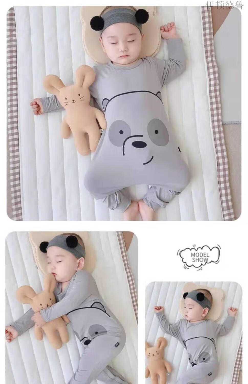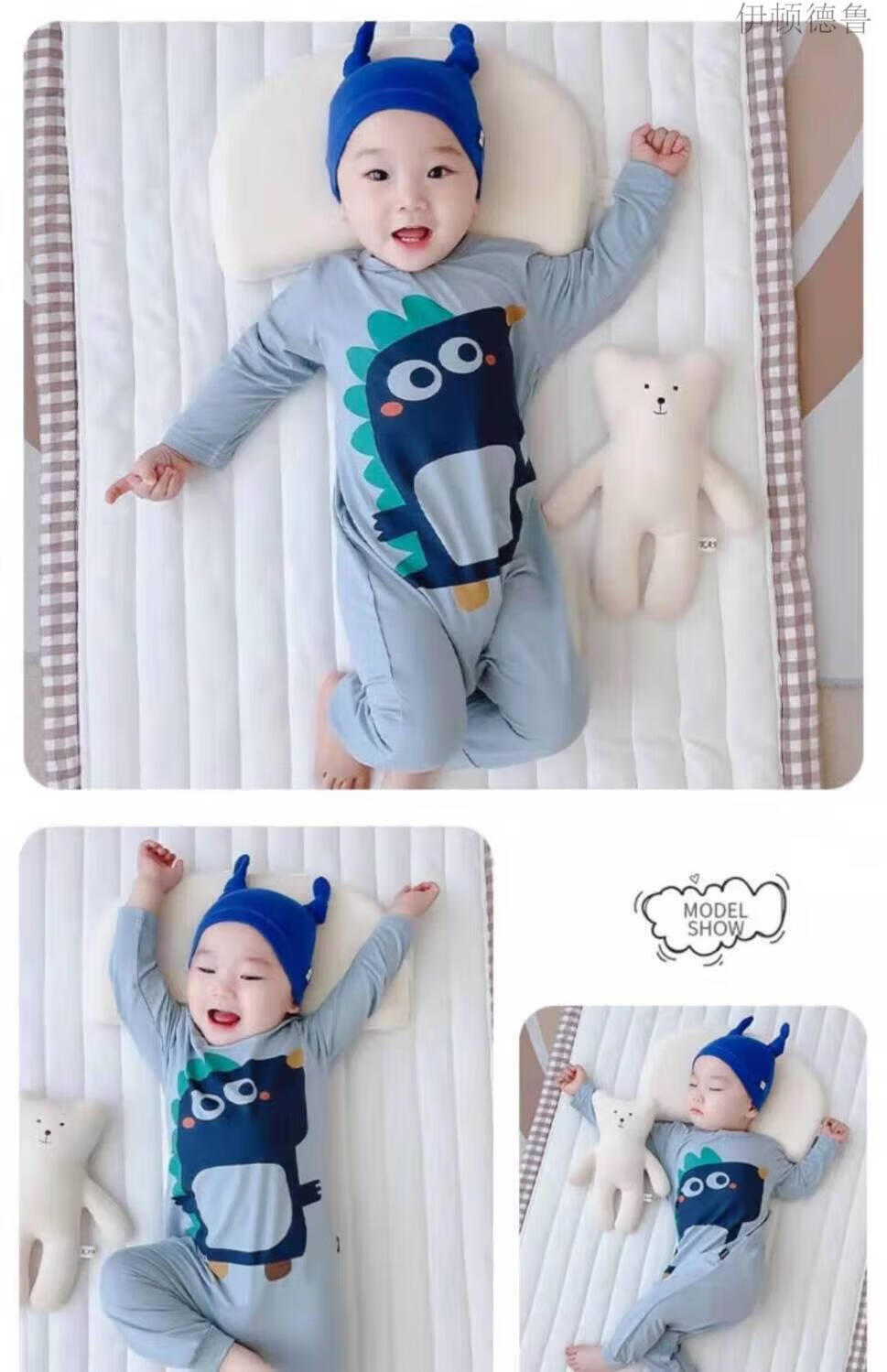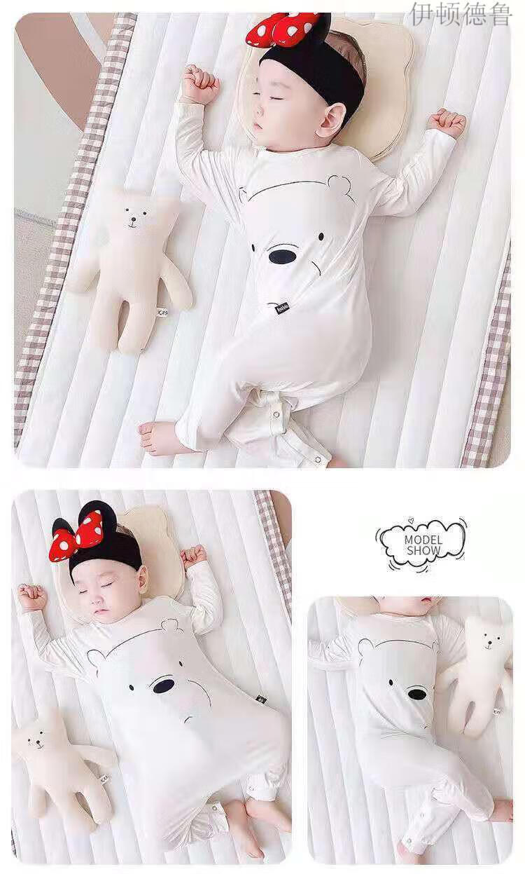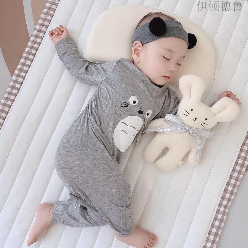 SKONWAT children's one-piece pajamas spring and autumn modal baby one-piece long-sleeved baby sleeping bag split-leg home clothes gray chinchilla long-sleeved style 90