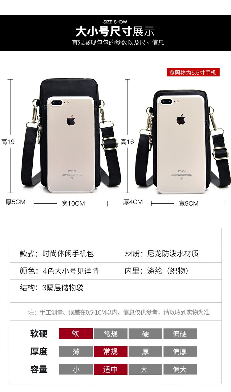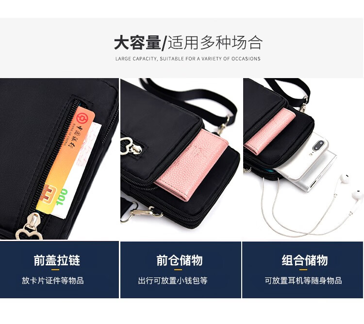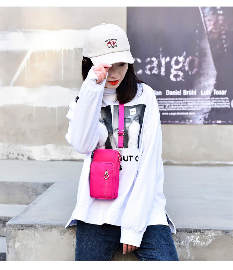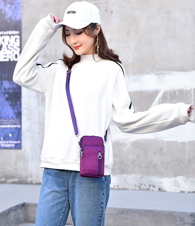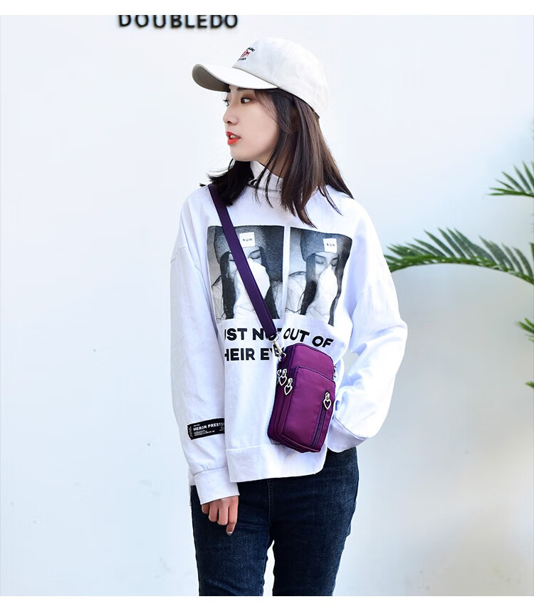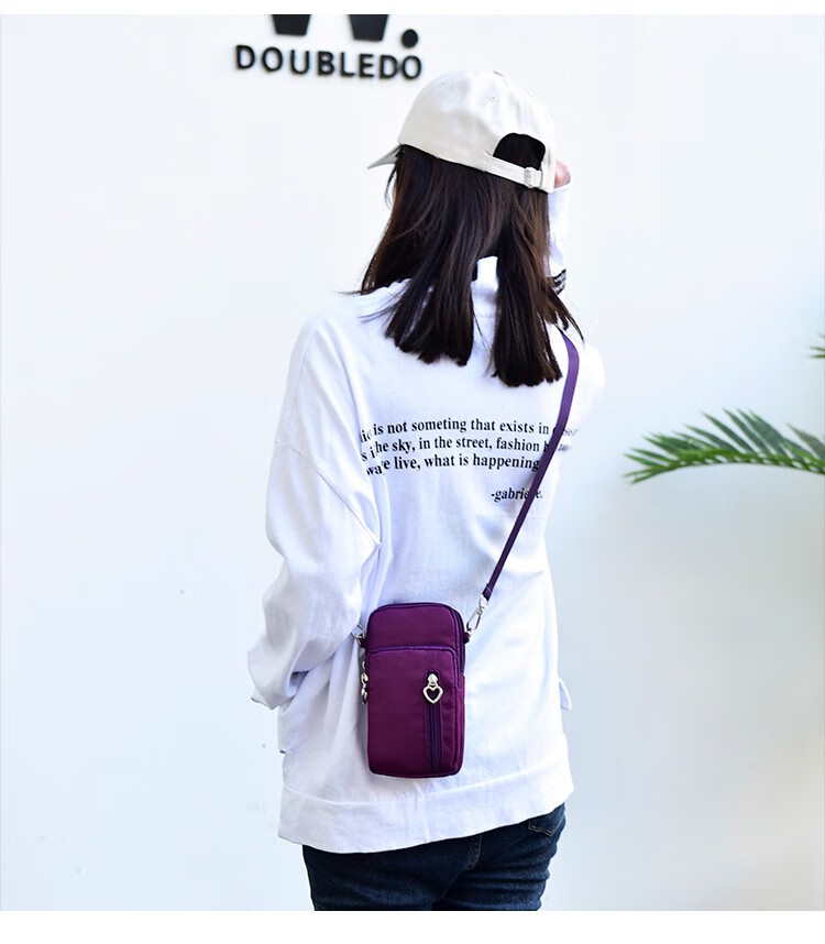 Ji Luosen portable mobile phone bag hand mini multi-layer crossbody bag hanging bag key arm bag hanging outdoor bag backpack purple (large size)
