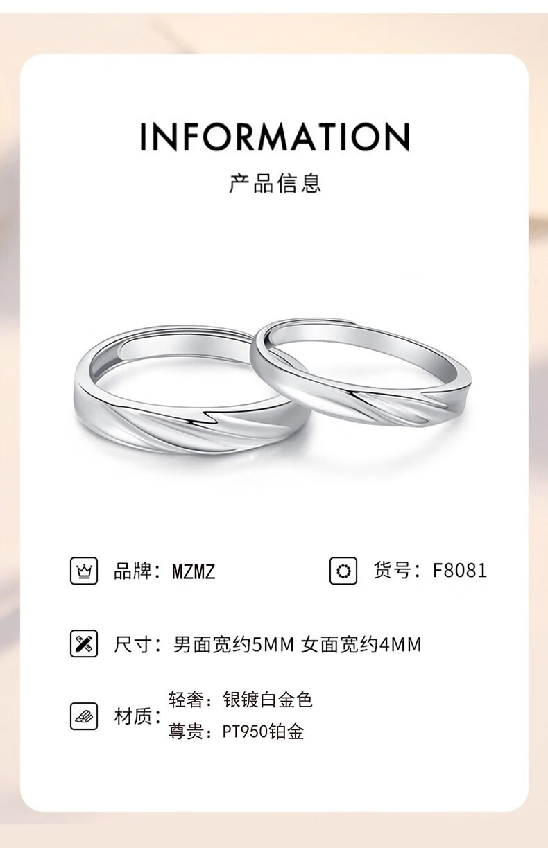 MZMZ platinum couple ring pt950 platinum knot engagement ring men's Valentine's Day birthday gift for girlfriend and wife light luxury - closed mouth/engraving custom shot here