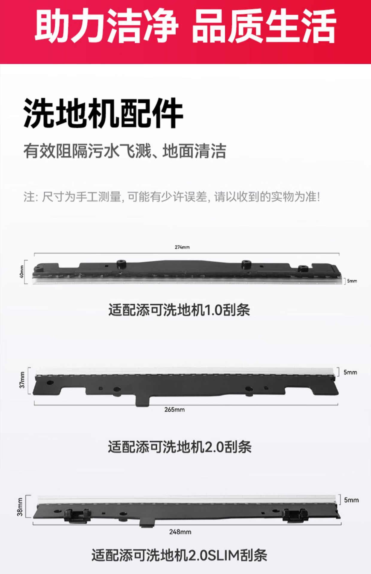 Langshi aplica Timco Fuwan piso lavadora tira limpiadora 1.0 generación 2.0 segunda generación cepillo de goma delgado tanque de agua limpia cubierta del tanque de aguas residuales accesorios consumibles domésticos Timco 2.0LCDLED tira limpiadora 1 (original) no incluye rodillos