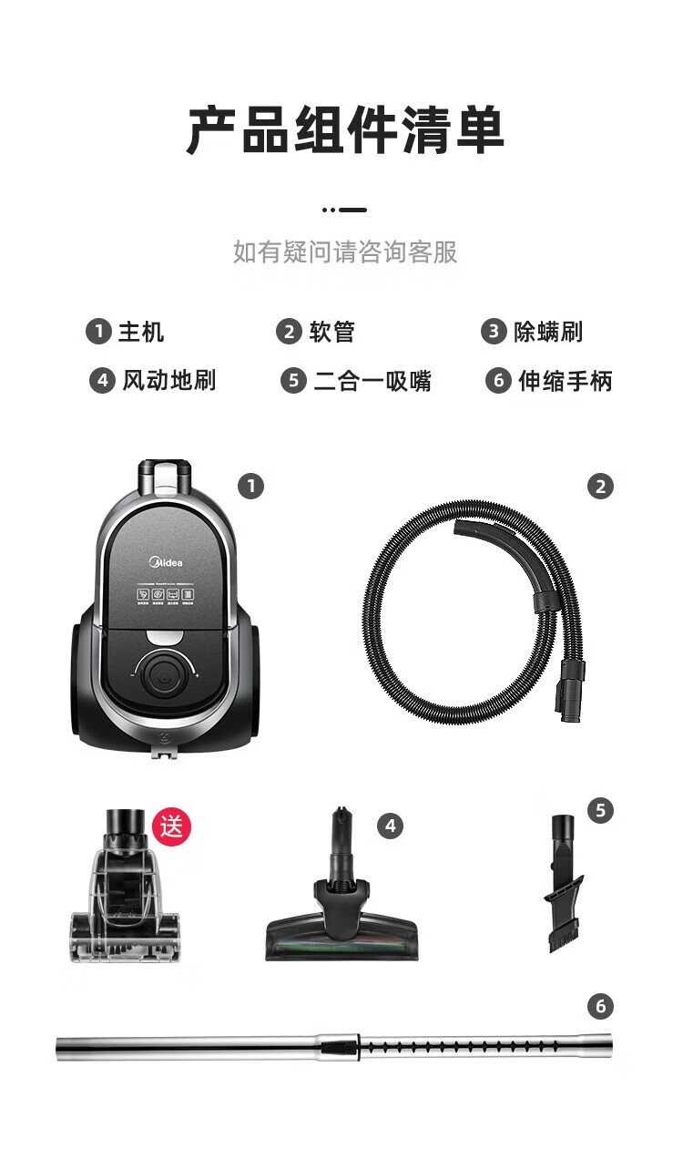 Midea vacuum cleaner household wired handheld horizontal large suction multi-purpose carpet cleaning machine high-power dust removal and mite removal C7 powerful large suction