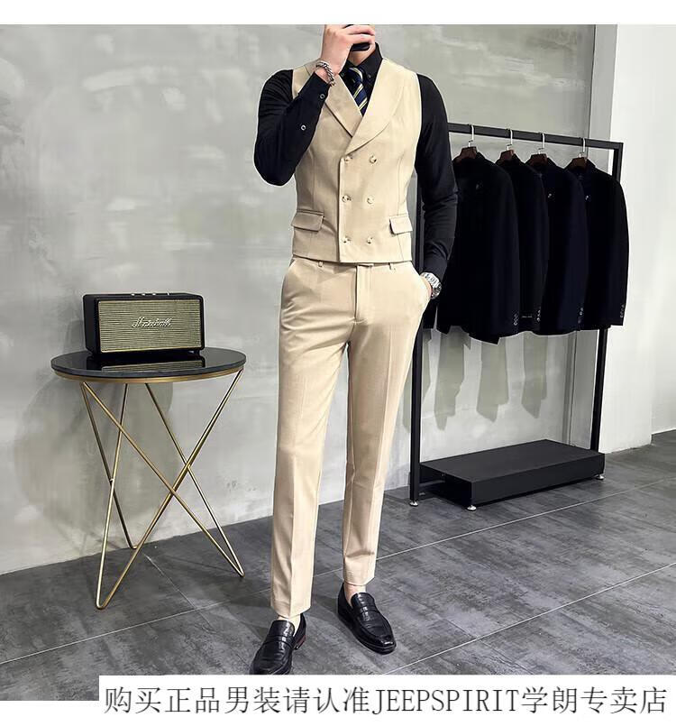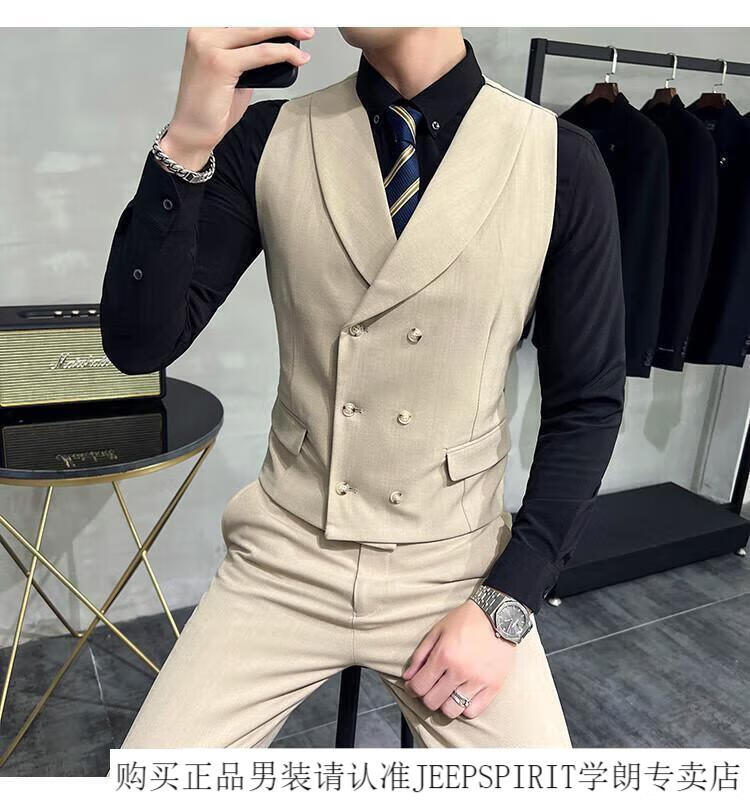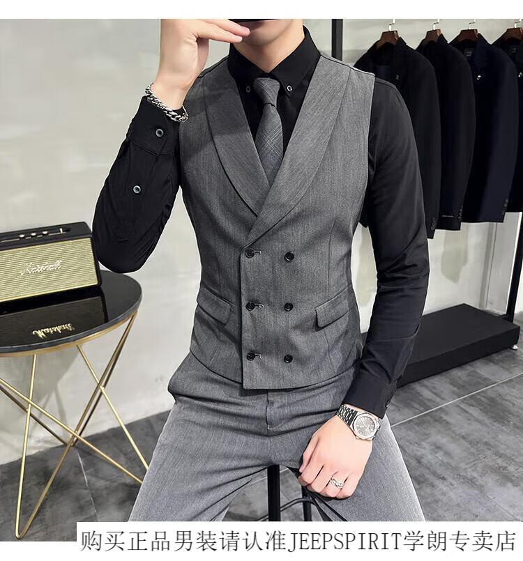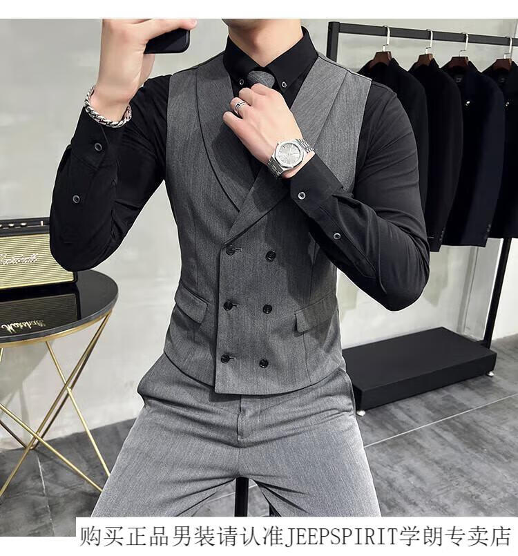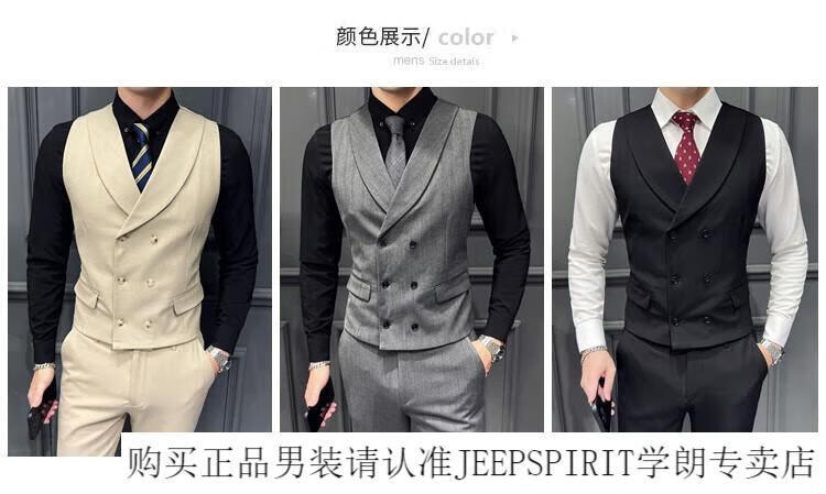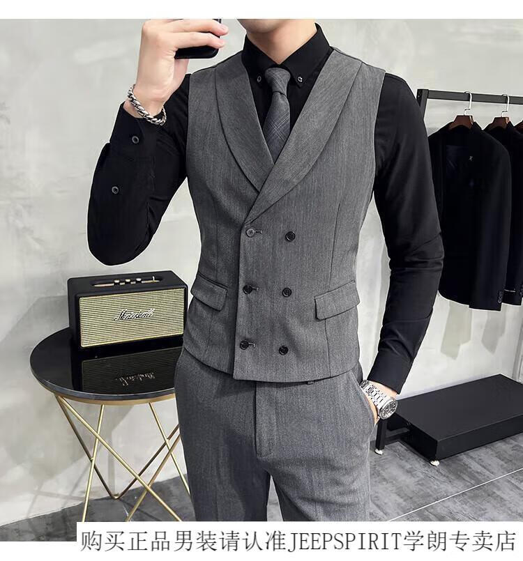 JEEP SPIRIT herringbone suit vest suit men's casual business formal elastic vest British handsome work clothes gray single vest + bow tie M 48