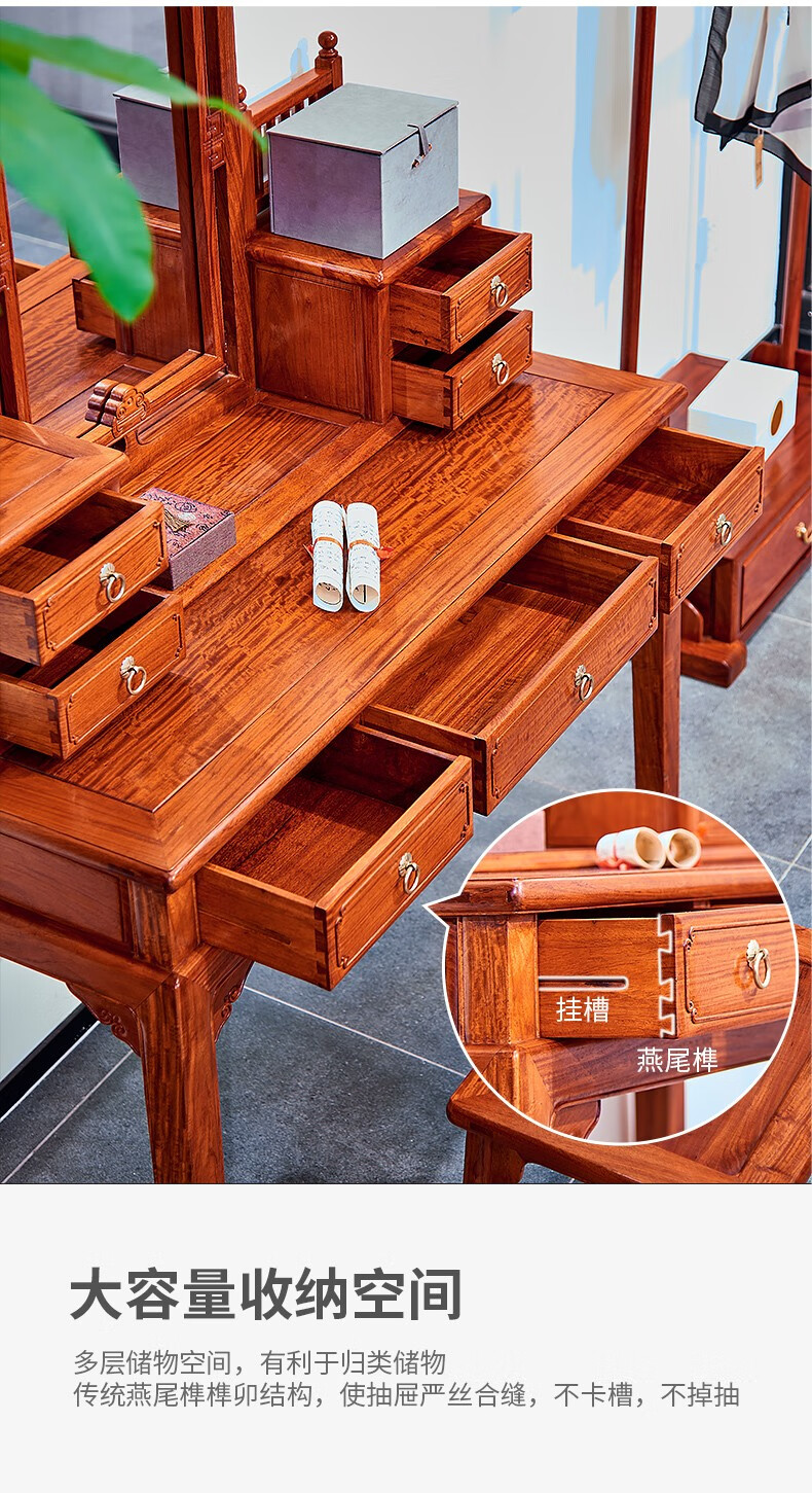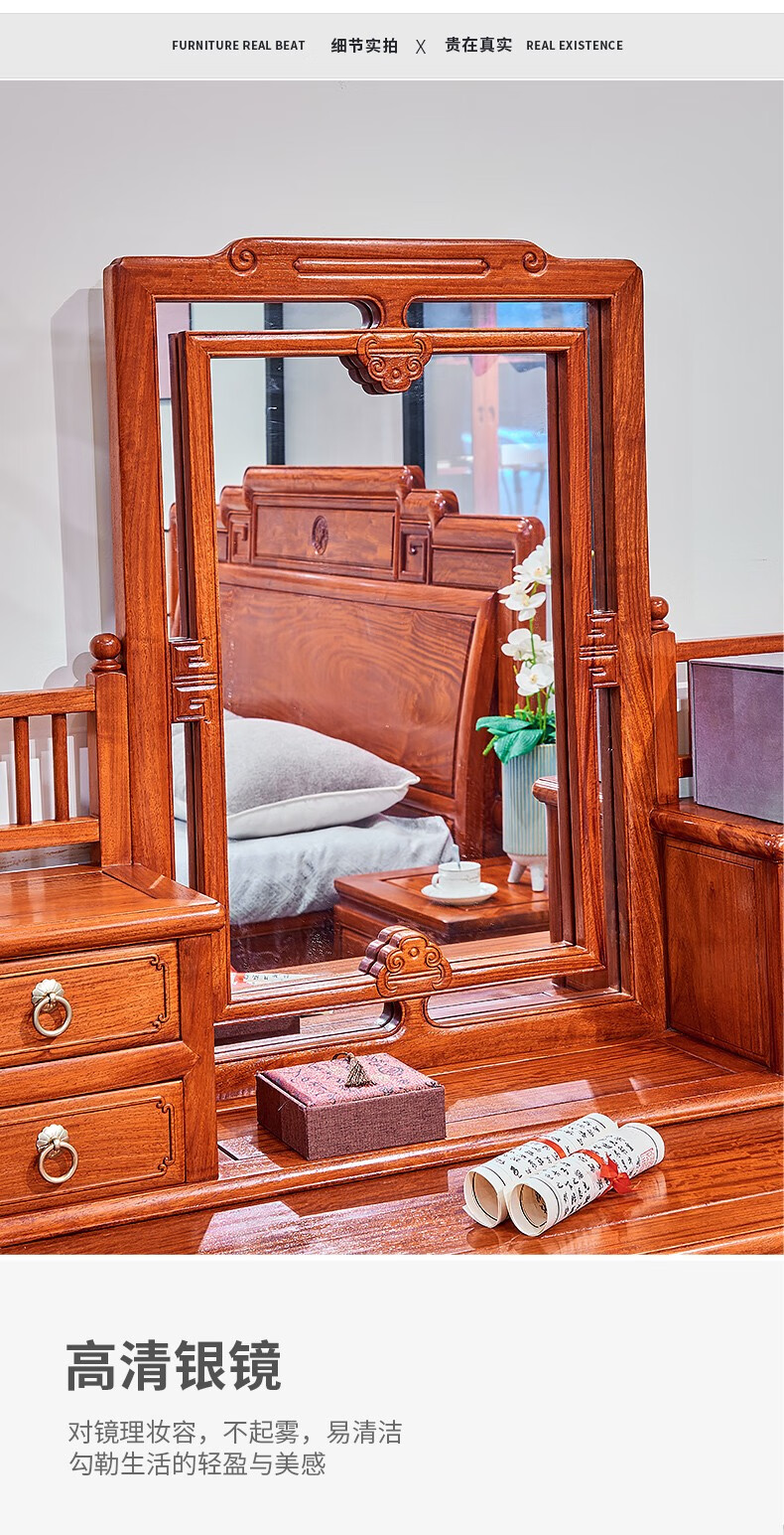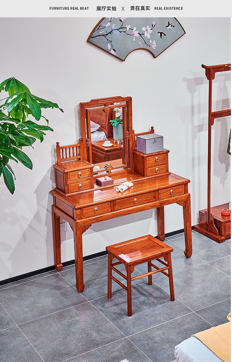 Tiger Master mahogany furniture Burmese rosewood (scientific name: Big Fruit Rosewood) bedroom solid wood dressing table combination dressing table Chinese style dressing table dressing table with stools