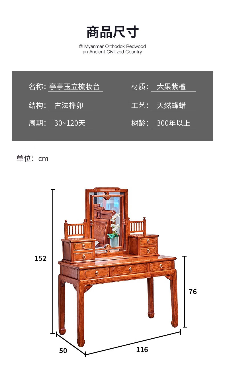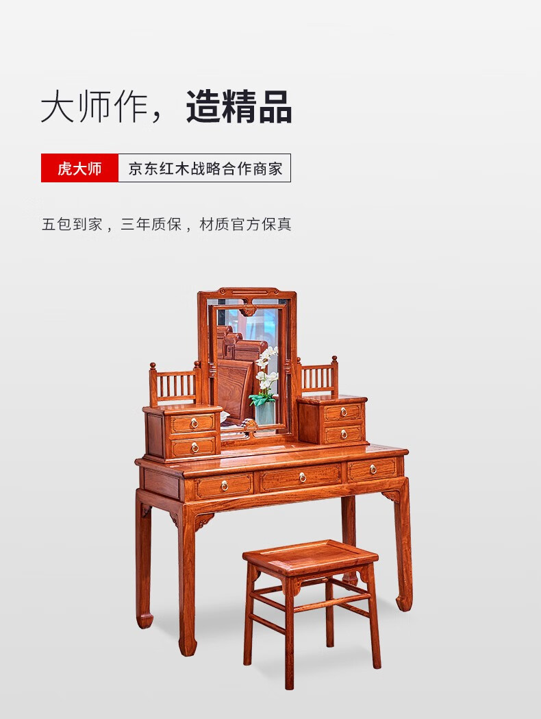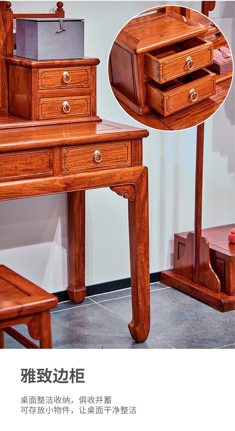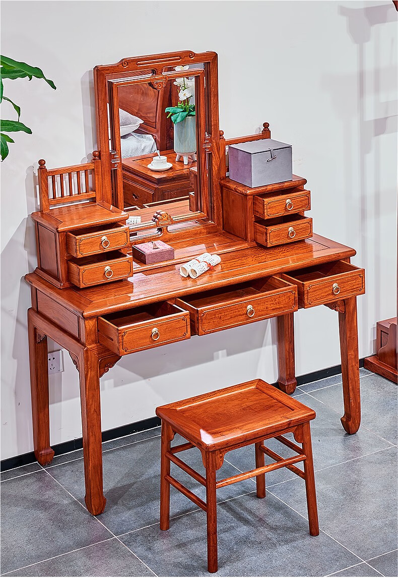 Tiger Master mahogany furniture Burmese rosewood (scientific name: Big Fruit Rosewood) bedroom solid wood dressing table combination dressing table Chinese style dressing table dressing table with stools
