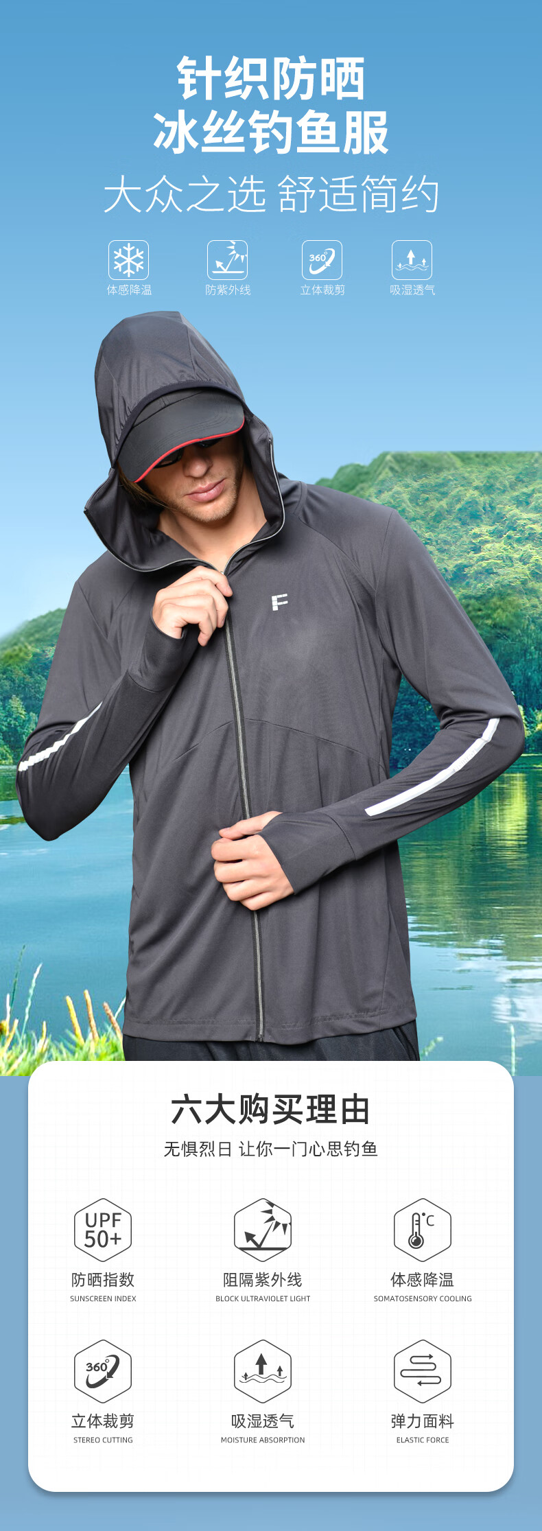 Wind Hunter fishing clothing sun protection clothing men's summer breathable lure fishing sea fishing clothing ultra-thin ice silk cool breathable mosquito repellent carbon gray gray power top L