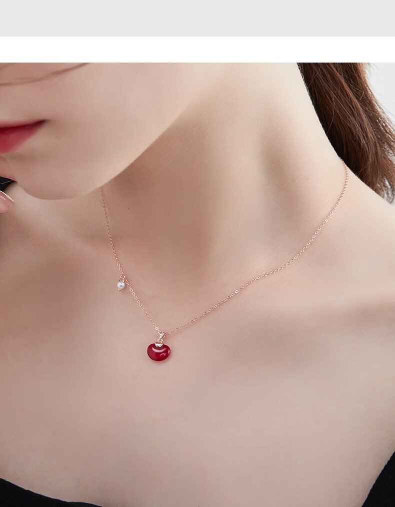 Mck Red Acacia Bean Necklace Women's 925 Silver Necklace Rose Gold Clavicle Chain Girlfriend Chinese Valentine's Day Gift