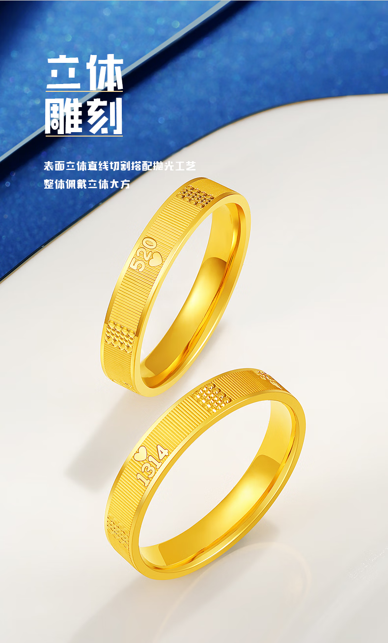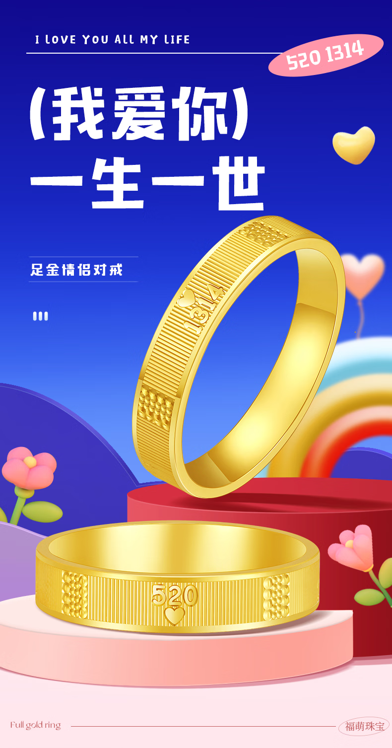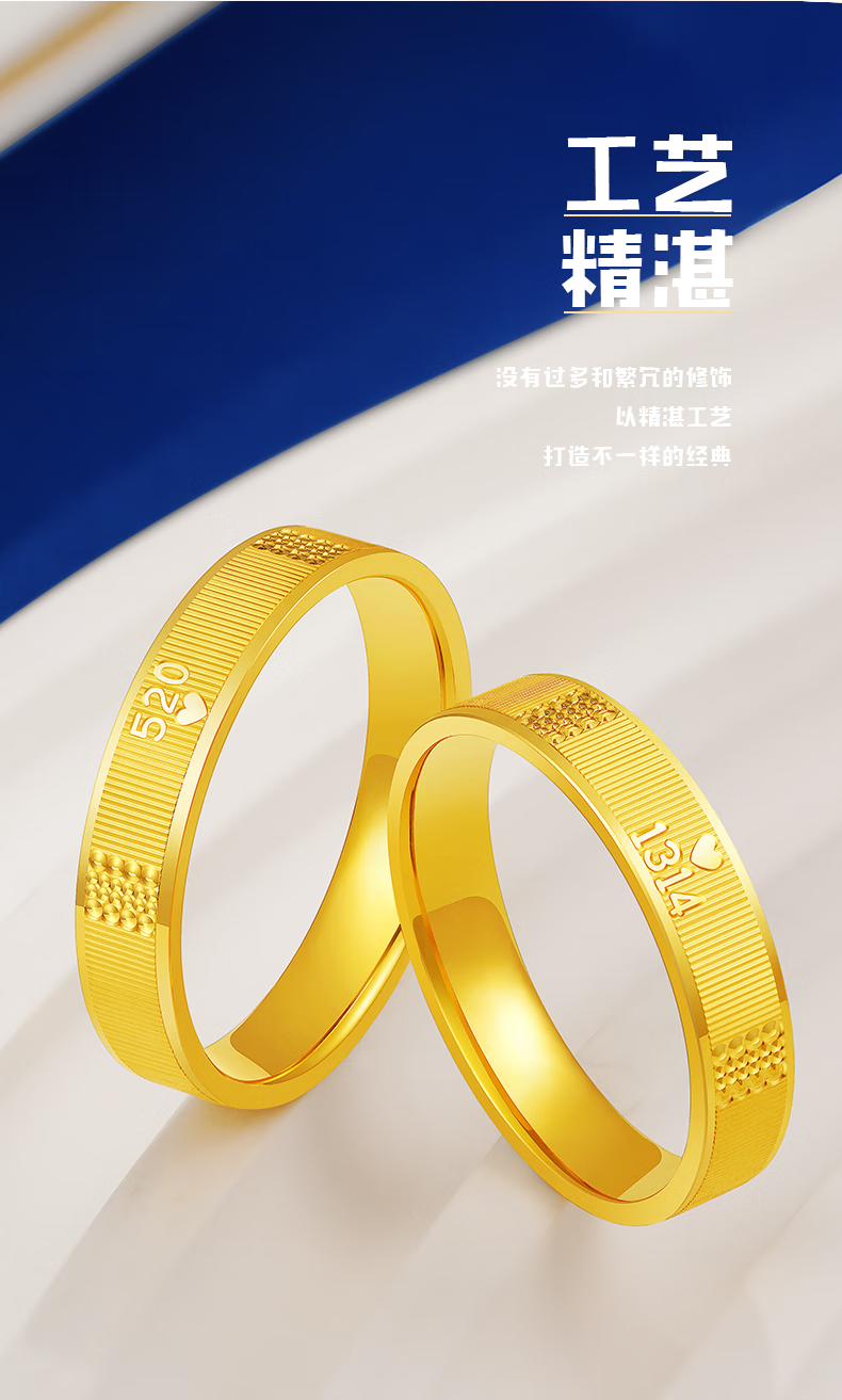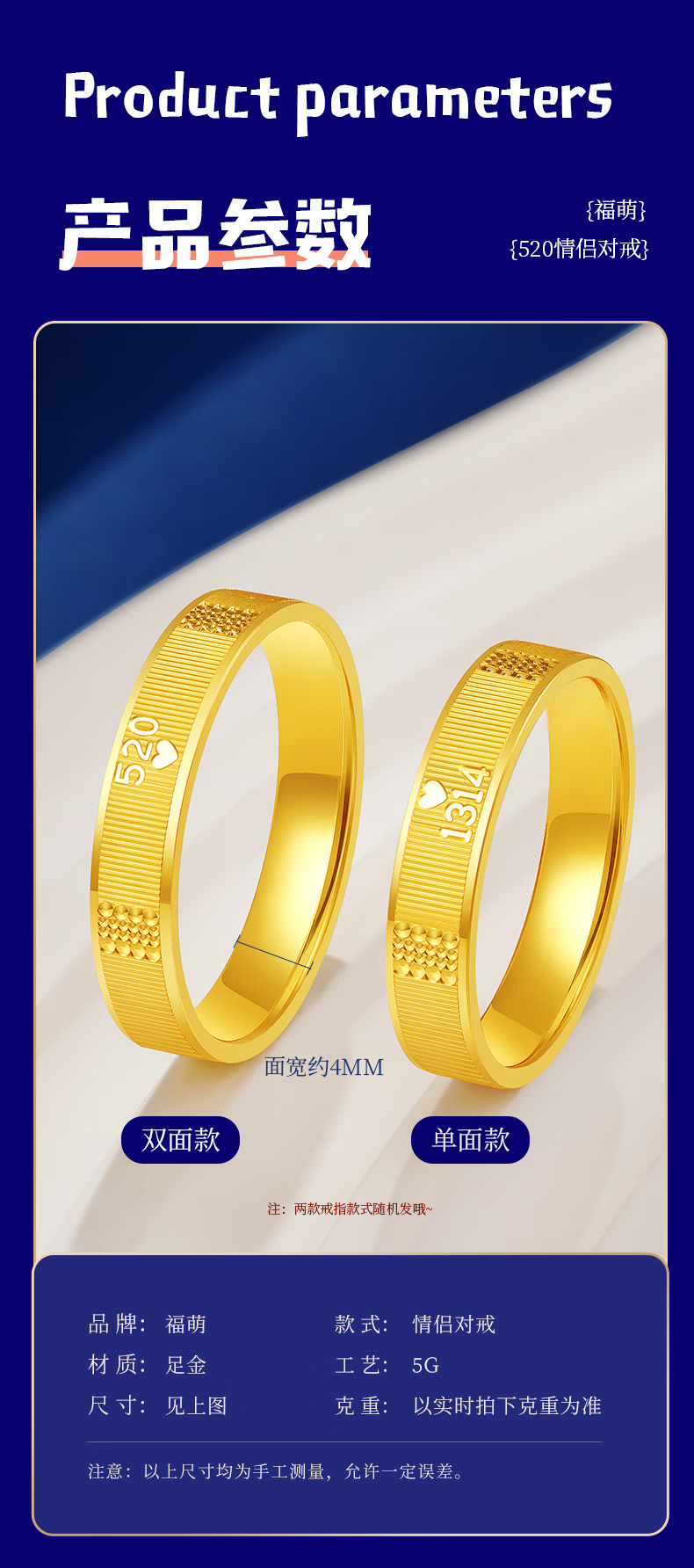 Fumeng gold ring, pure gold for men and women, 520 couple rings, new ring for proposal, wedding, Valentine's Day and Chinese Valentine's Day, gift to girlfriend, No. 18 (approximately 3.99g)